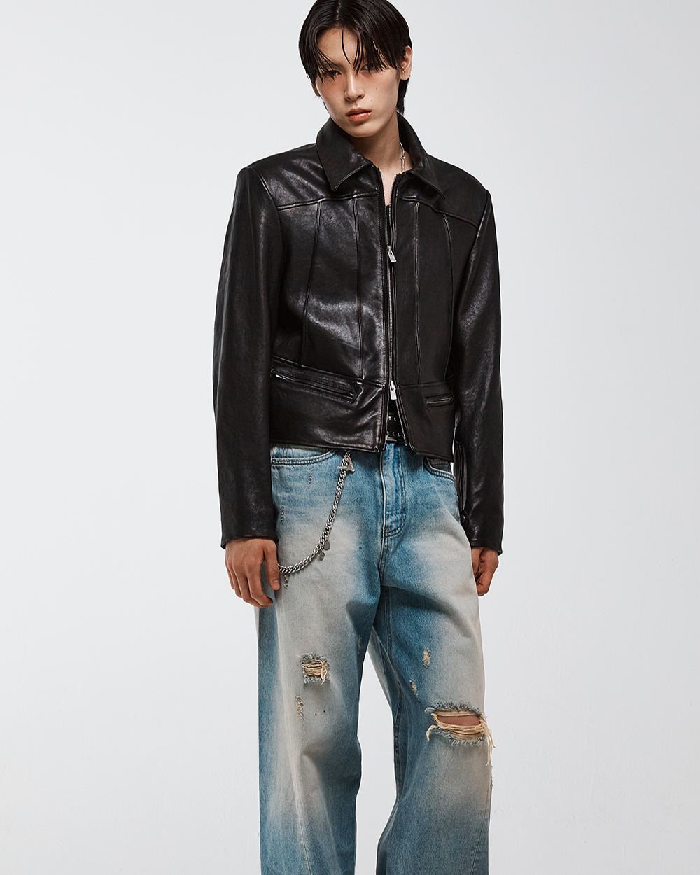이탈리아산 베지터블 램스킨으로 제작된 크롭 레더 재킷입니다.