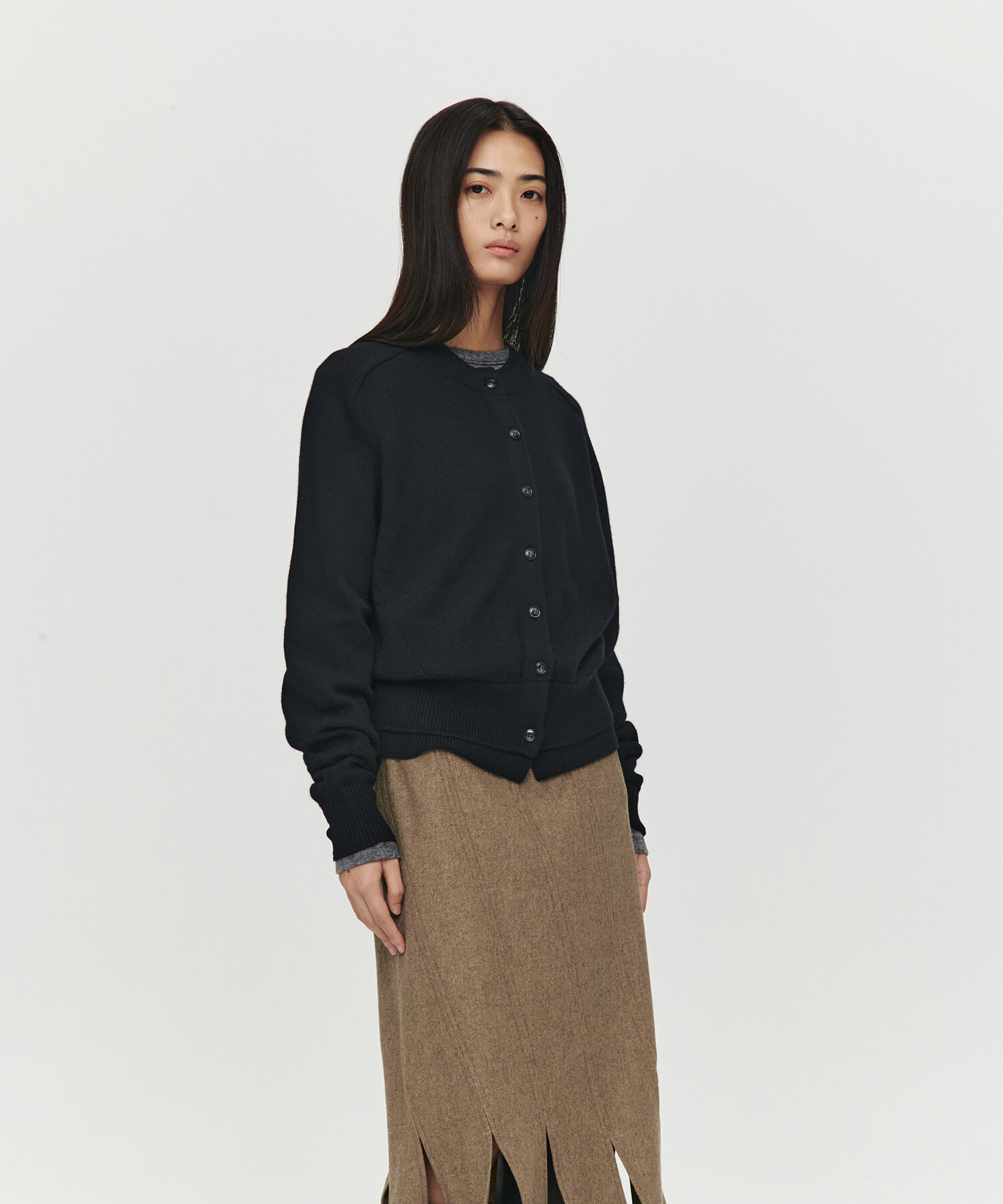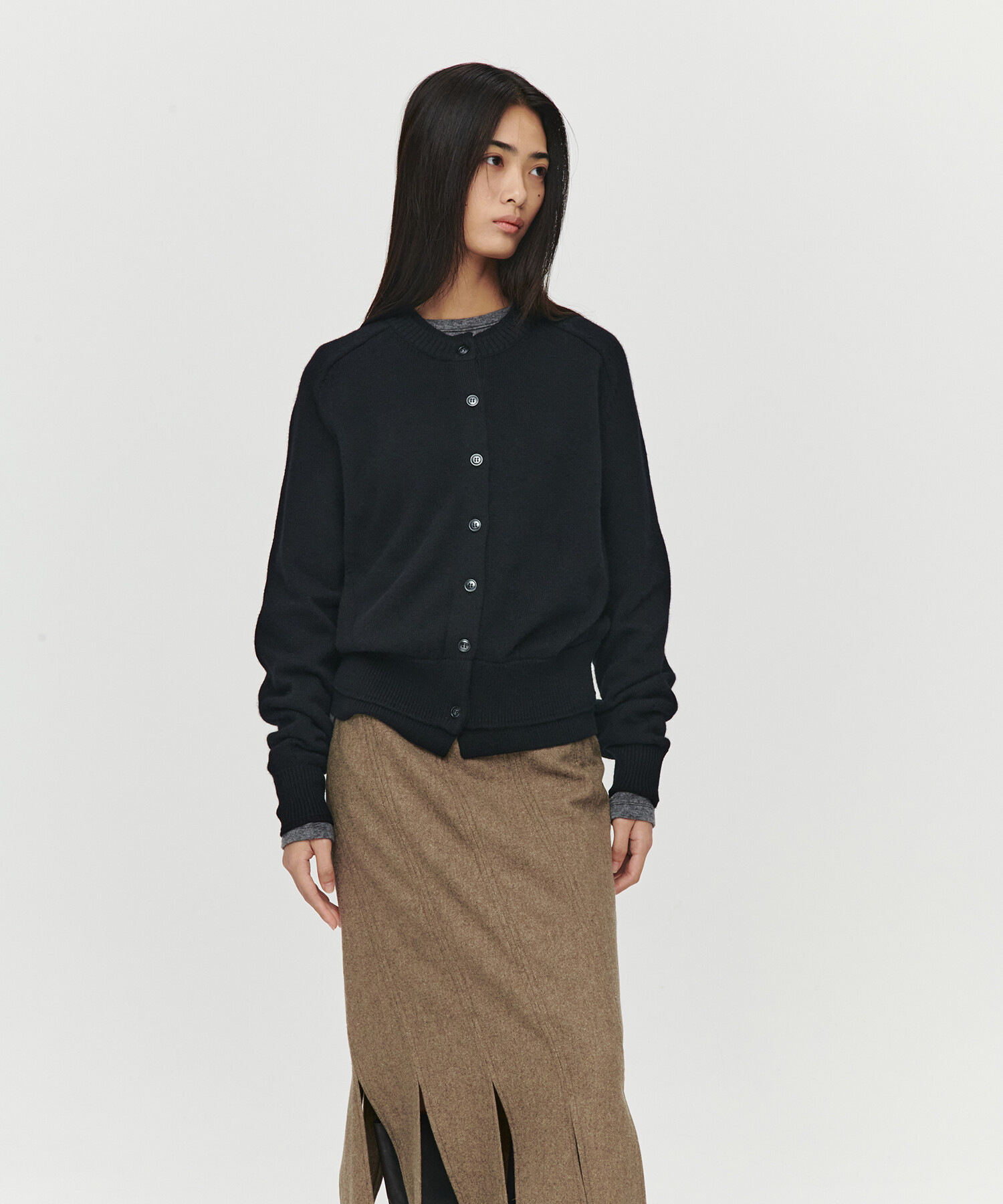 DOUBLE CROP KNIT CARDIGAN (BLACK)