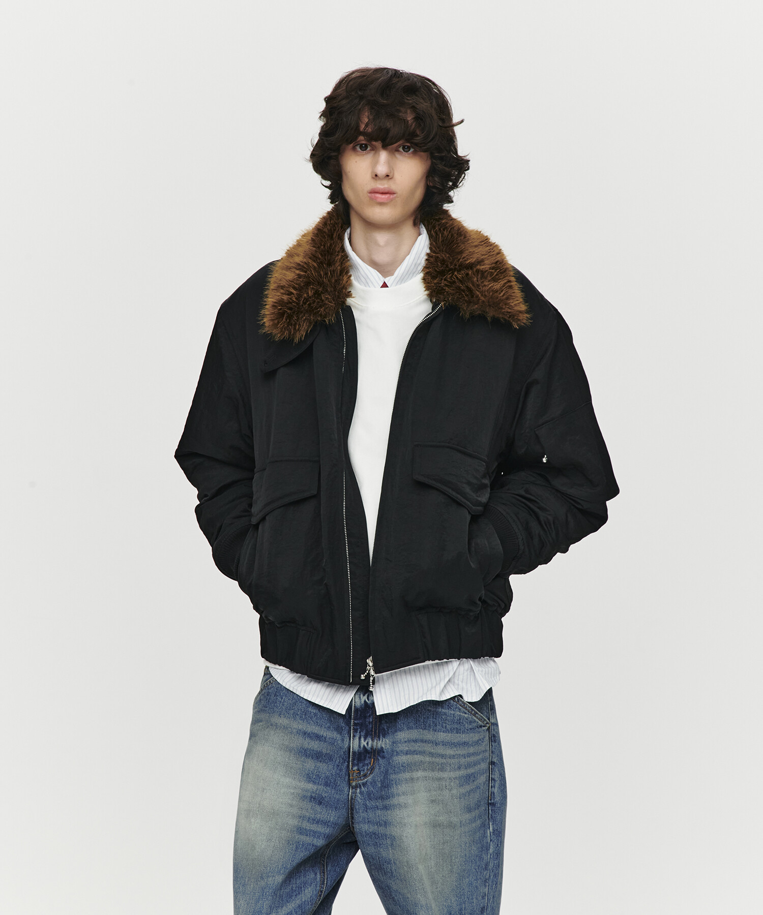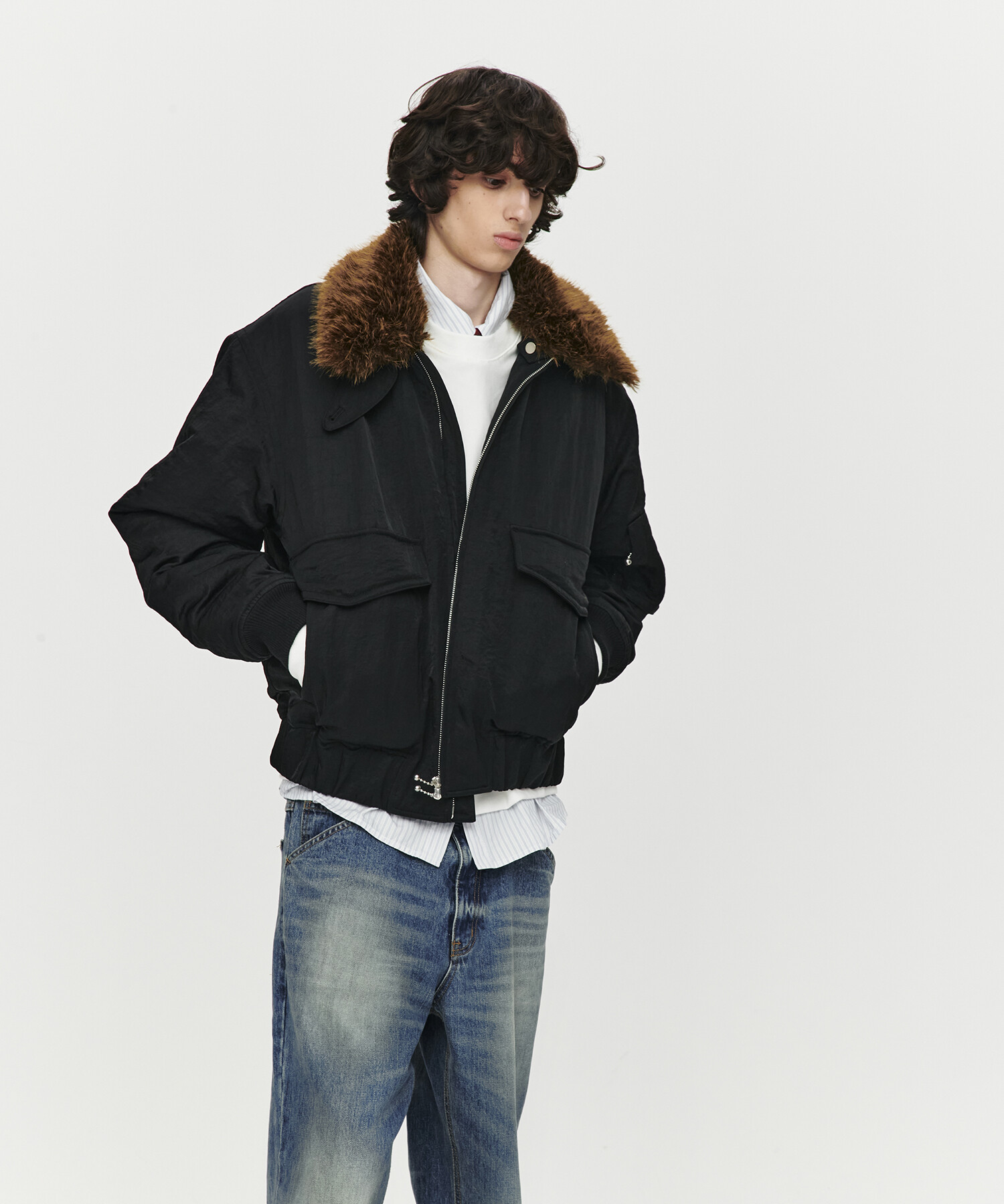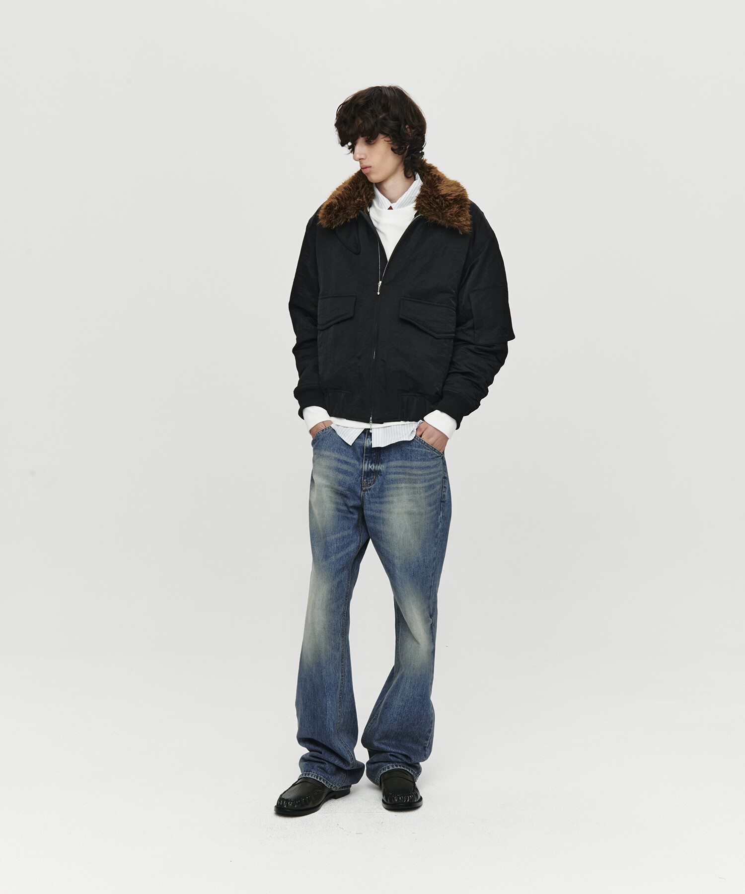 SHEARING COLLAR BOMBER JACKET (BLACK)