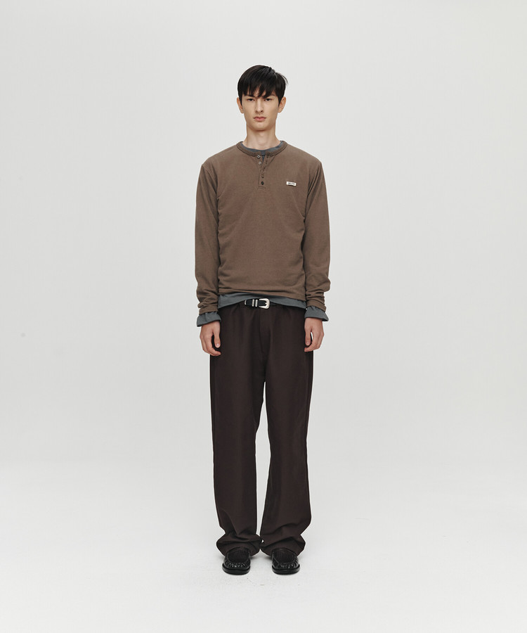 TEXTURED HENLEY NECK T-SHIRT (BROWN)