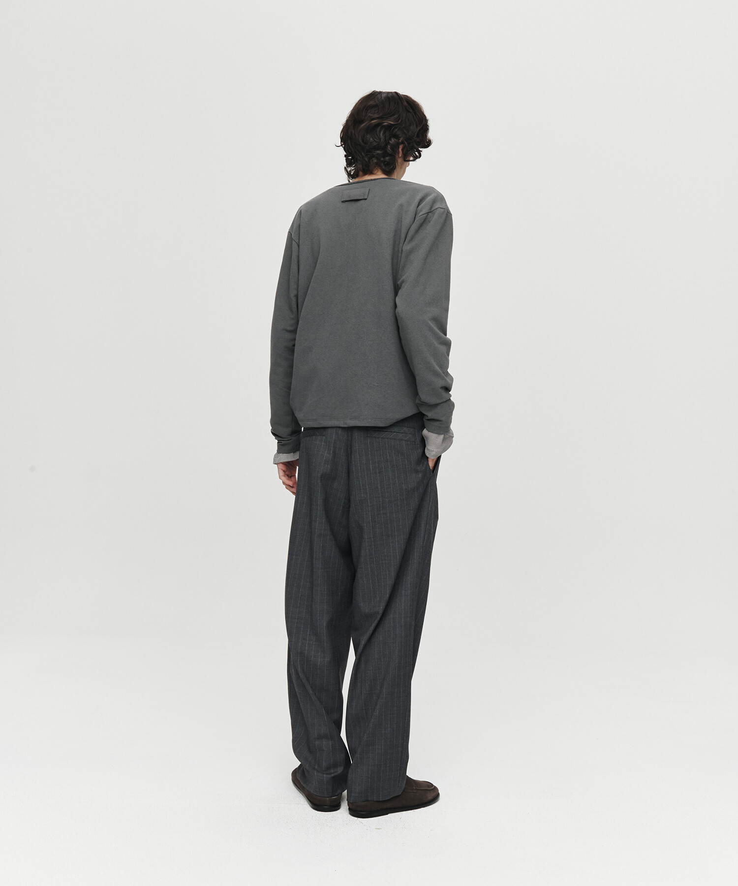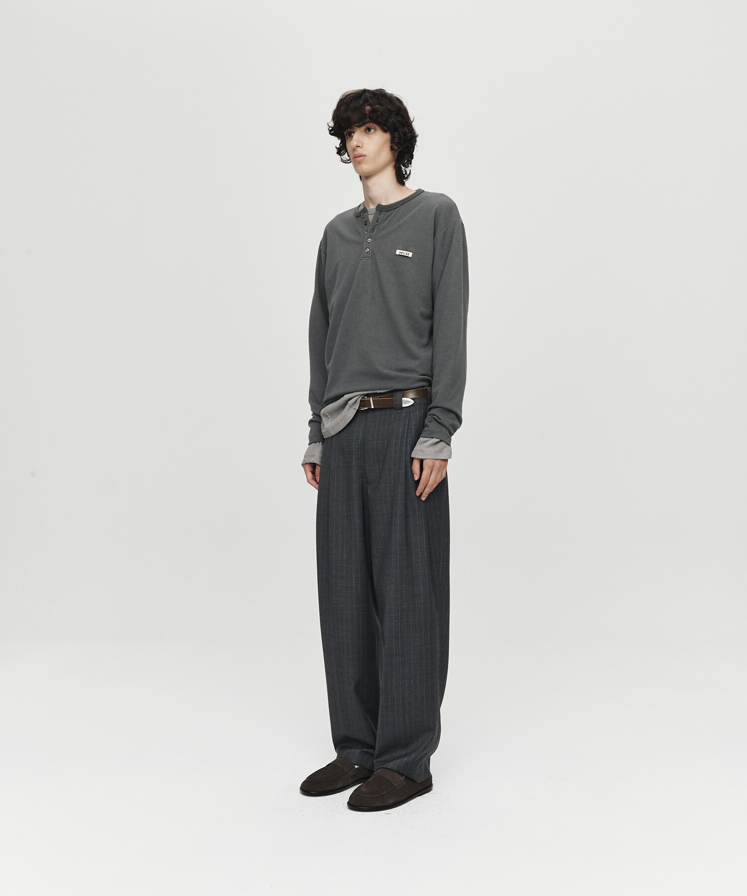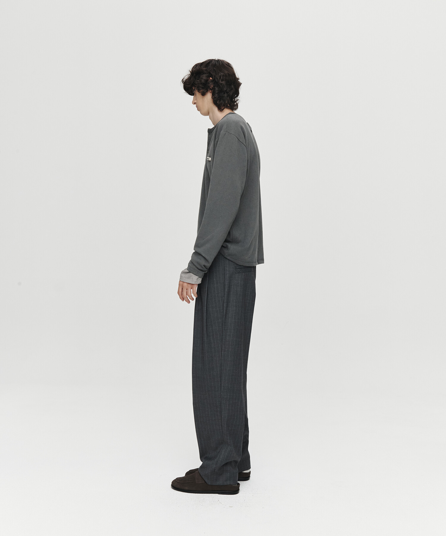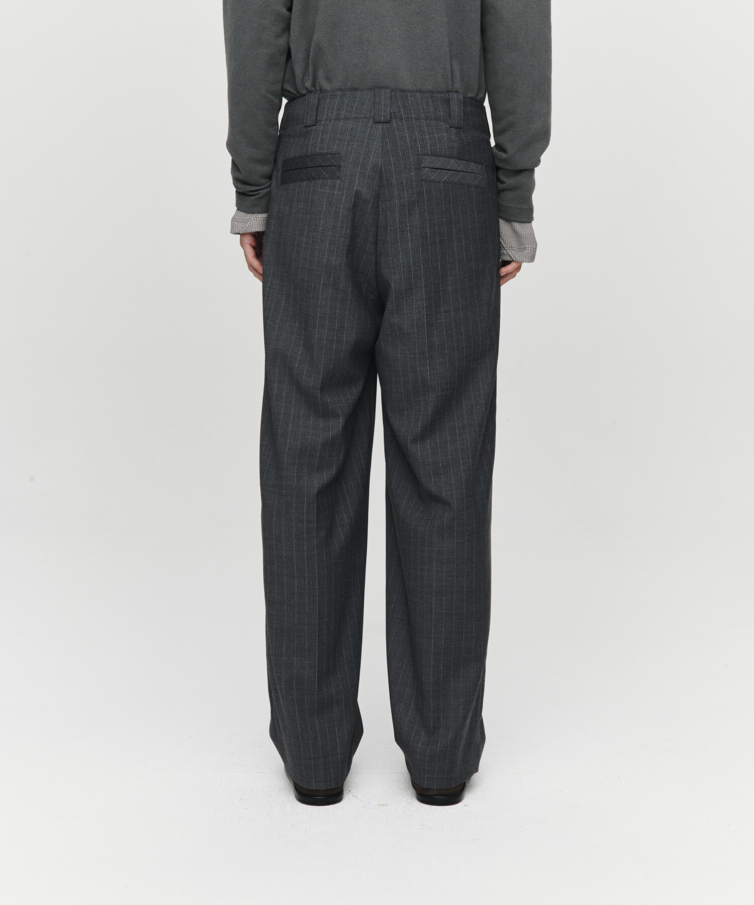 WOOL DOUBLE PLEATED STRIPE PANTS (CHARCOAL)