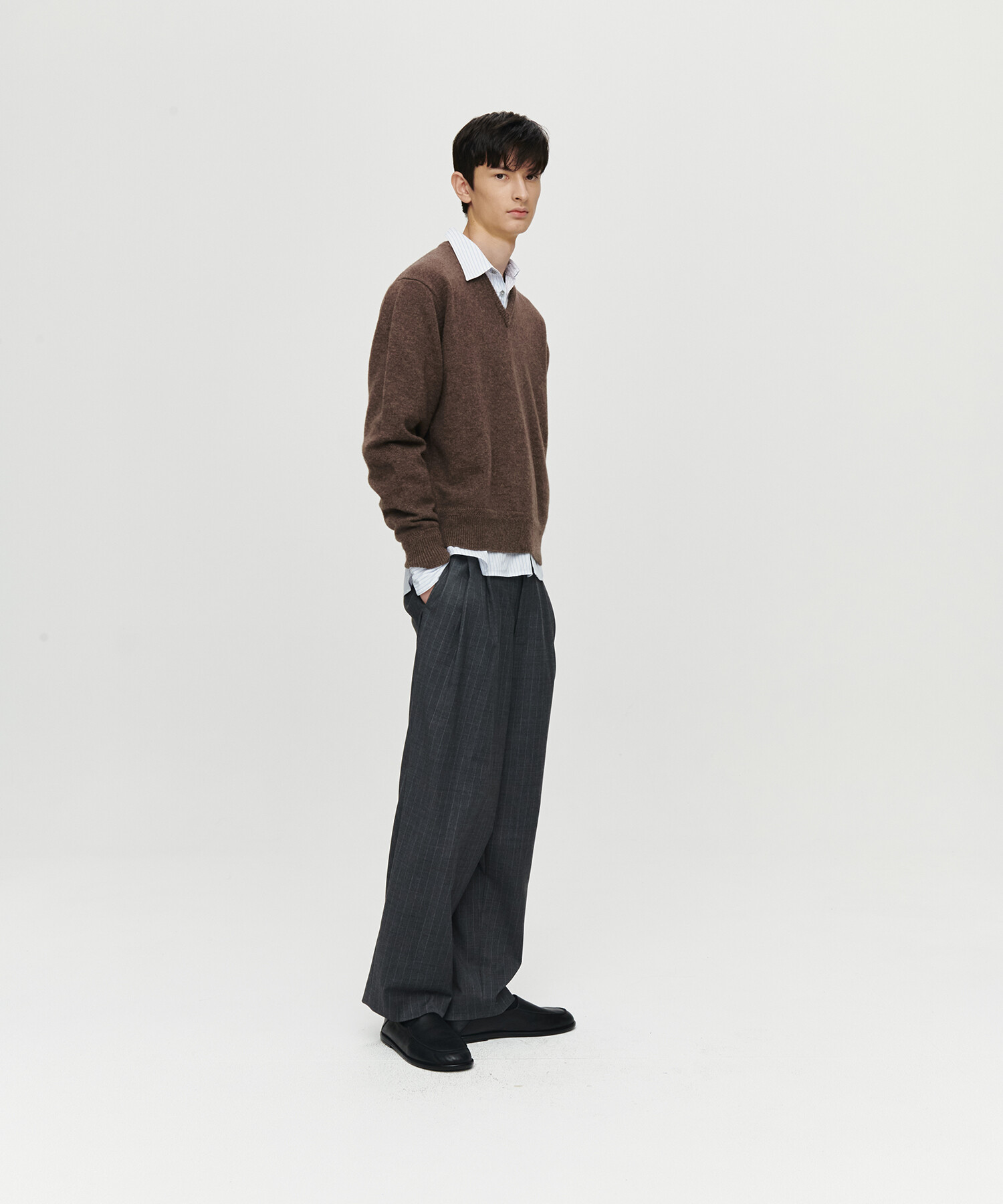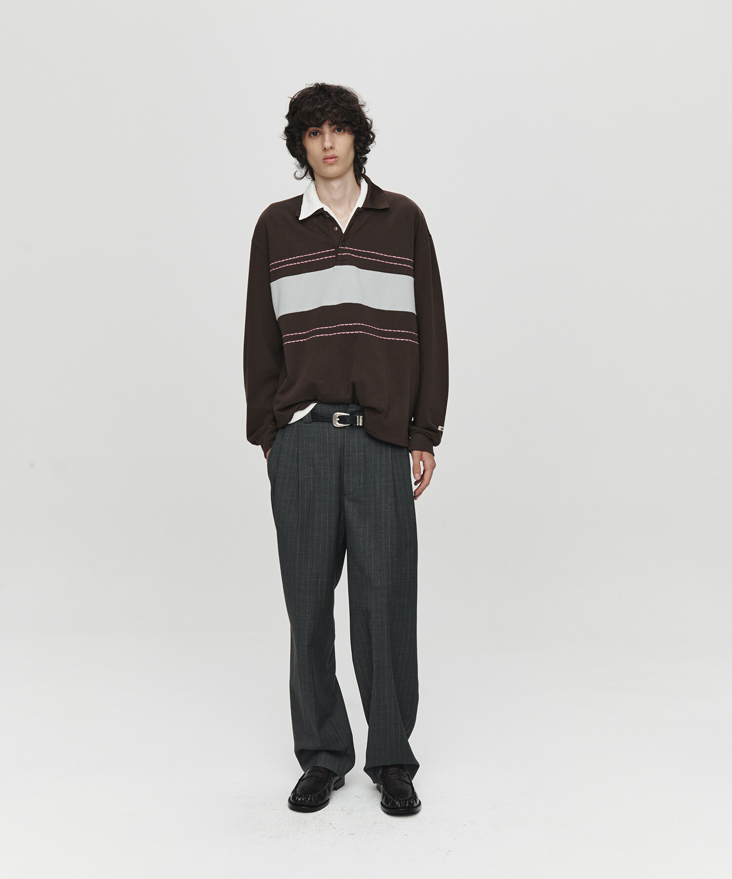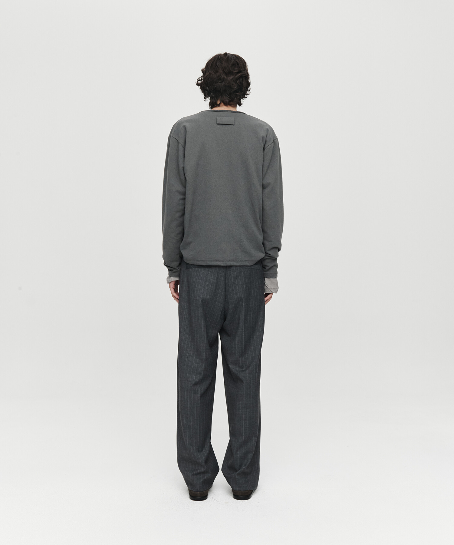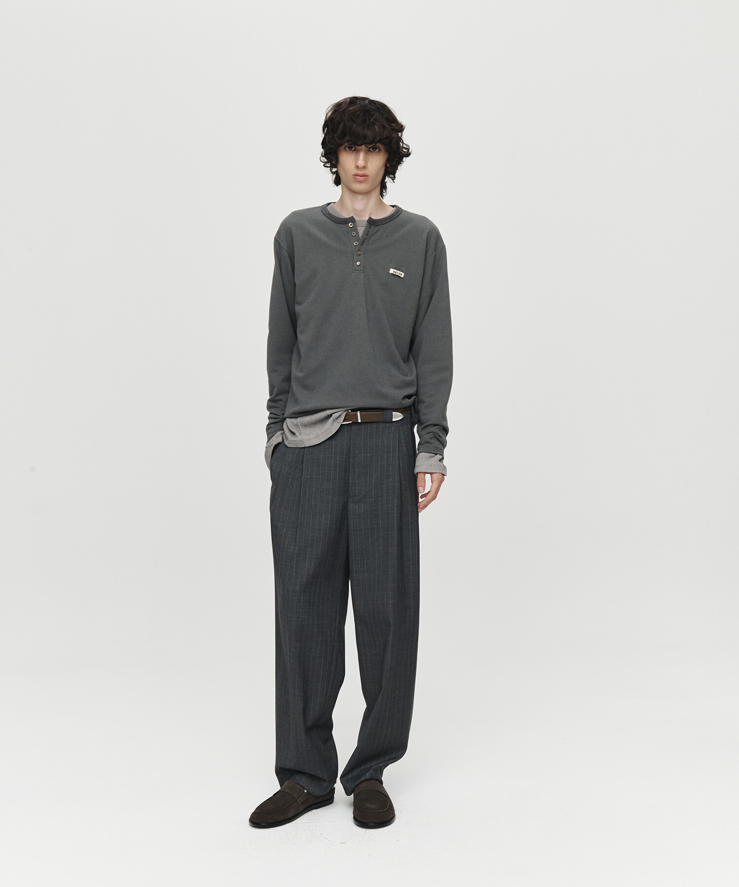 WOOL DOUBLE PLEATED STRIPE PANTS (CHARCOAL)