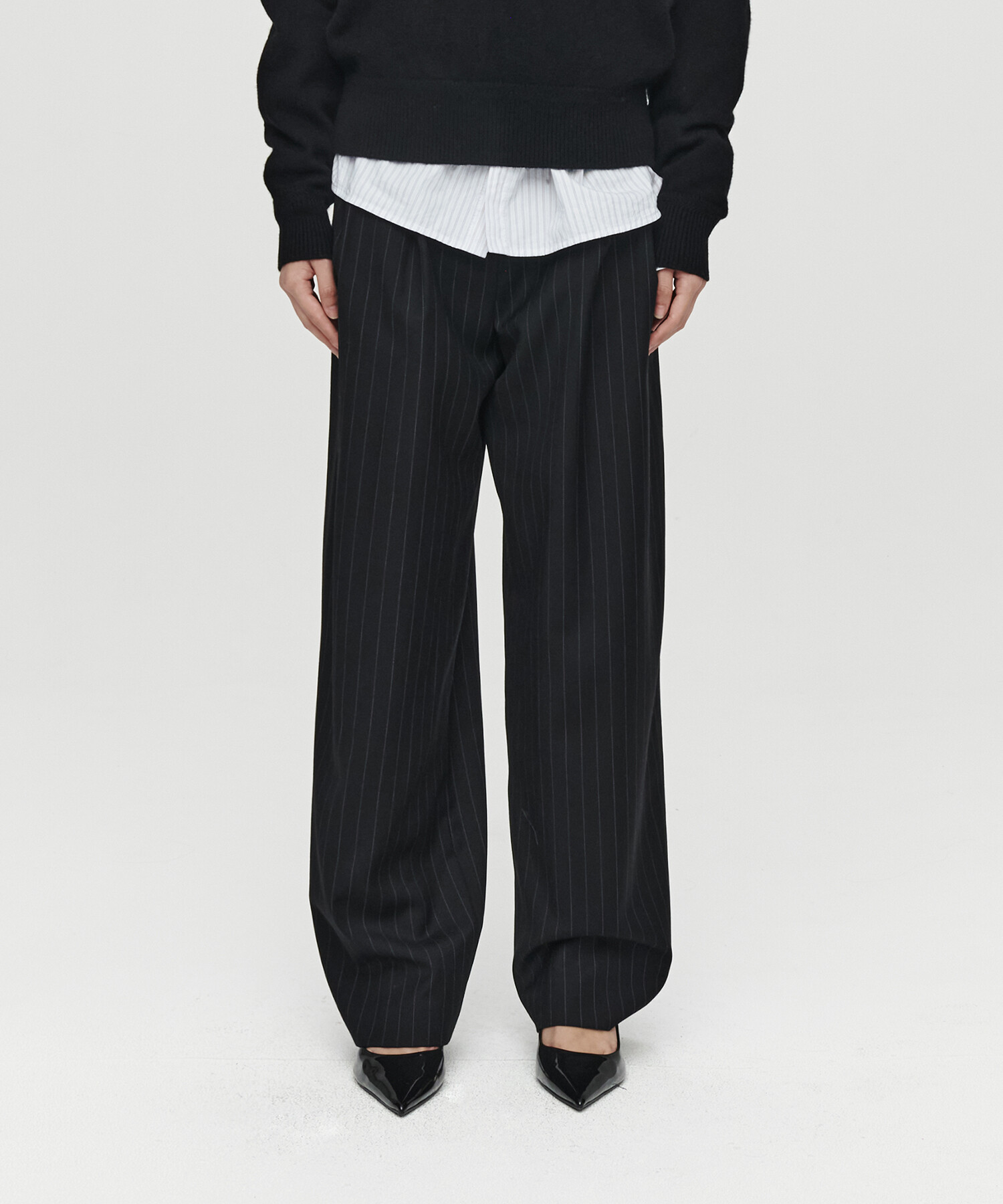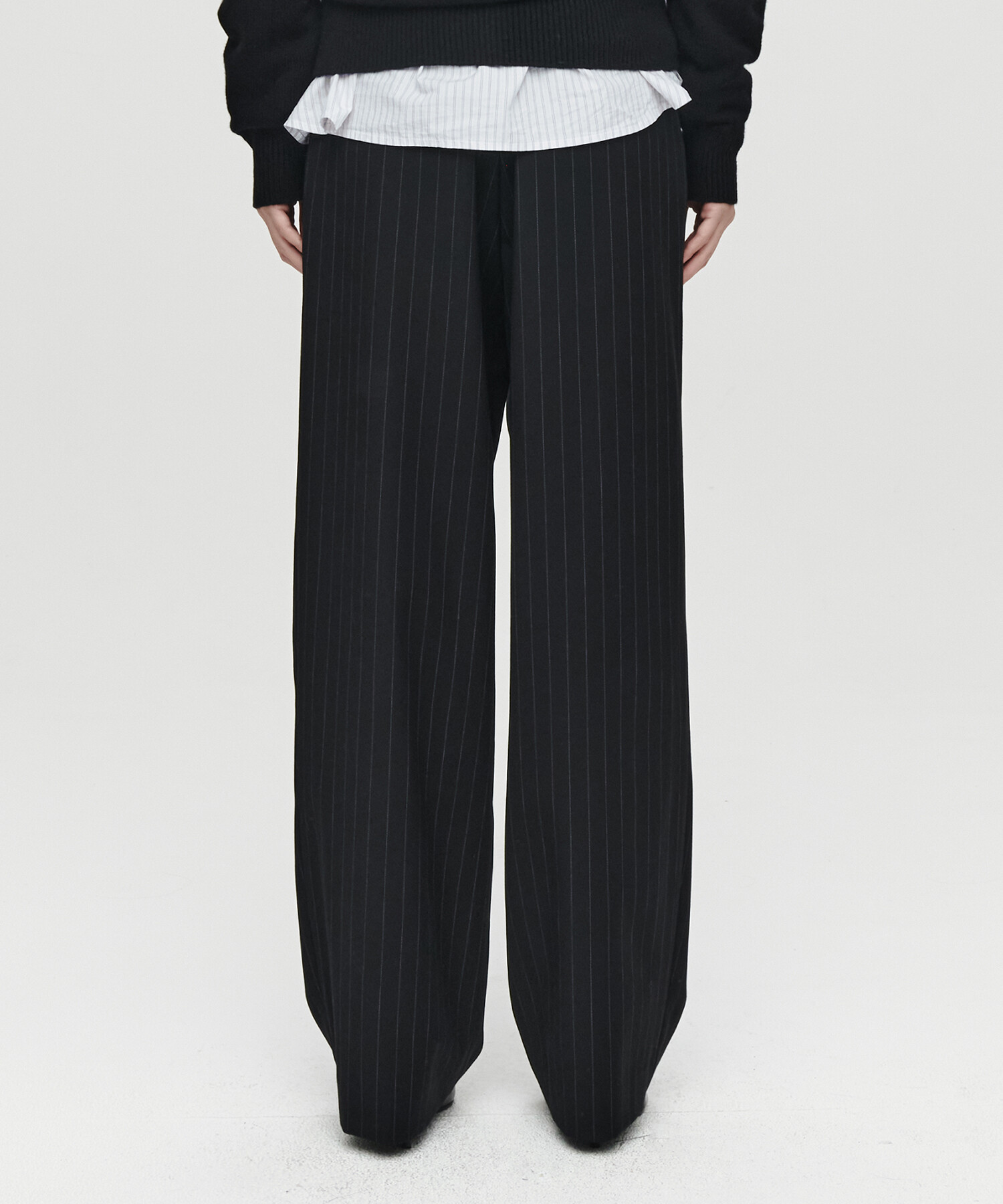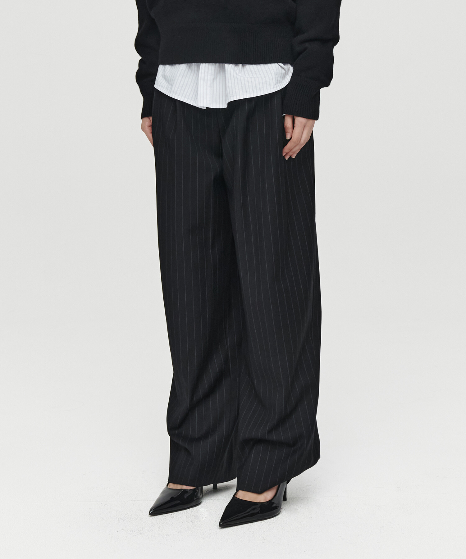 - 고급 울 스트라이프 소재의 와이드 팬츠