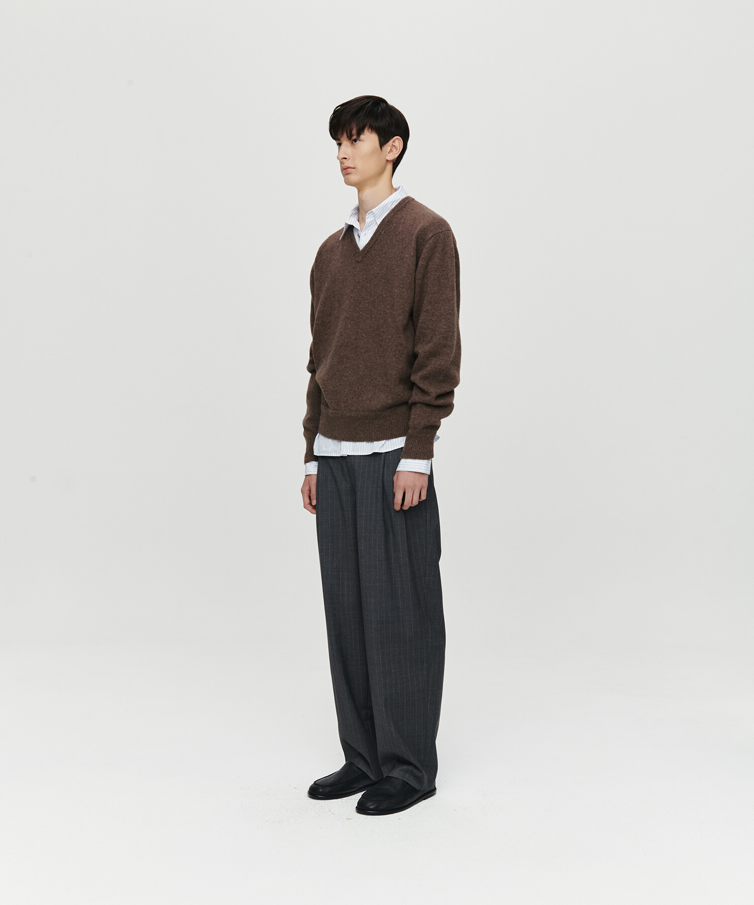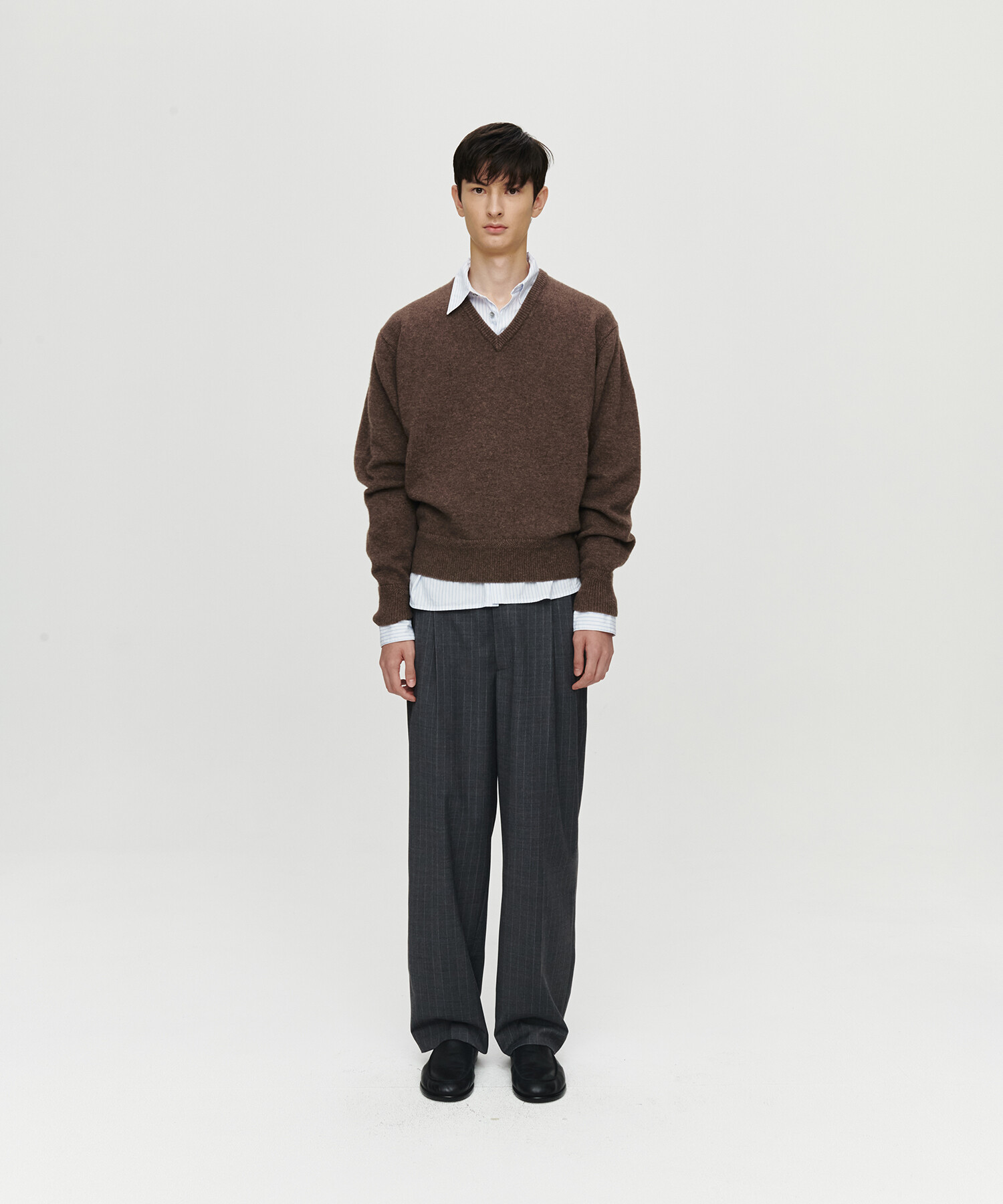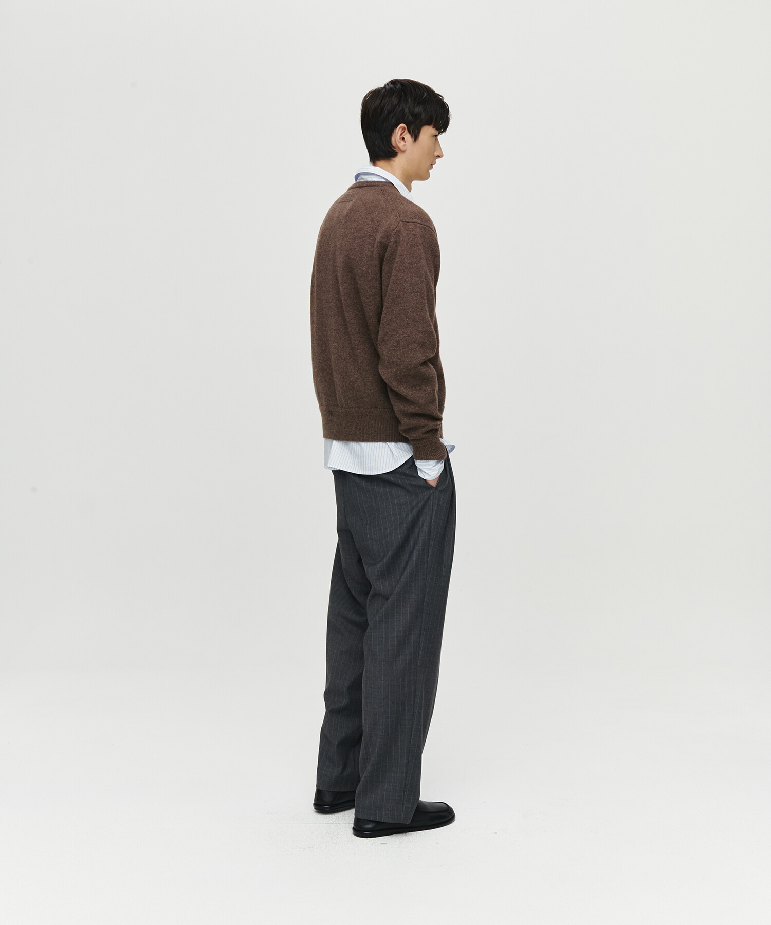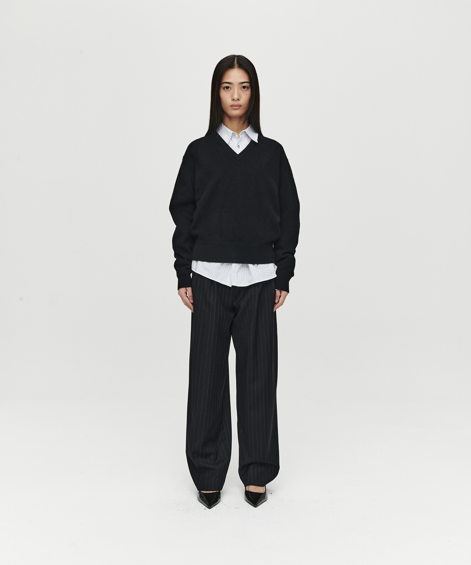 - 고급 울 스트라이프 소재의 와이드 팬츠