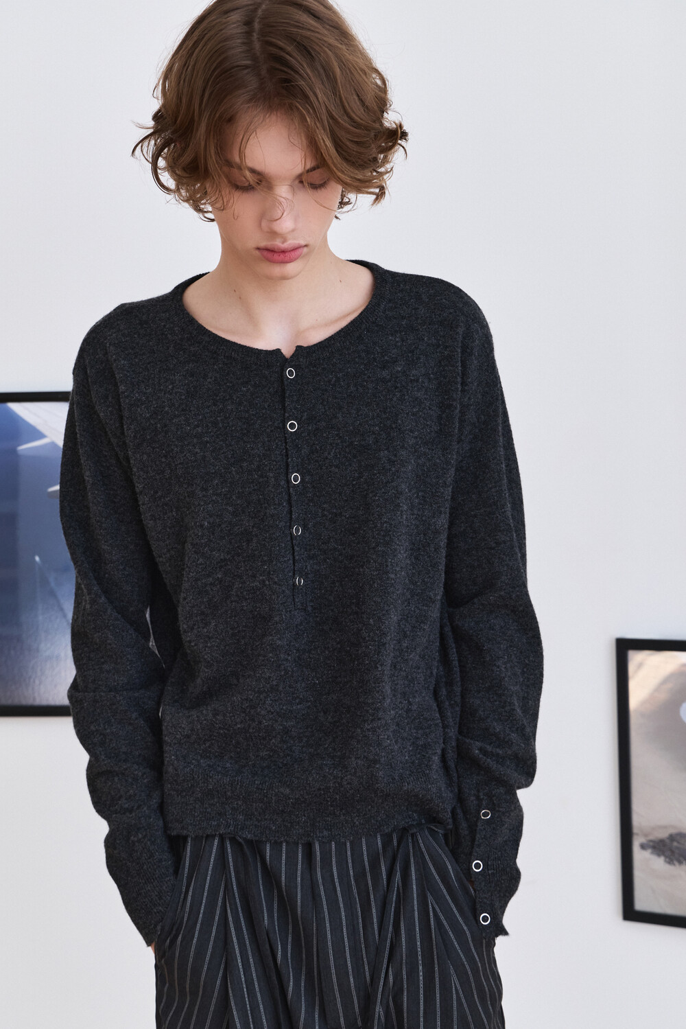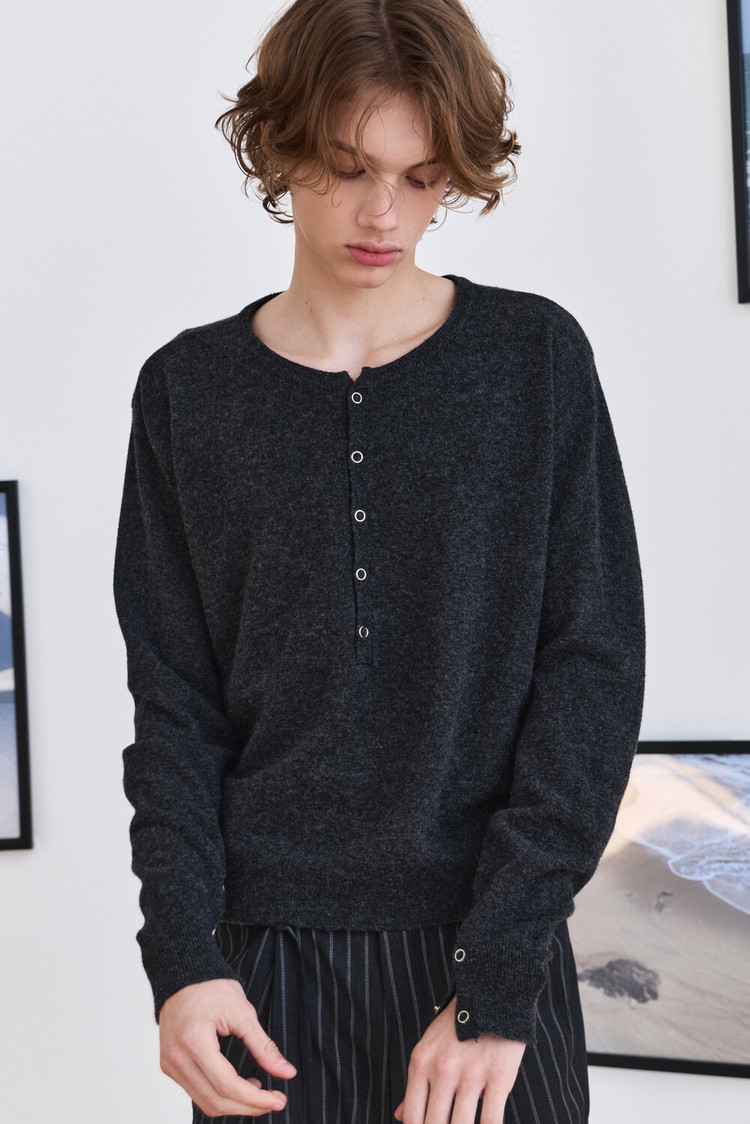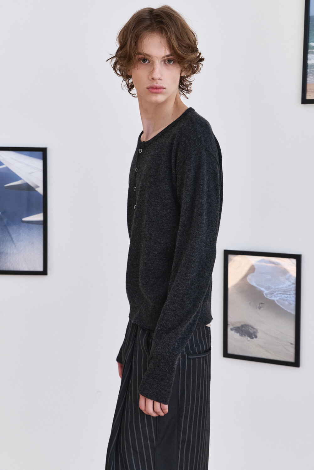 - 울 나일론 혼용 패브릭으로 제작된 헨리넥 디자인
