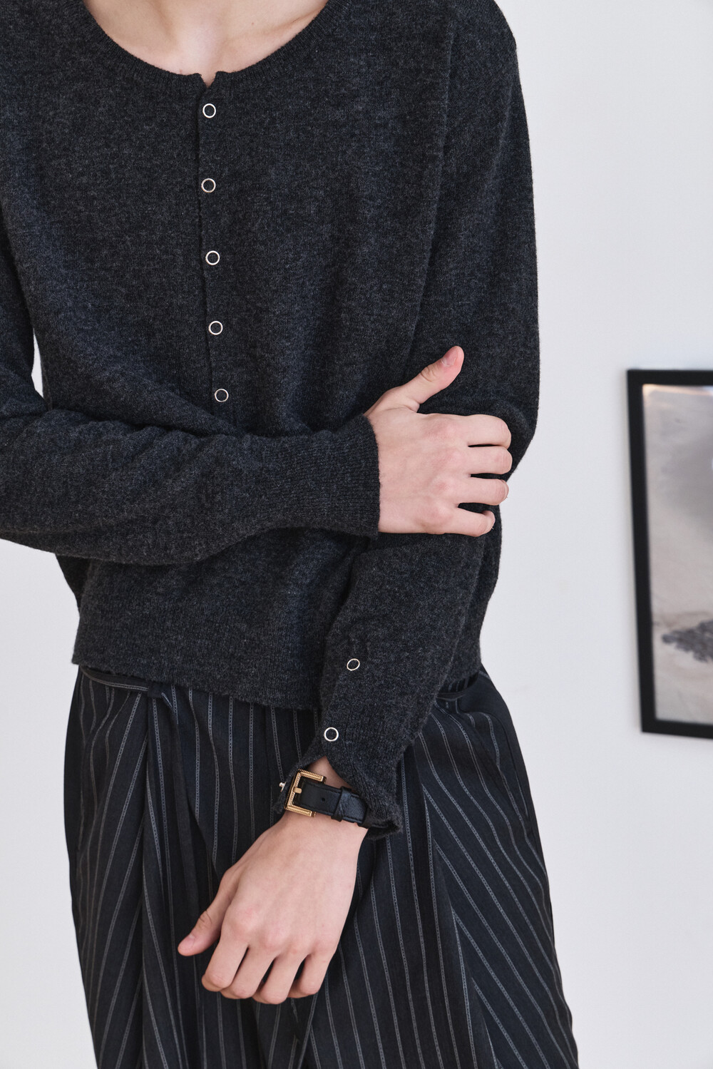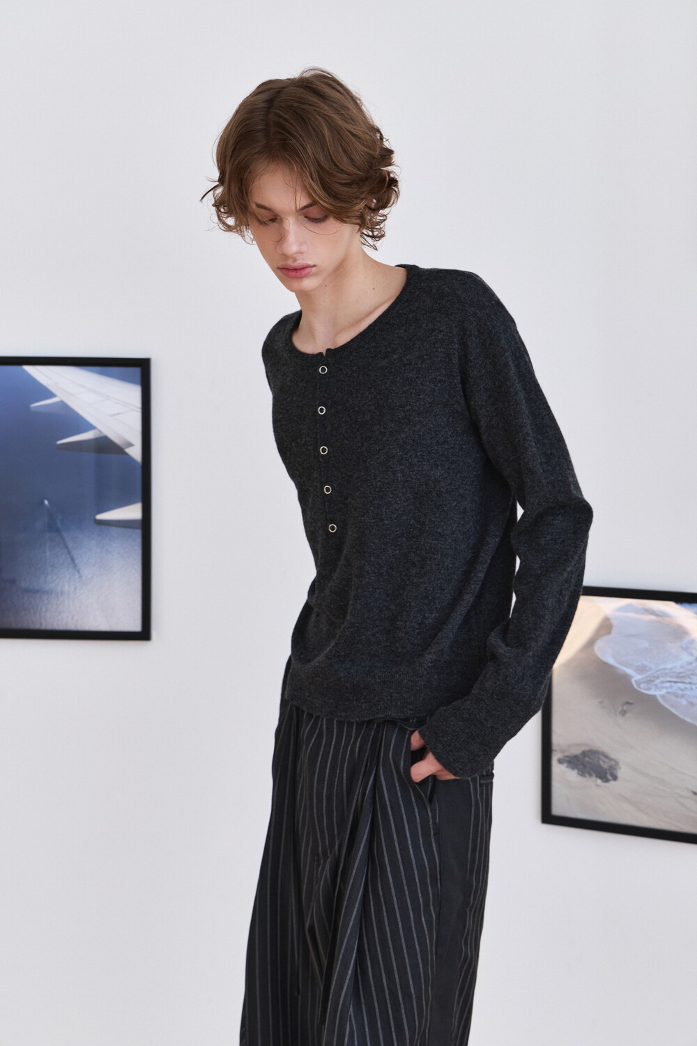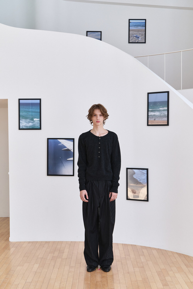 - 울 나일론 혼용 패브릭으로 제작된 헨리넥 디자인