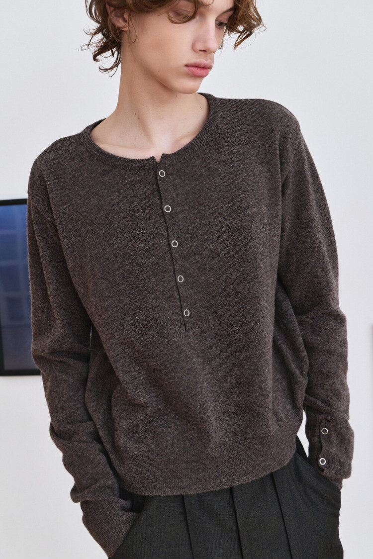 - 울 나일론 혼용 패브릭으로 제작된 헨리넥 디자인
