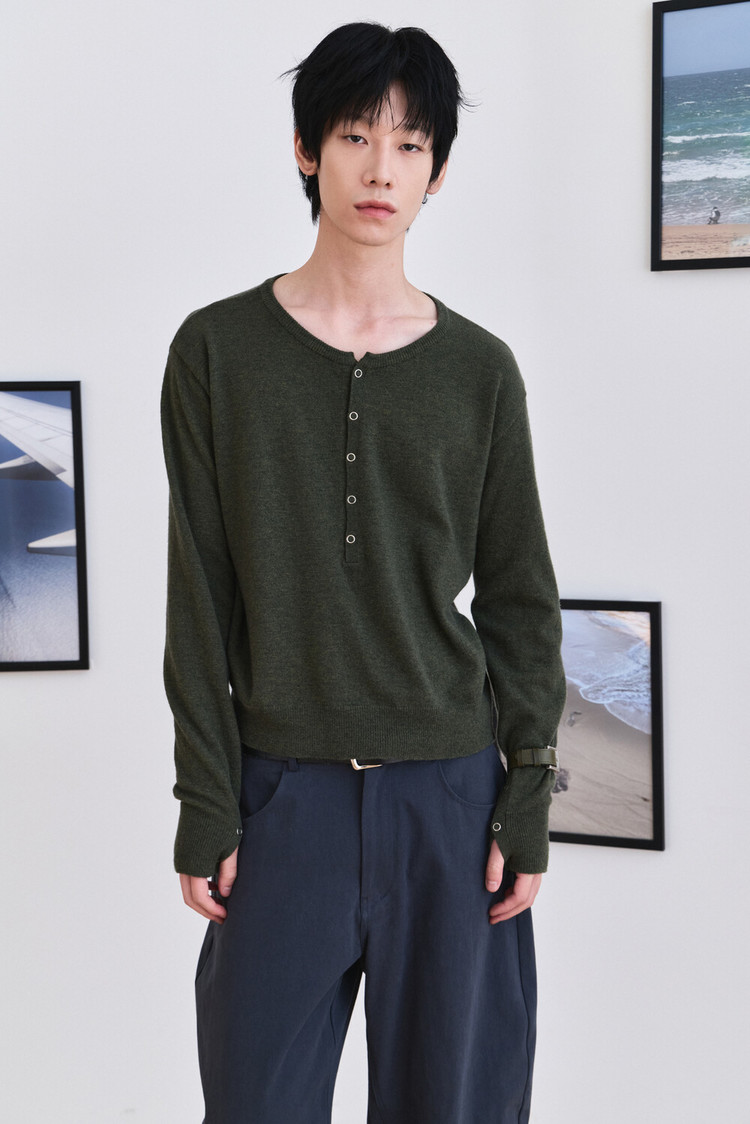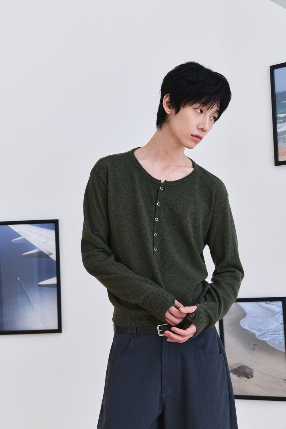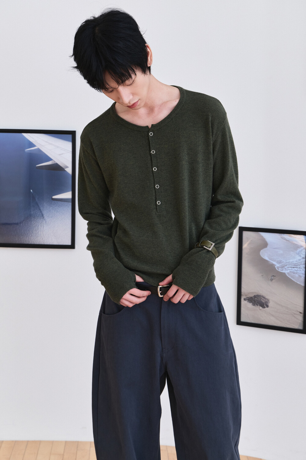 - 울 나일론 혼용 패브릭으로 제작된 헨리넥 디자인