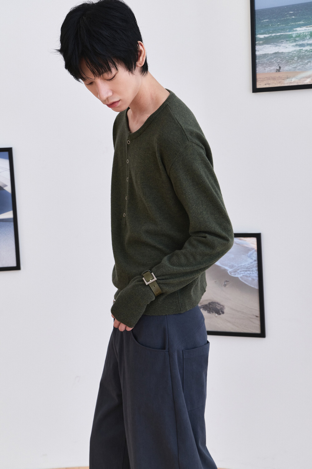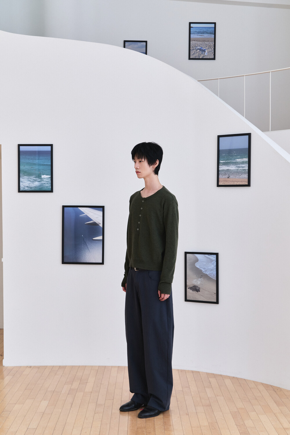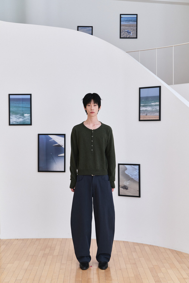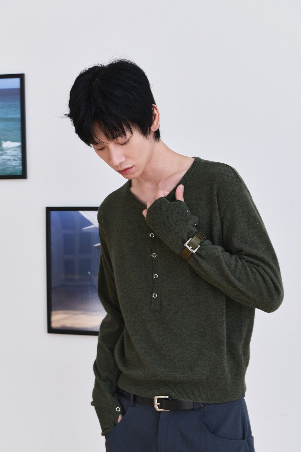 - 울 나일론 혼용 패브릭으로 제작된 헨리넥 디자인