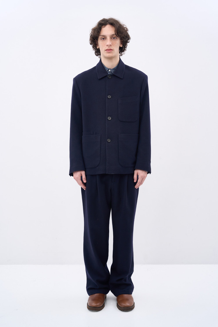워크웨어 스타일에서 영감을 받아 완성된 유니폼 트라우저. 부드럽고 포근한 터치감이 특징인 플라넬 버진 울 소재.