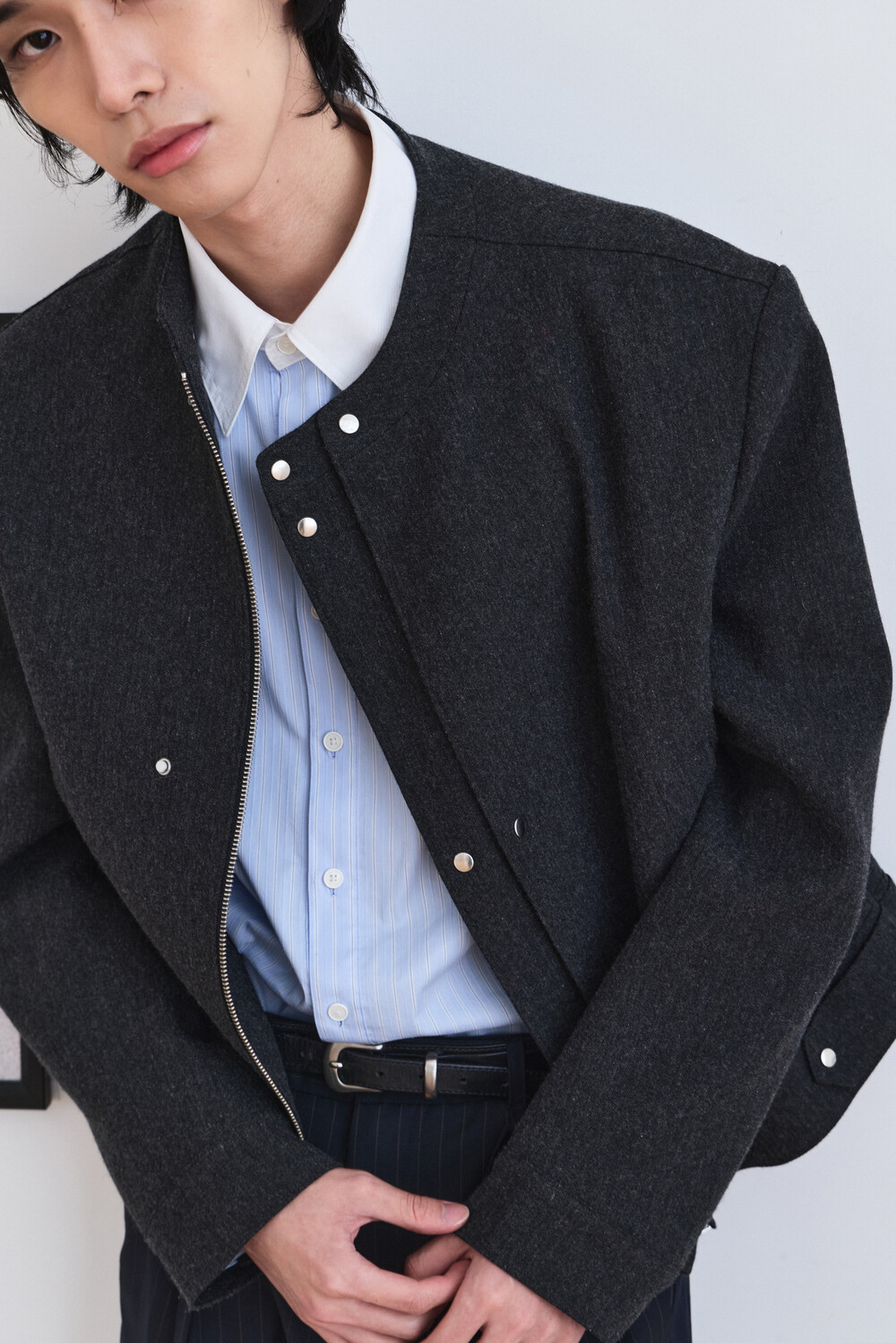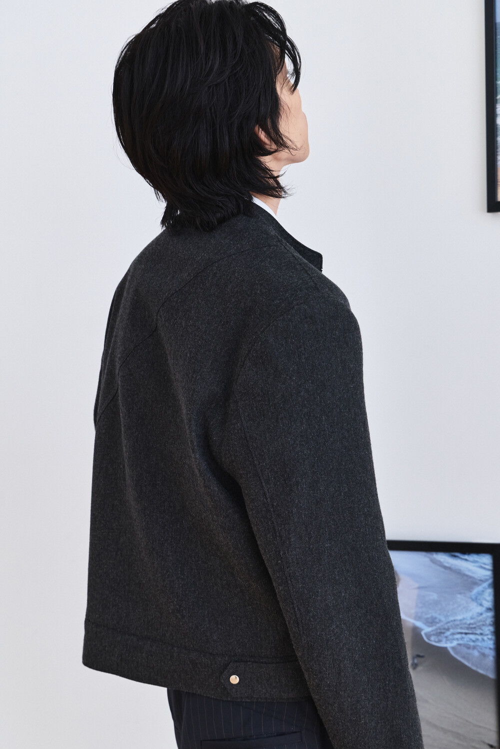 [WAVINESS] Ebb Layered Wool Racer Jacket - Charcoal