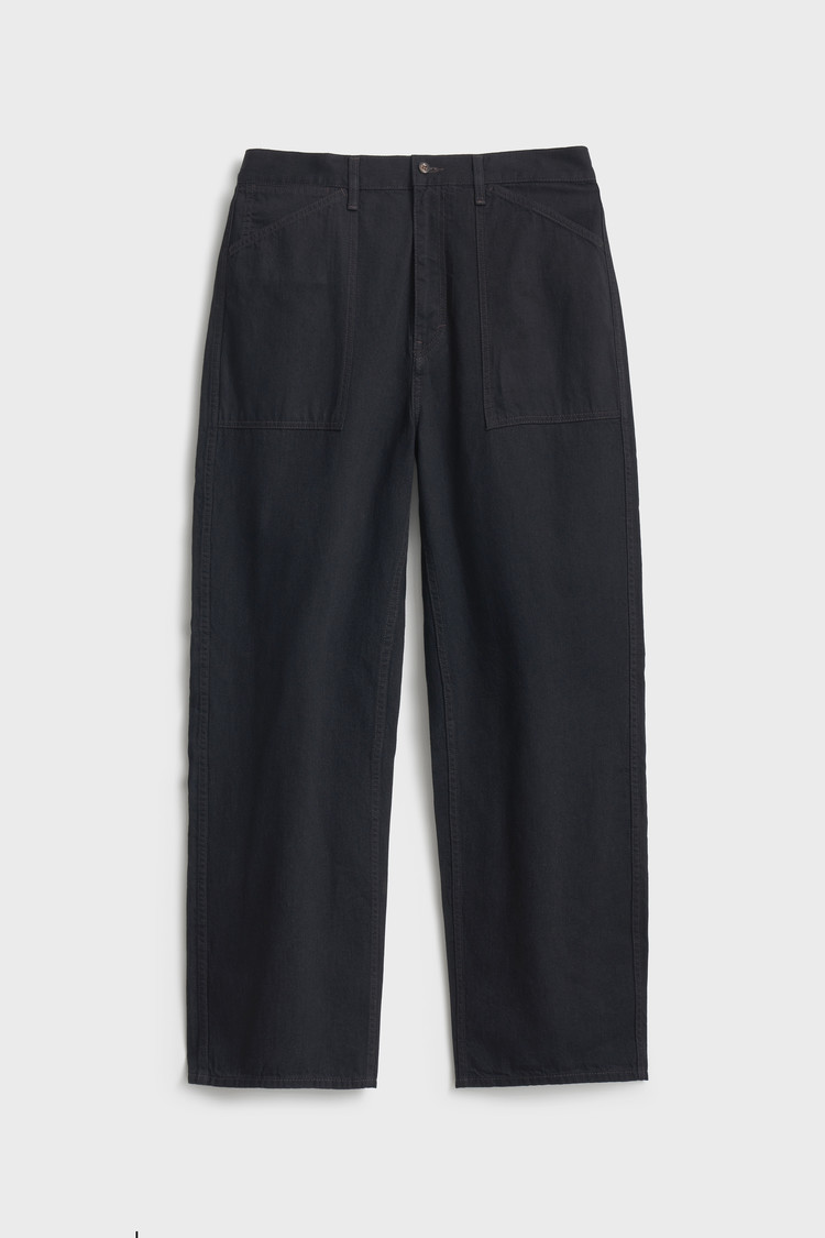 워크웨어에서 유래된 베이커 팬츠 디자인을 기반으로 한 세미 와이드 핏 데님 팬츠입니다.