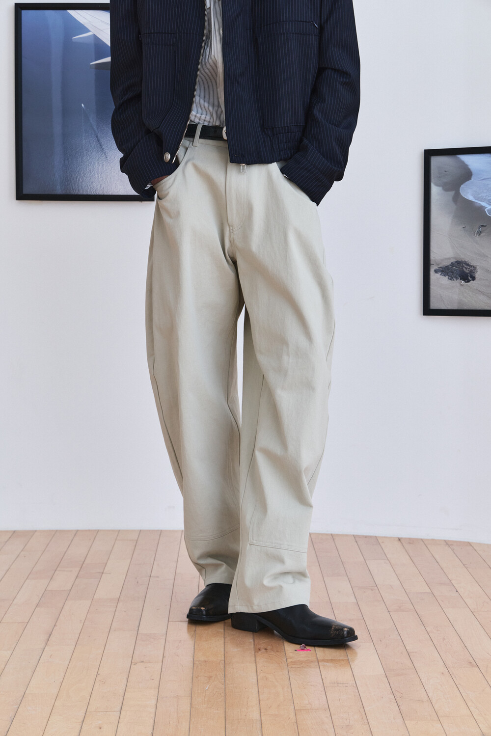 - 커브드한 실루엣이 매력적인 코튼 패브릭의 커브드 팬츠 디테일
