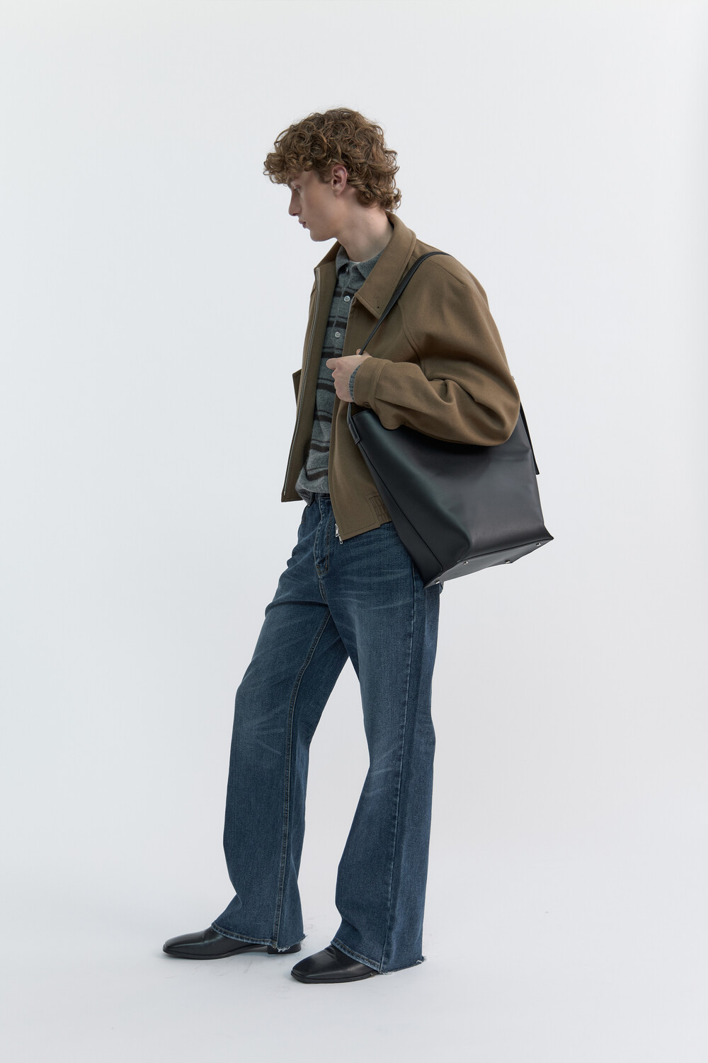 -어깨 실루엣과 크롭한 기장감이 돋보이는 울 블루종