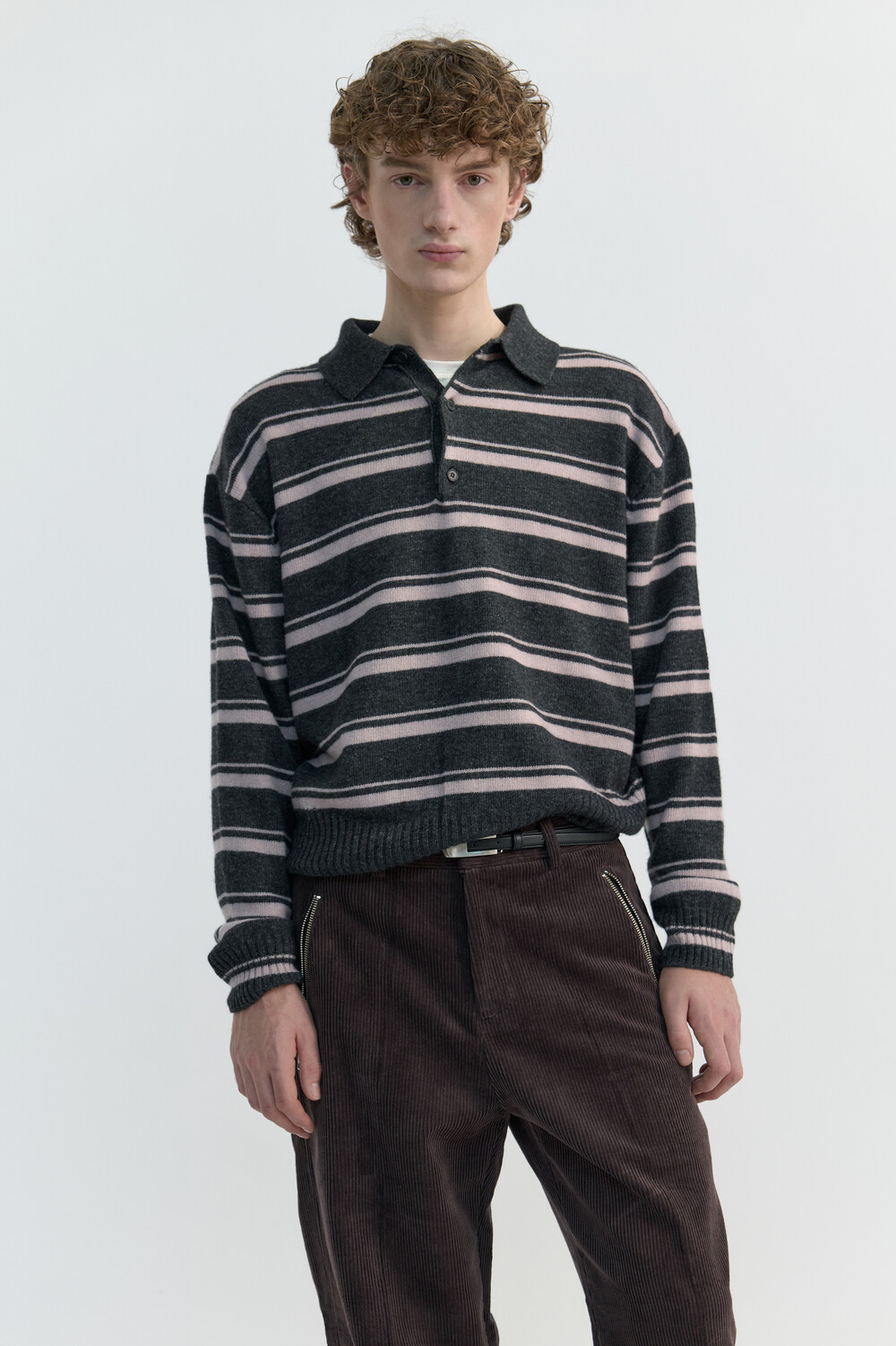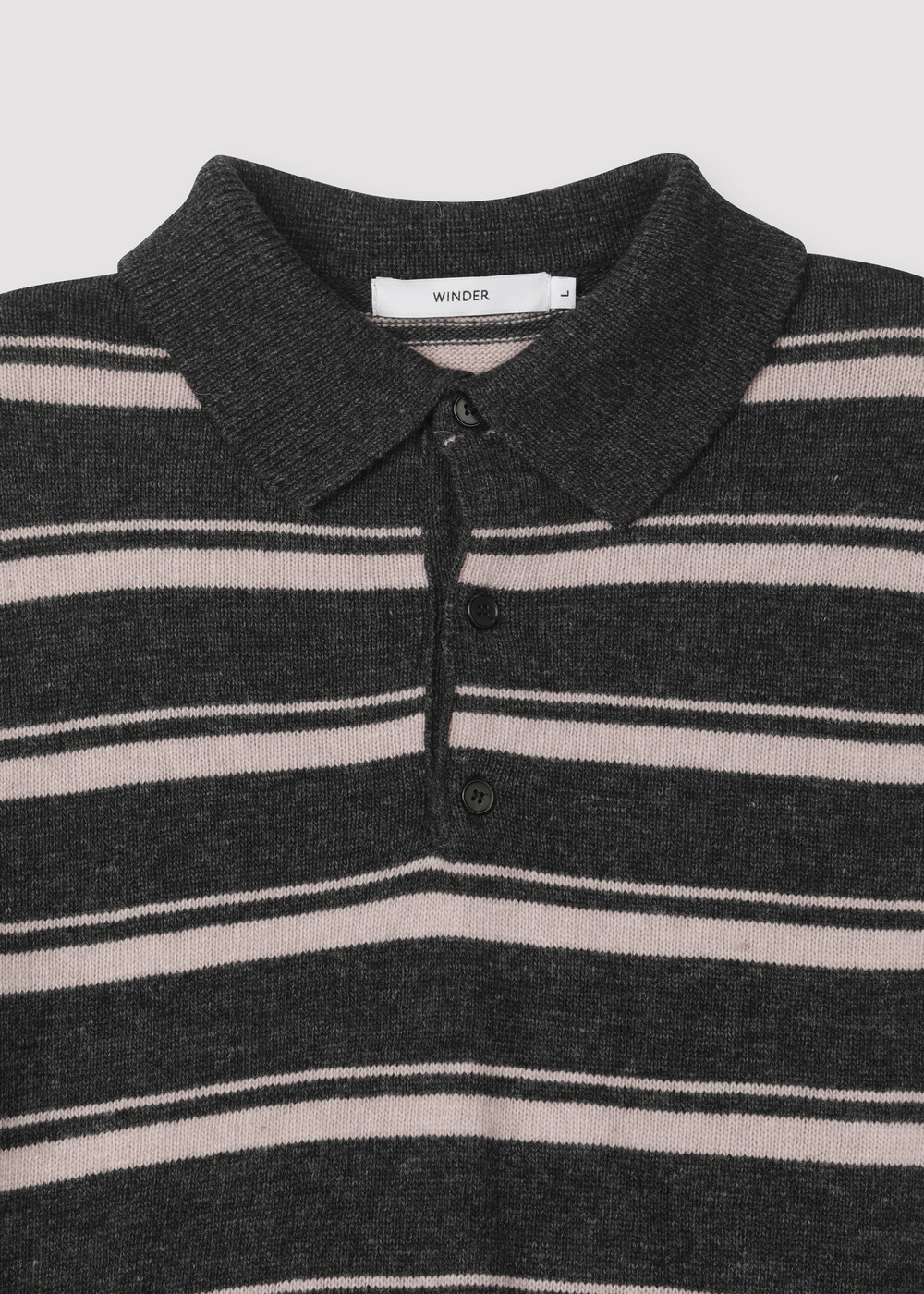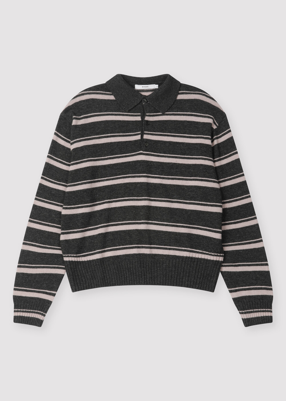 CASHMERE BLEND STRIPE POLO SWEATER - CHAROCAL PINK