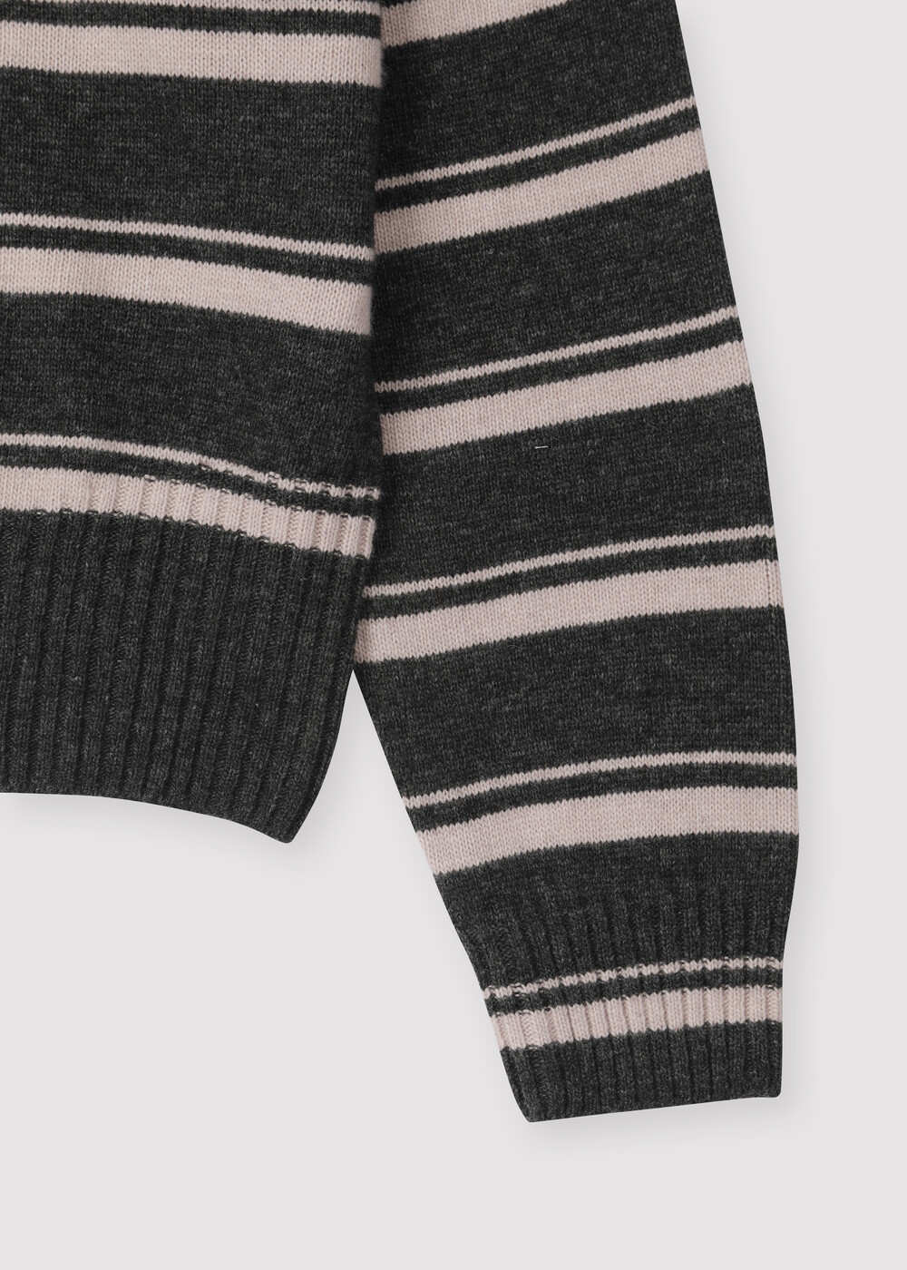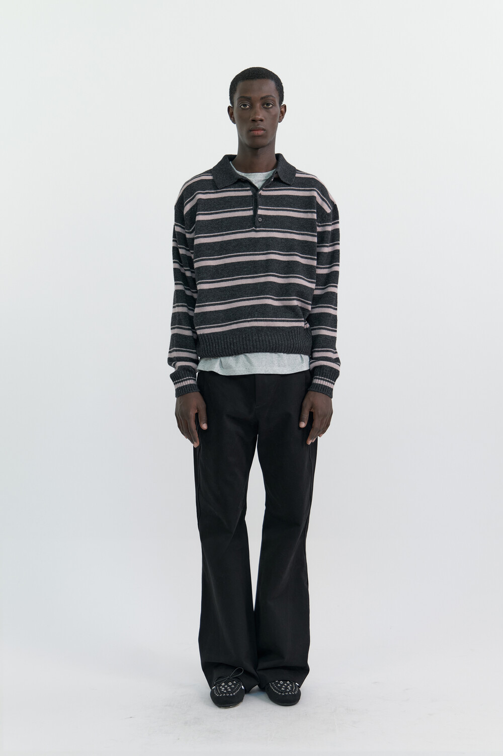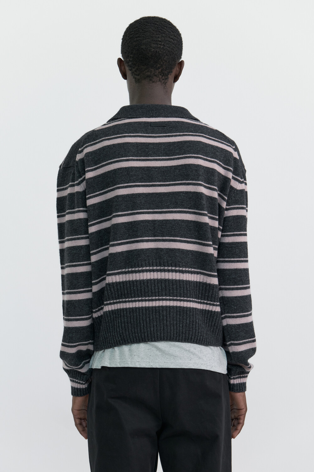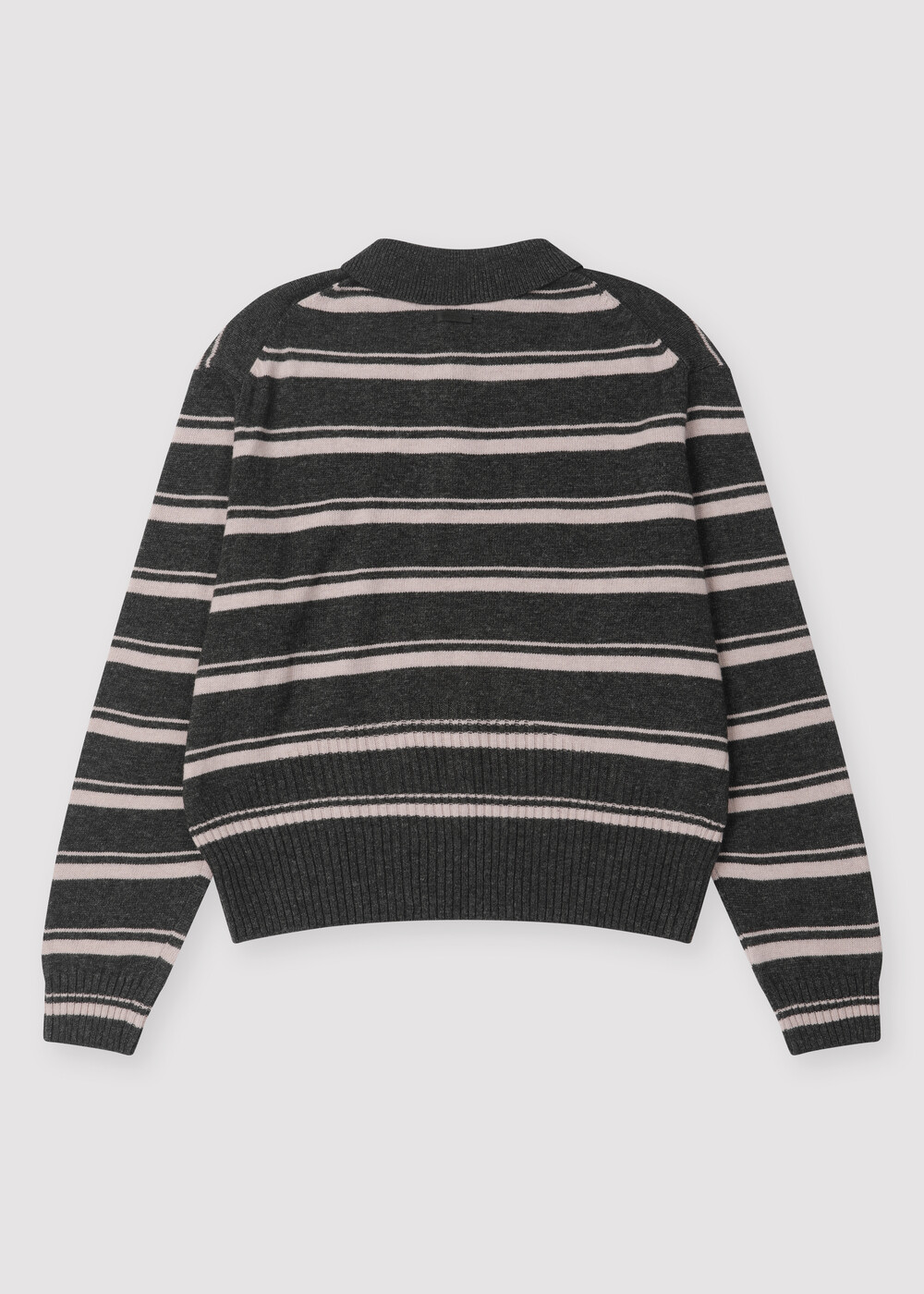 CASHMERE BLEND STRIPE POLO SWEATER - CHAROCAL PINK