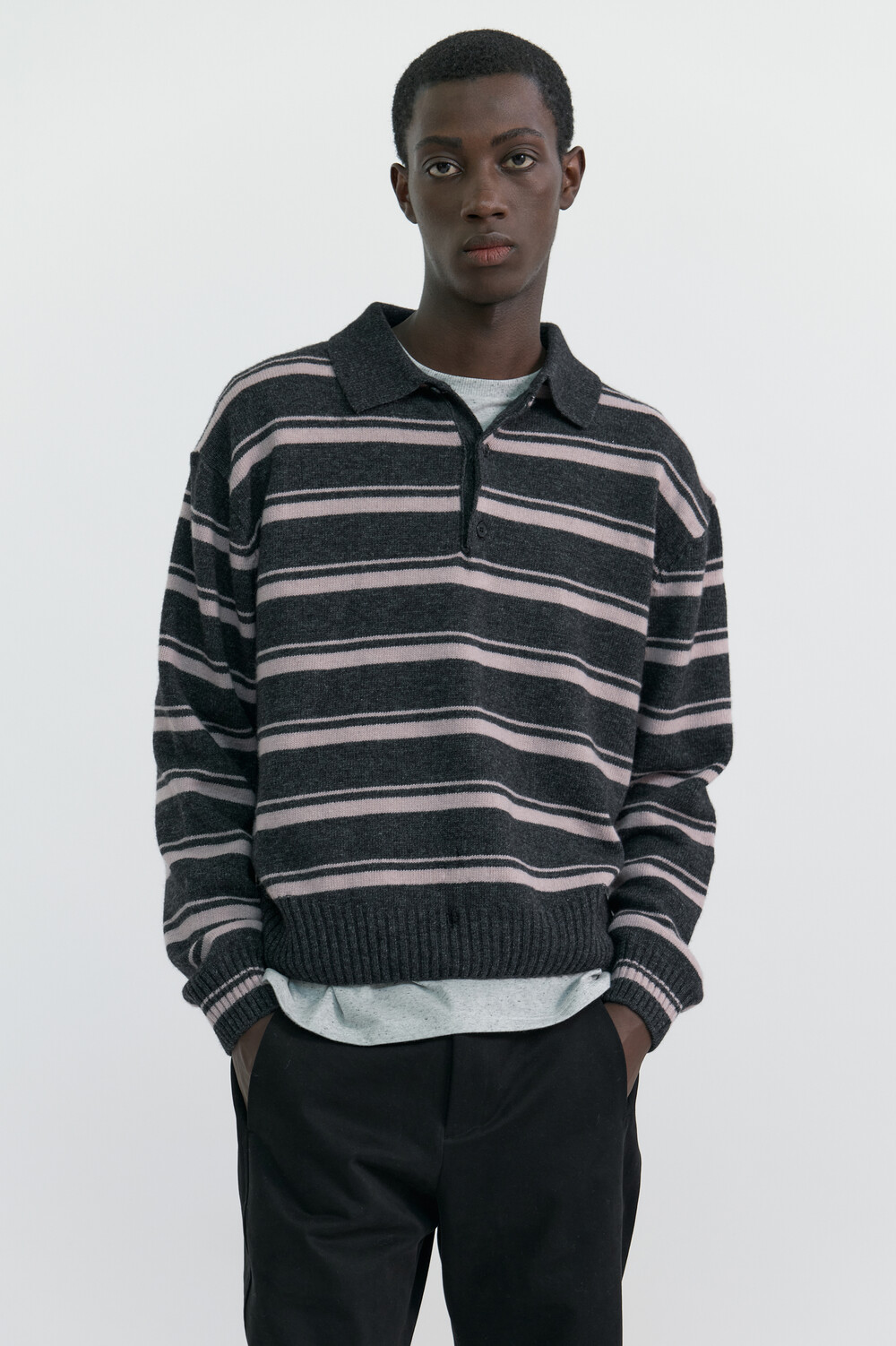 -모던한 스트라이프 패턴과 컬러가 돋보이는 폴로 니트
