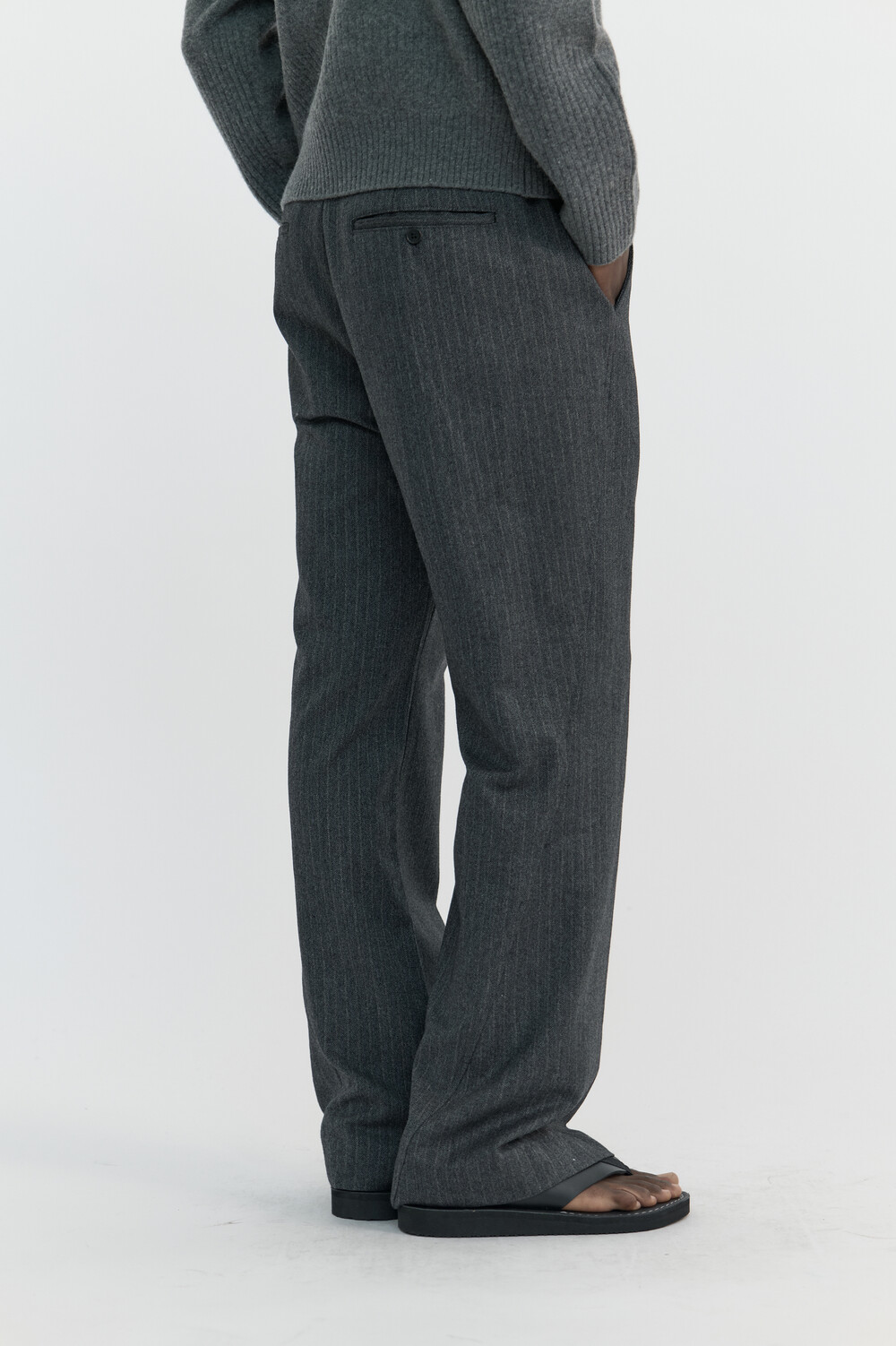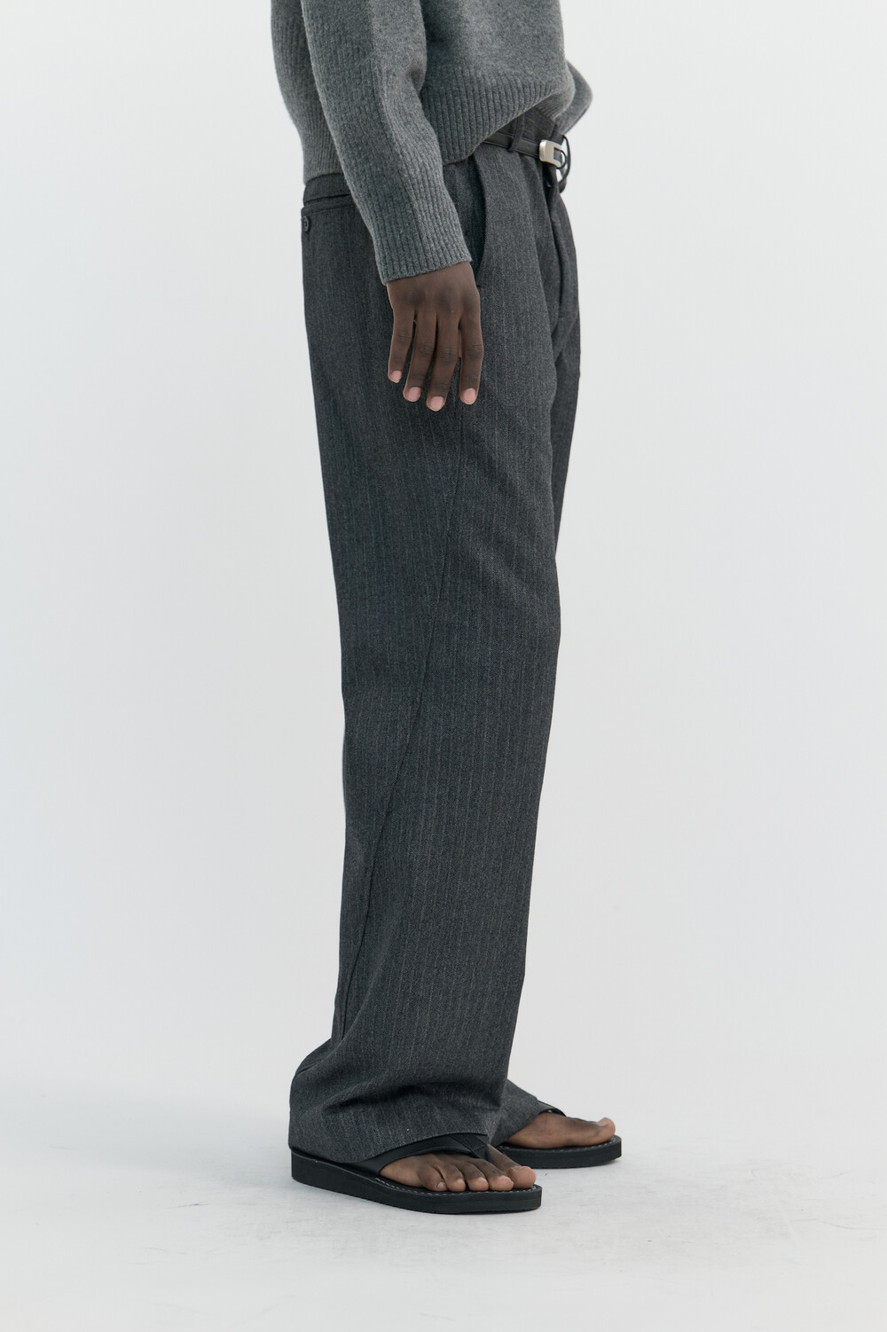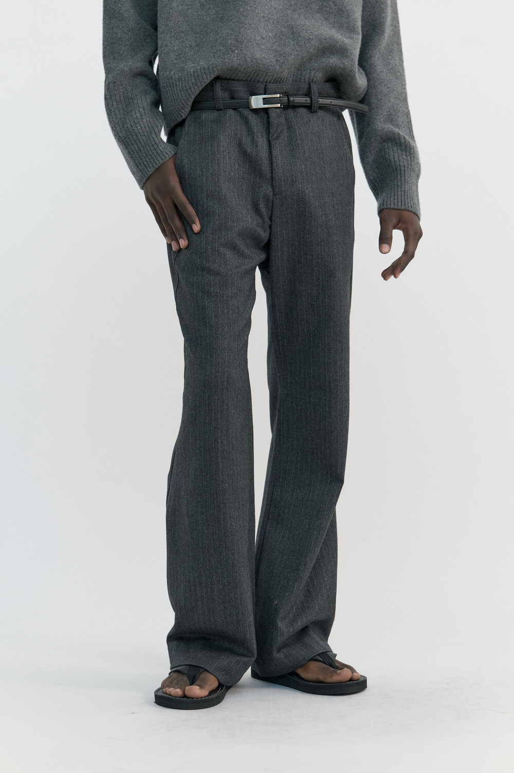 [WINDER] SLANT FLARE WOOL TROUSERS - HARRINGBONE CHARCOALSOLDOUT