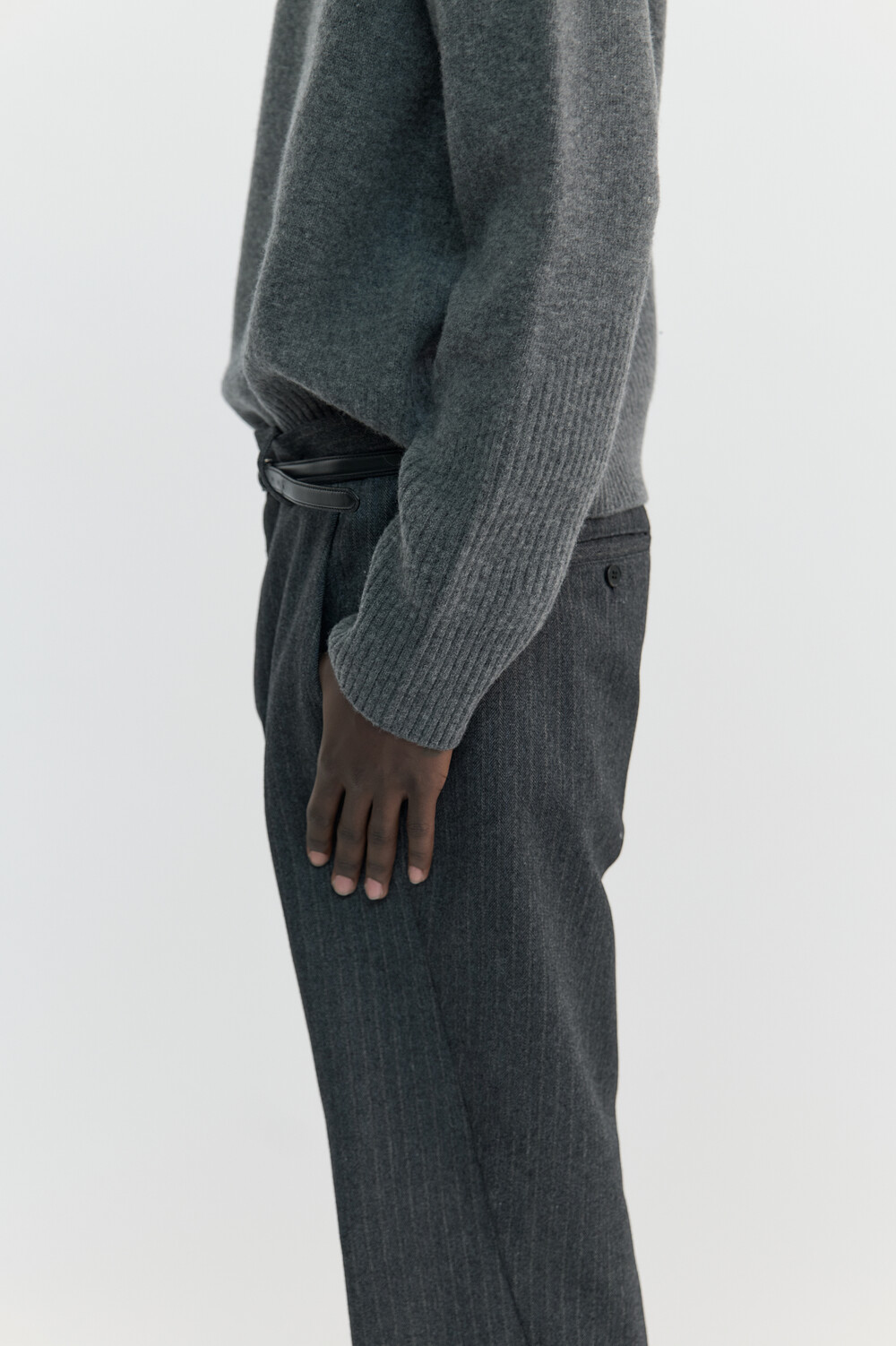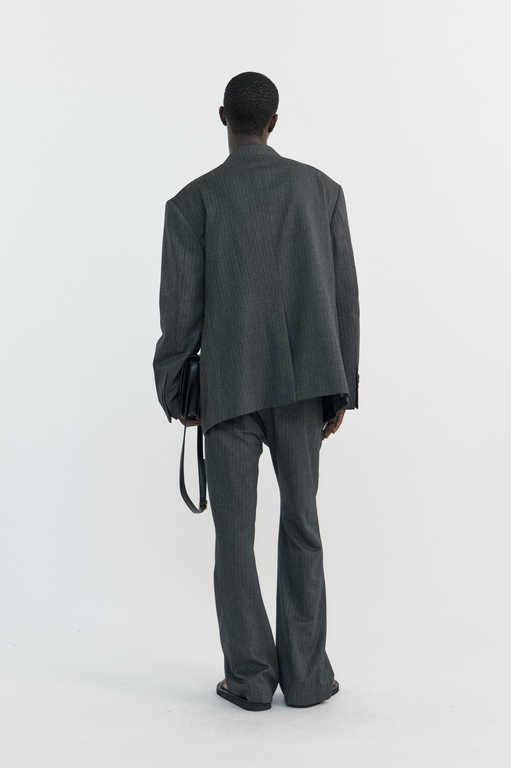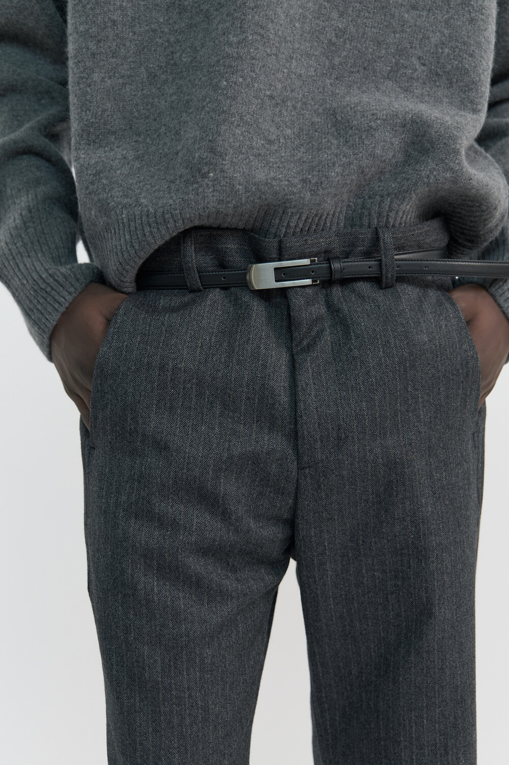 [WINDER] SLANT FLARE WOOL TROUSERS - HARRINGBONE CHARCOALSOLDOUT