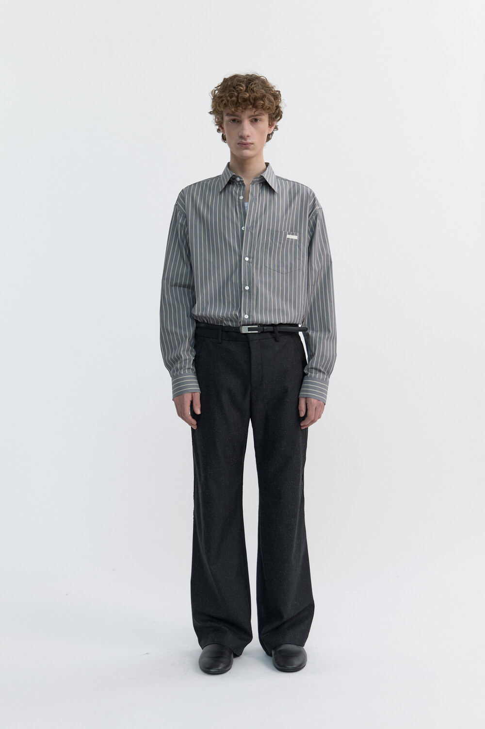 SLANT FLARE WOOL TROUSERS - NEP BLACK