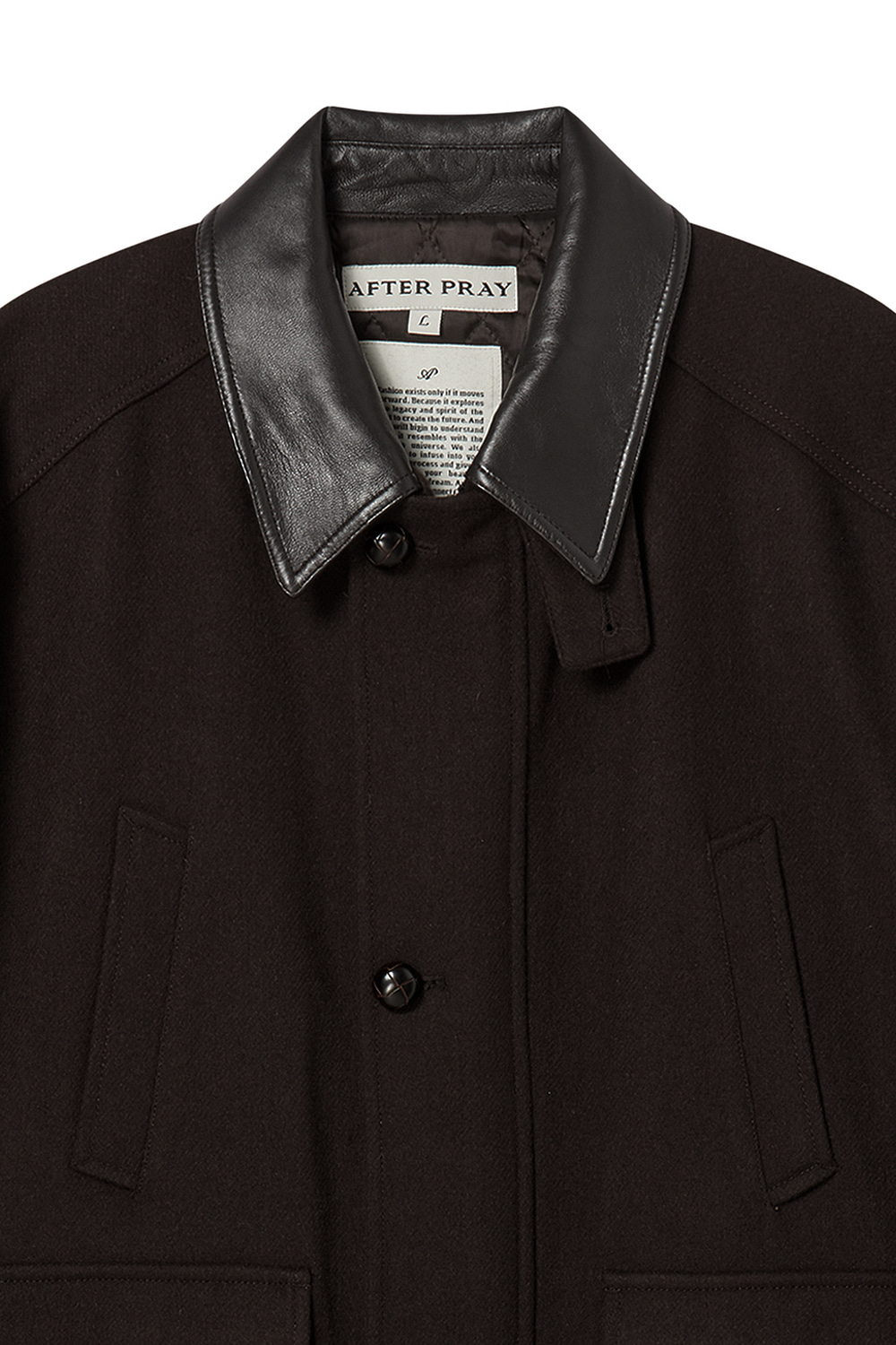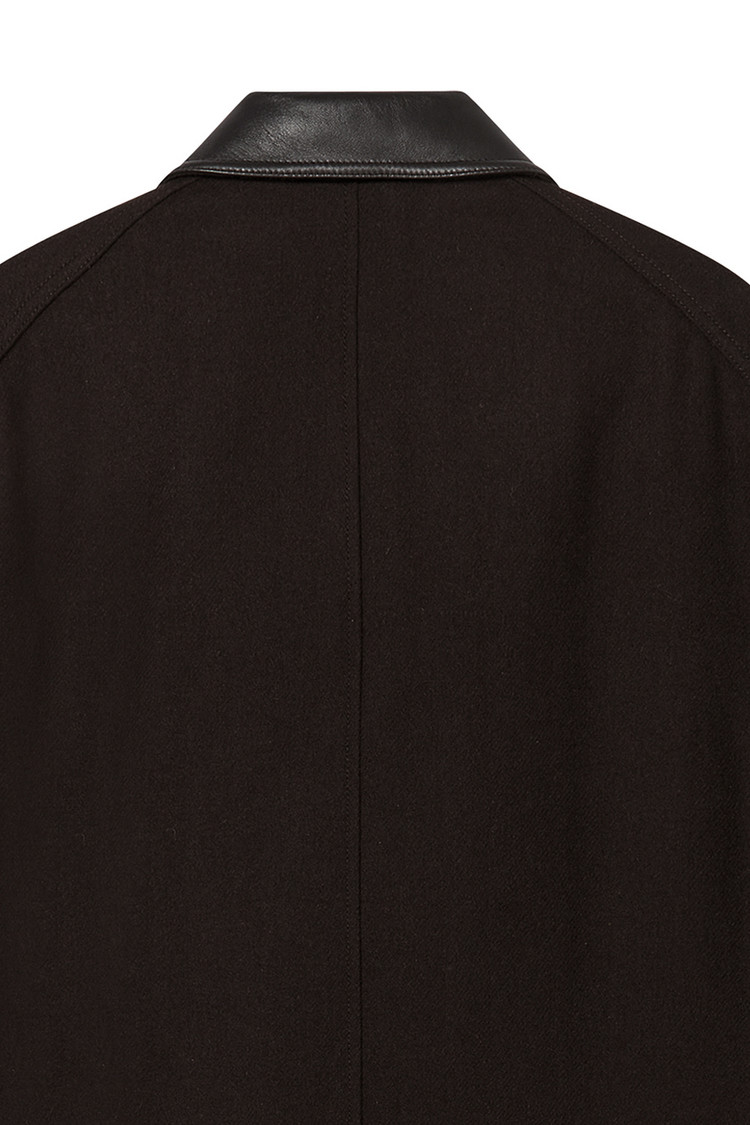 클래식한 무드를 전하는 헤링본 패턴. 2oz 하스 솜이 누빔된 안감으로 보온성을 높여 추운 날씨에도 착용 가능. 쉽 레더 카라와 디테처블 네크 스트랩으로 완성한 밀도 높은 디테일. 미드 길이의 오버사이즈드 실루엣으로 연출하는 구조적인 볼륨감.