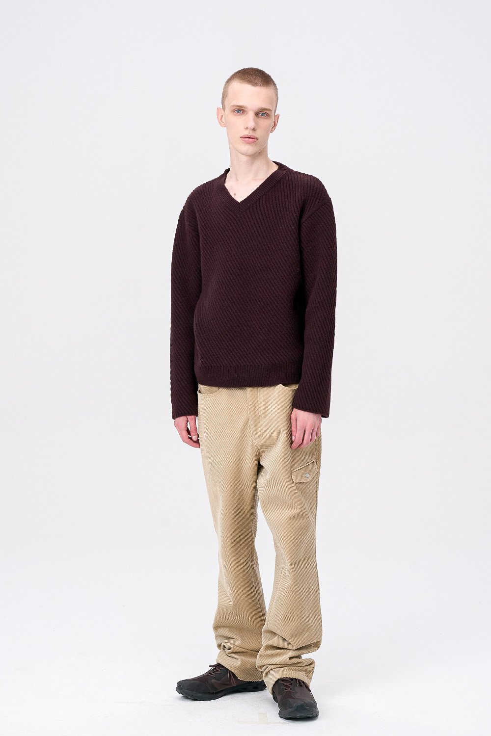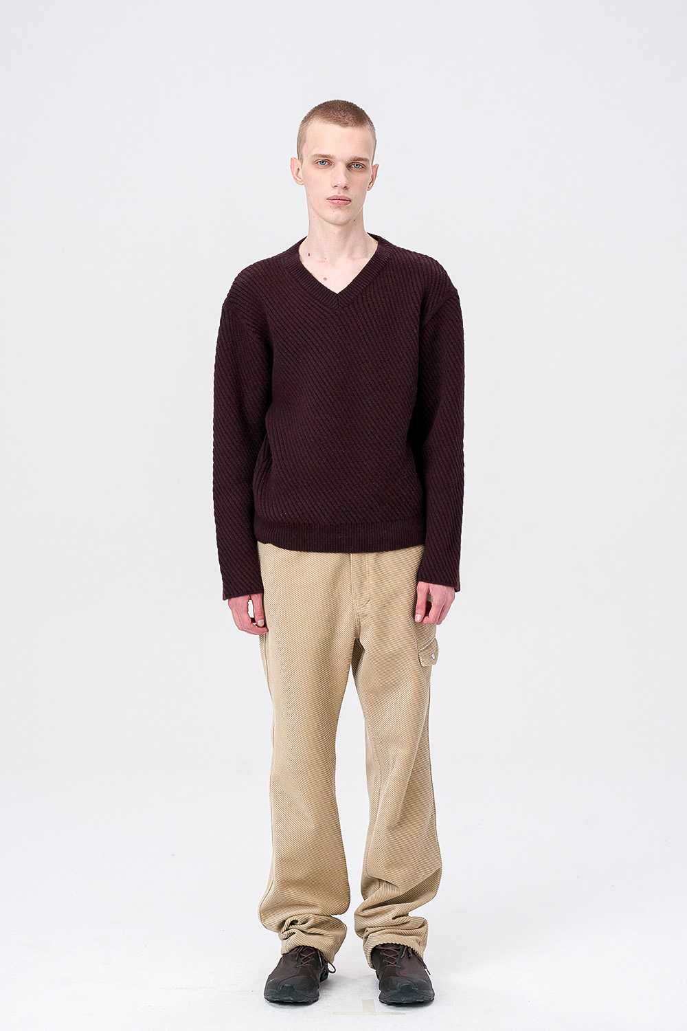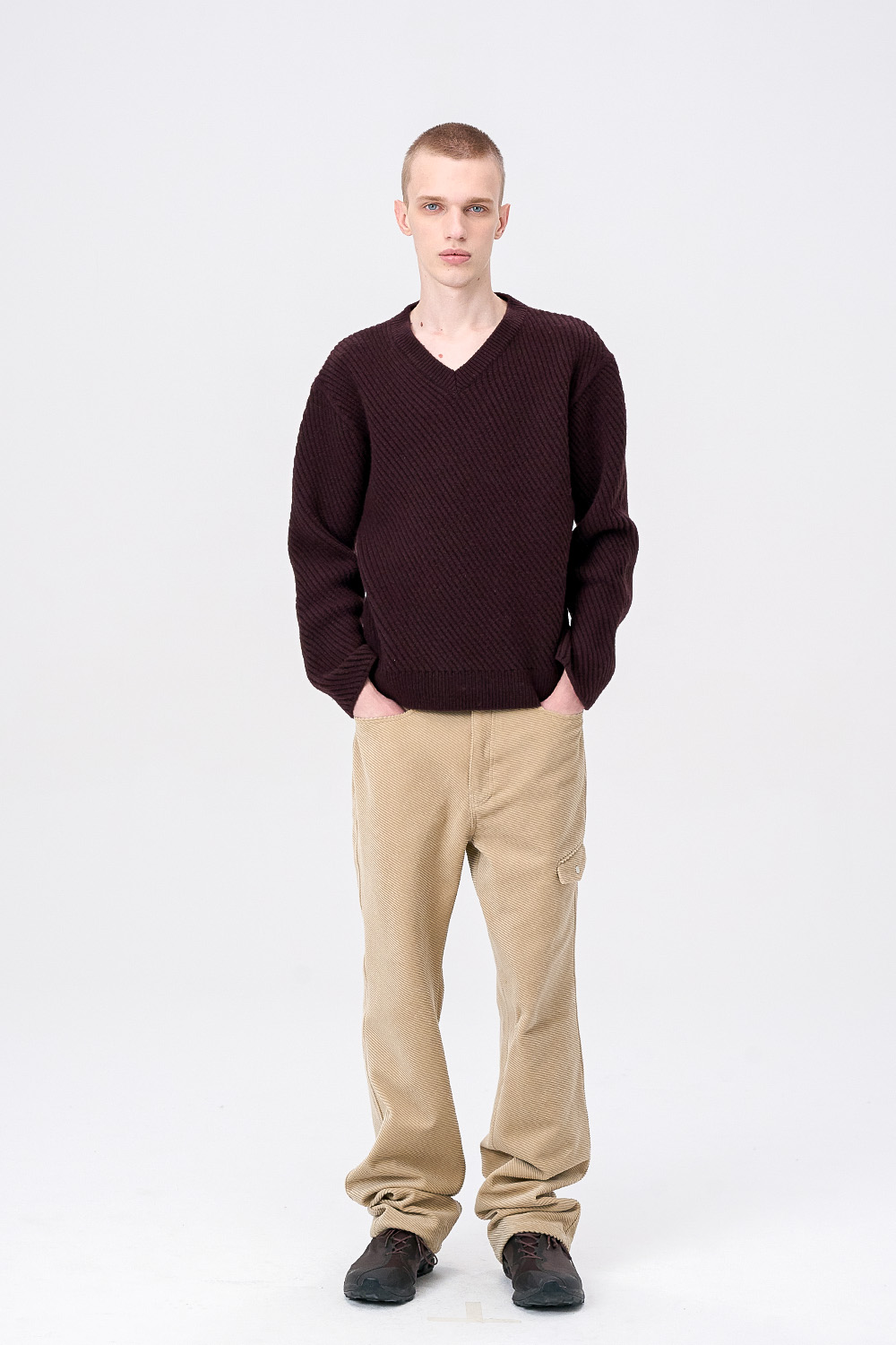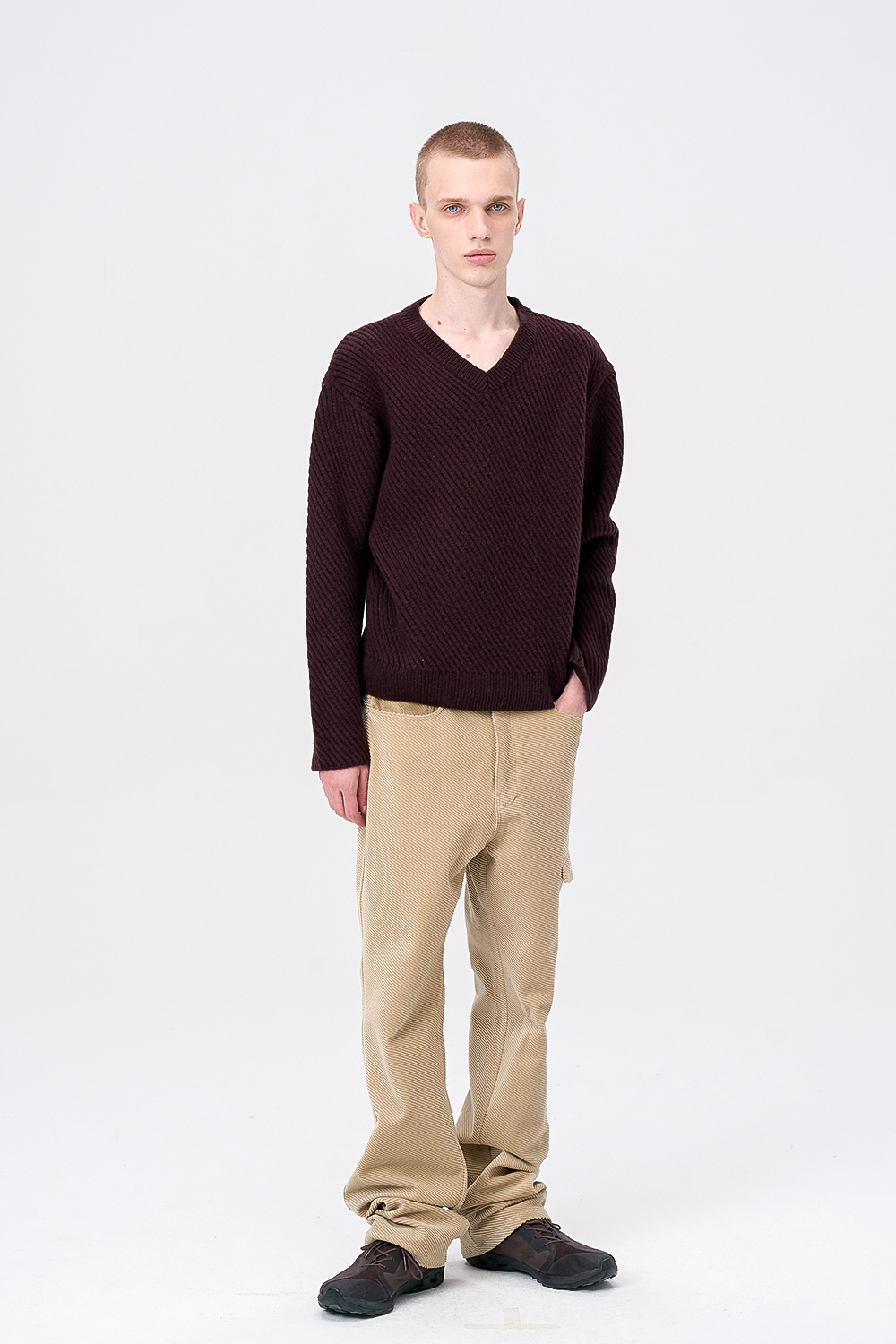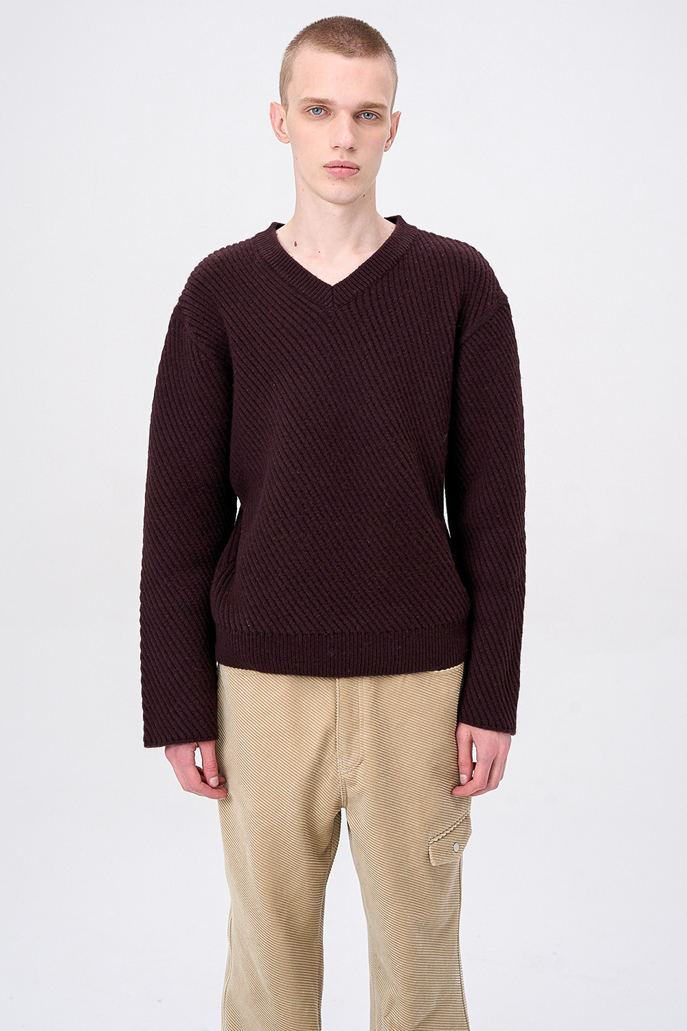 [ANYTIME LOREAK] CAMPSIS V-NECK KNIT-MULBERRY
