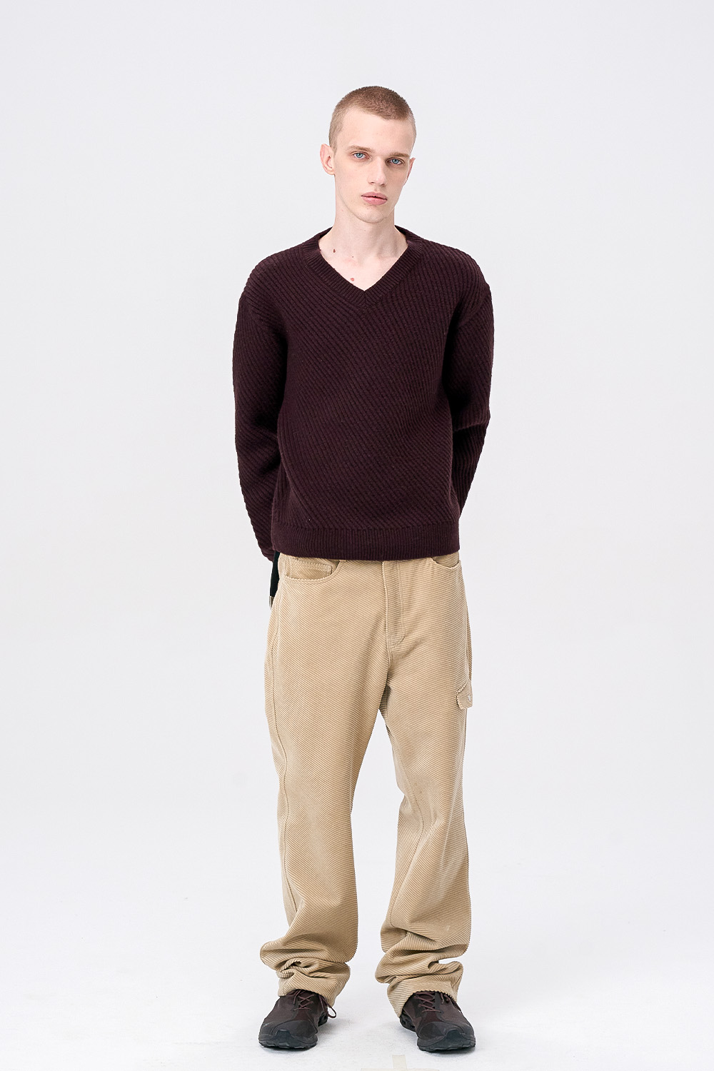 -핏한 실루엣의 브이넥 니트