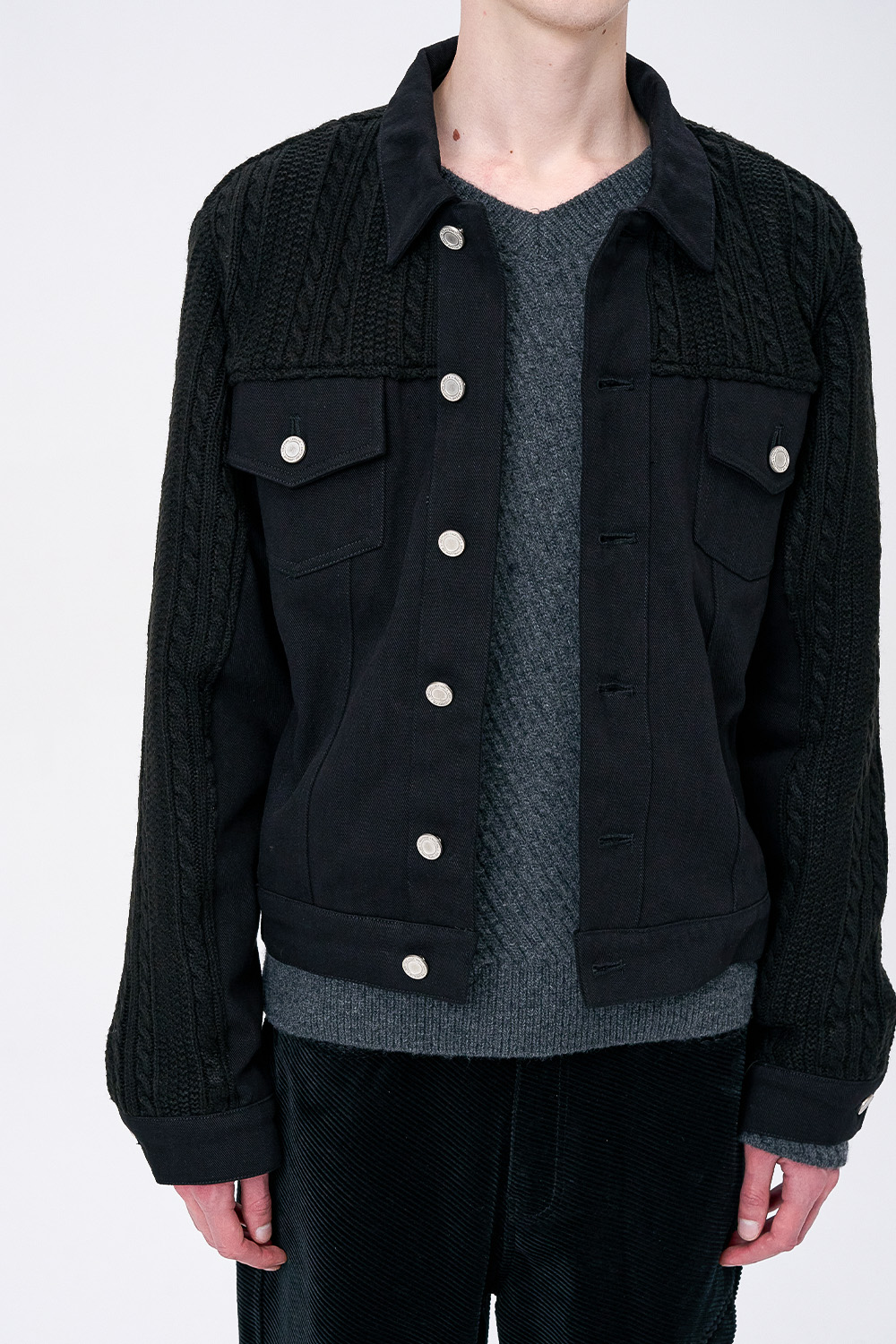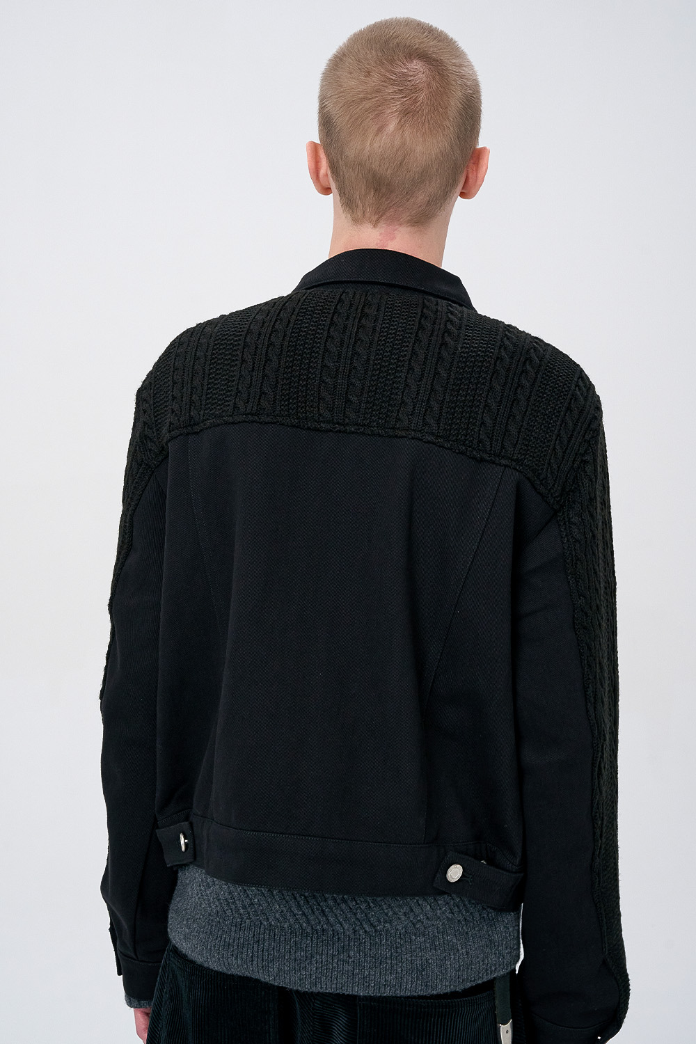 상단부에는 트윌 패턴의 니트소재를 이중 편직하였으며