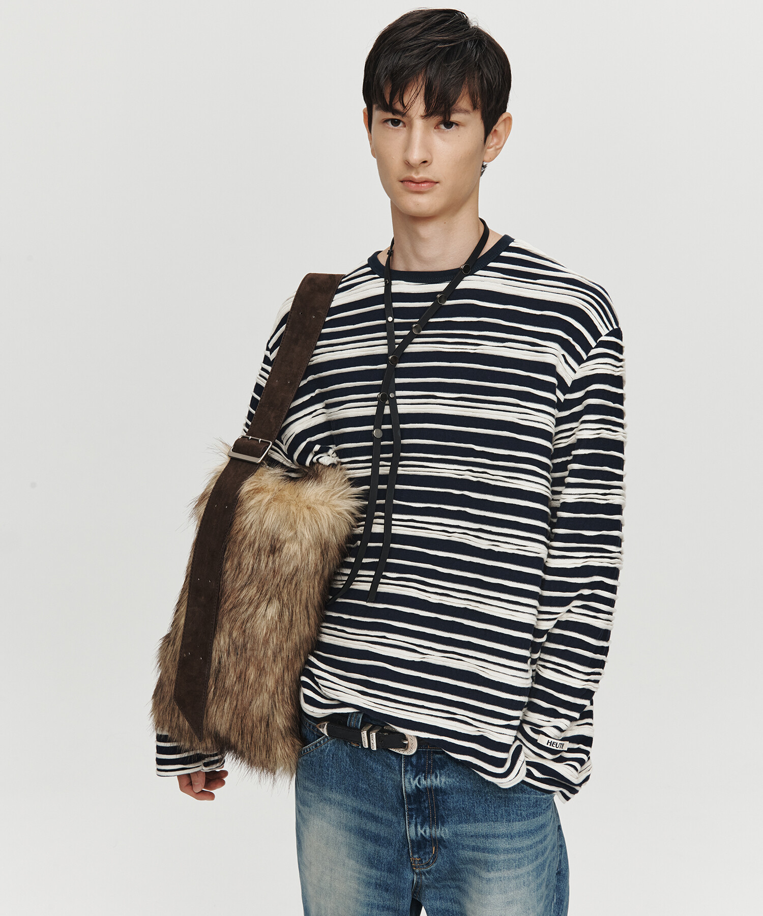 - 입체 골판지 조직의 코튼 스트라이프 티셔츠
