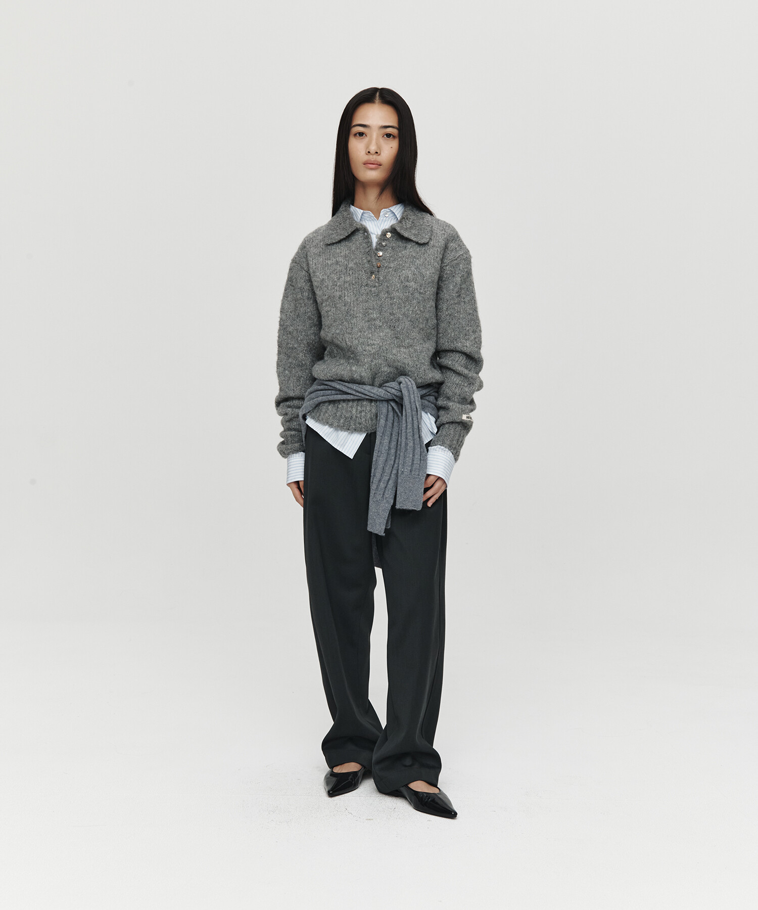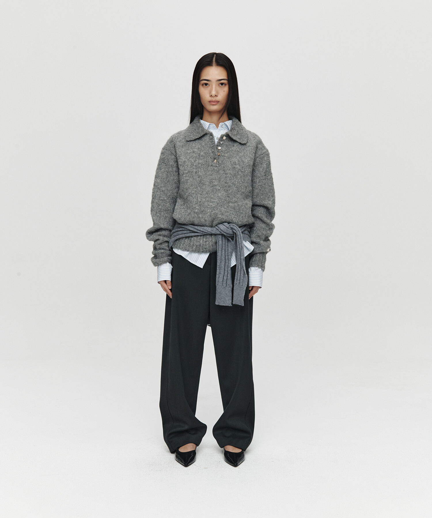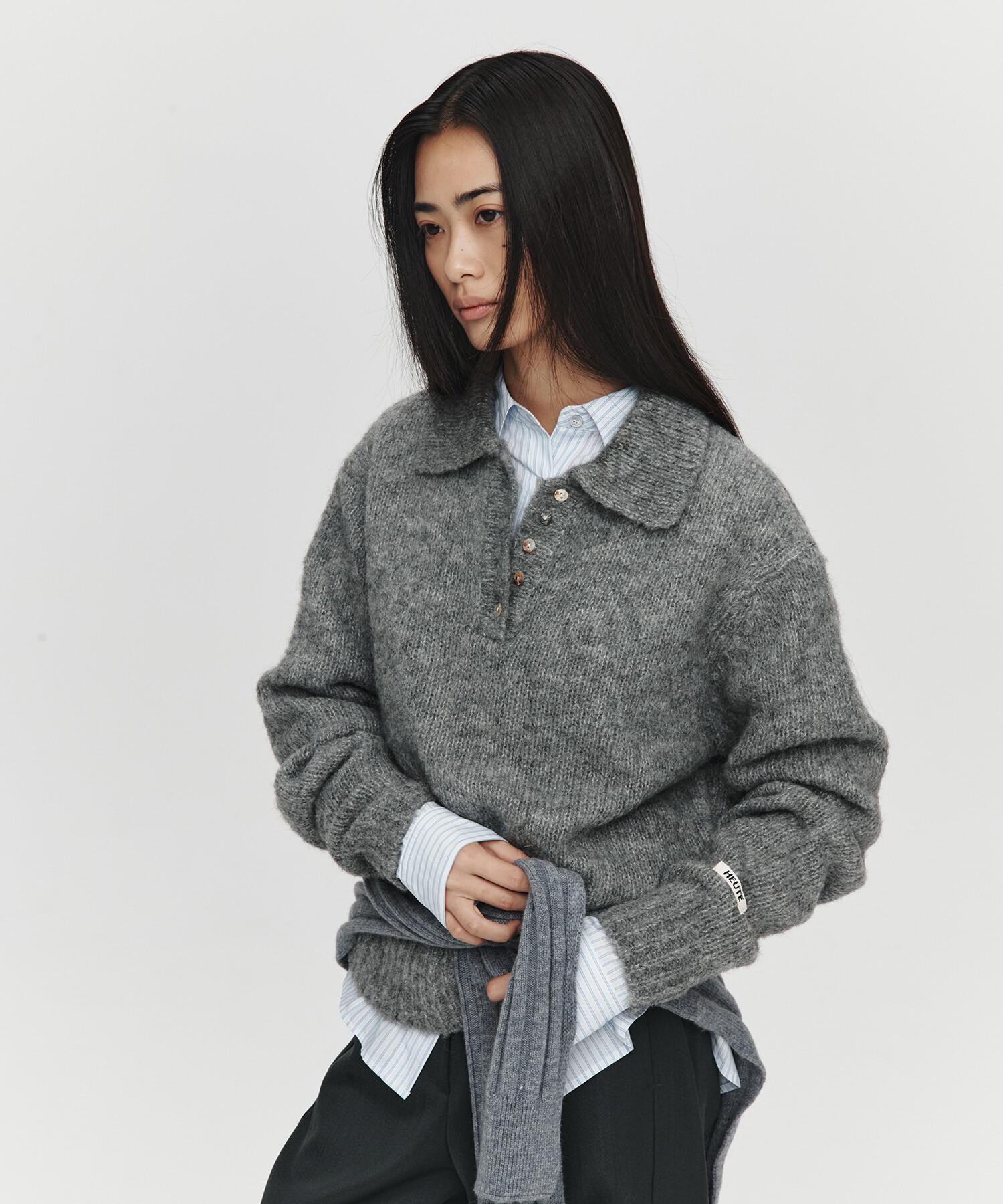 HET MOHAIR POLO KNIT (CHARCOAL)