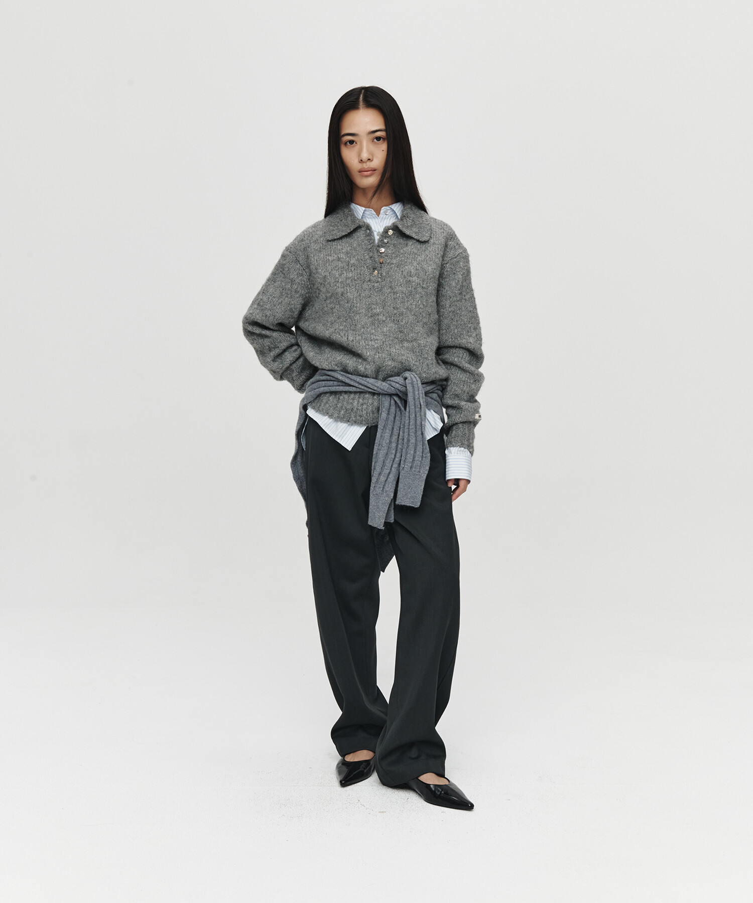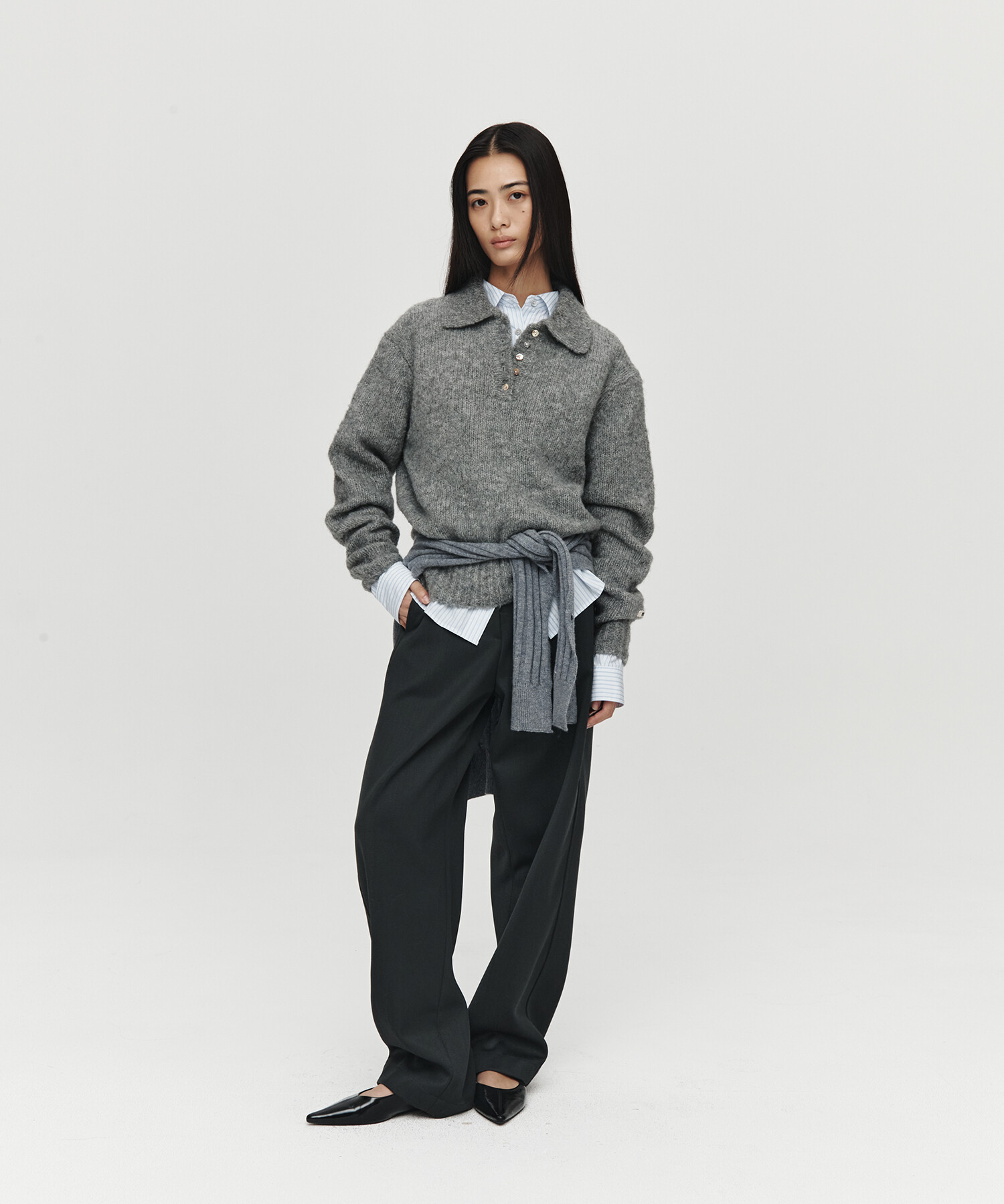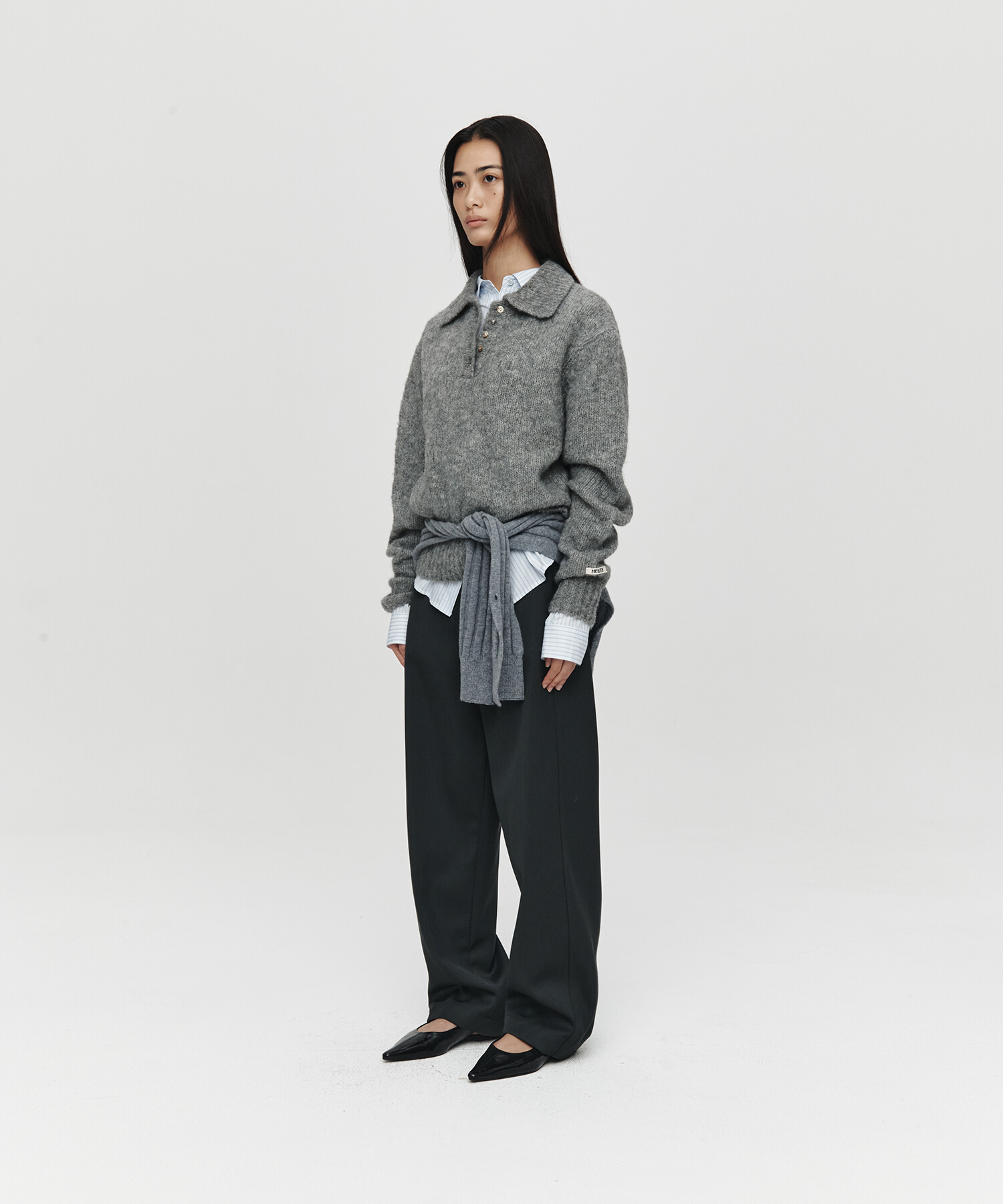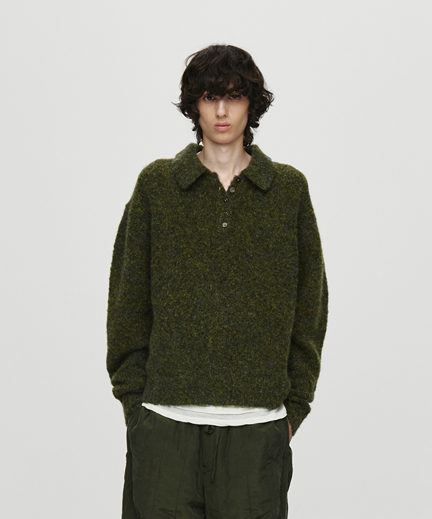 HET MOHAIR POLO KNIT (CHARCOAL)