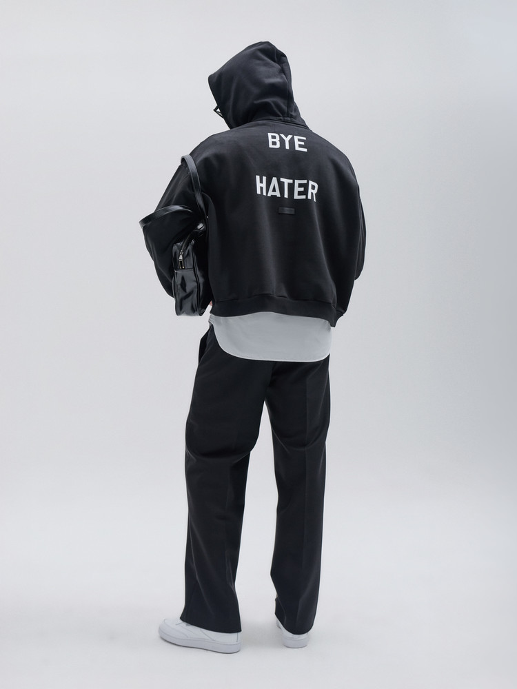 - 전면에는 "HI HATER", 후면에는 "BYE HATER" 프린팅을 더해 위트 있는 포인트를 주었습니다.