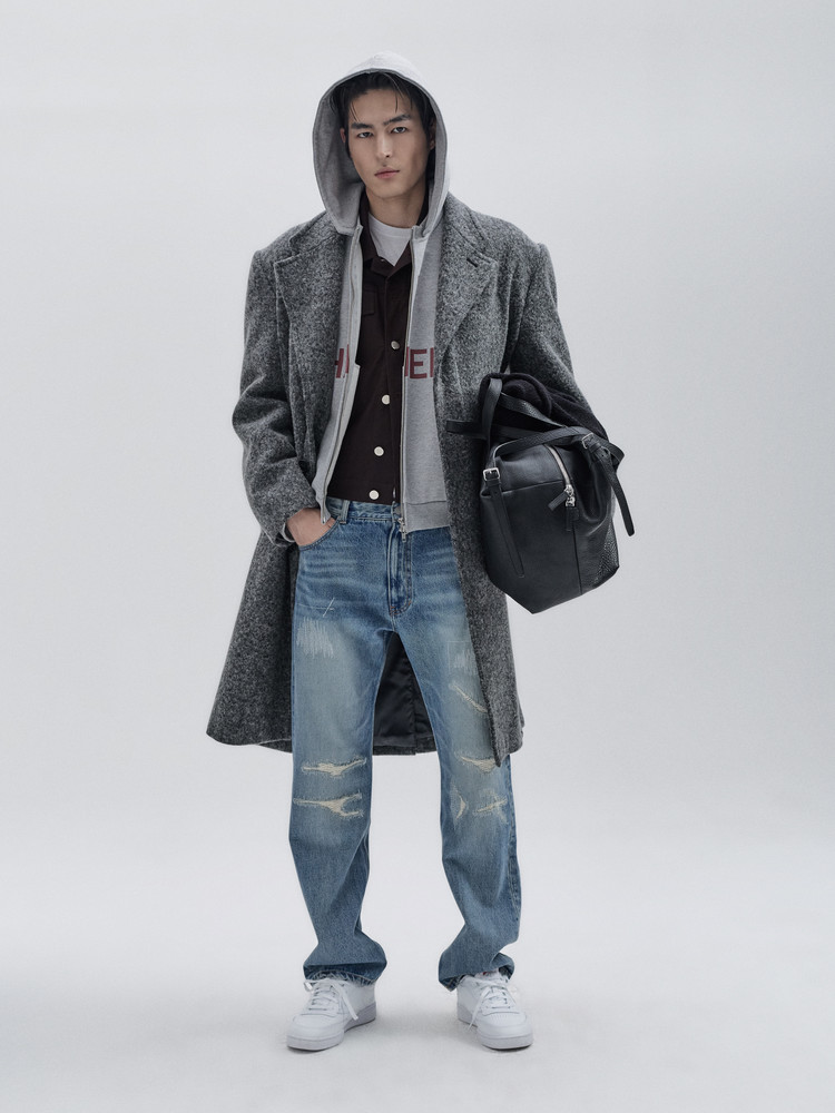 - 소재감이 돋보이는 그레이 울 소재로 완성한 싱글 브레스트 코트입니다.