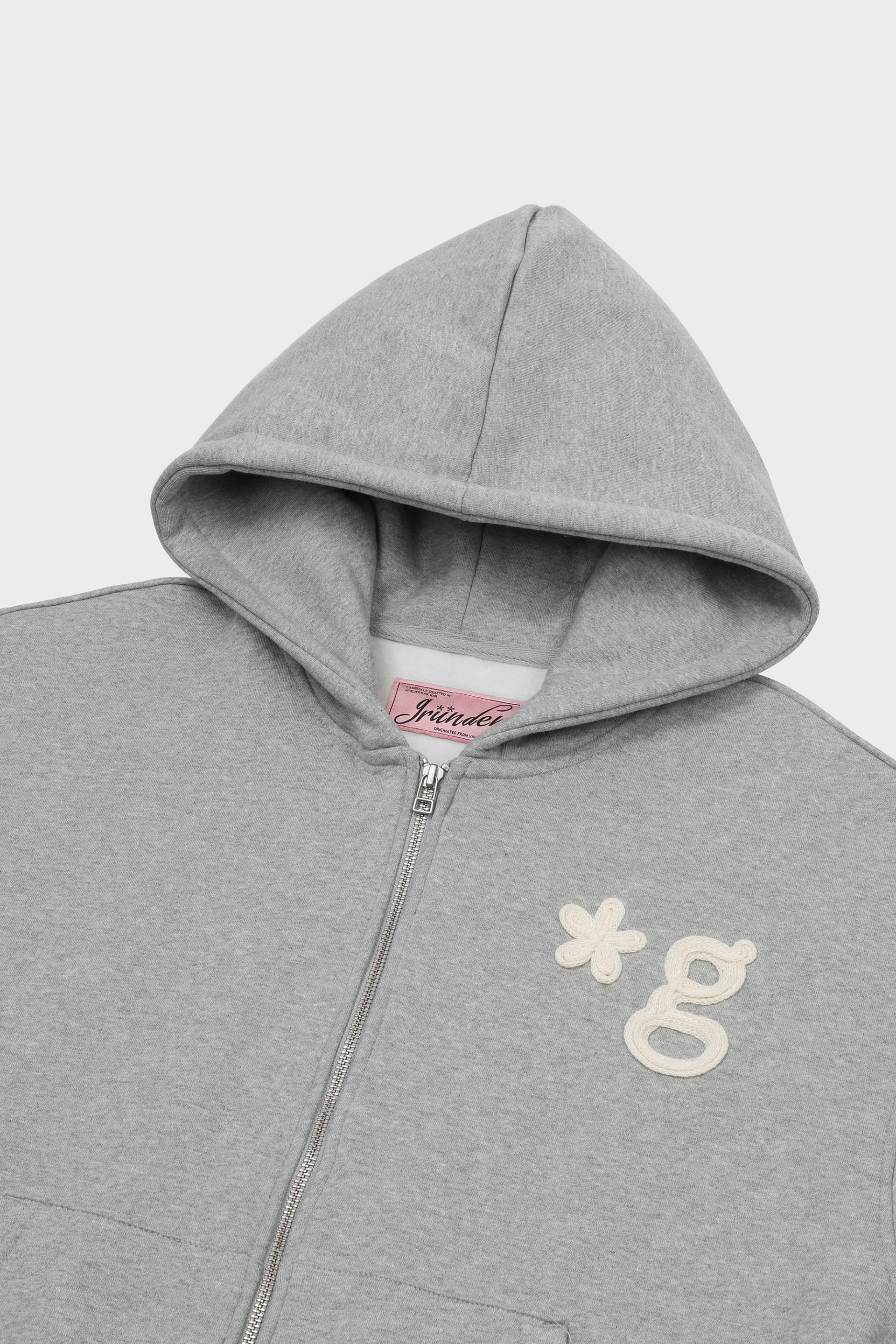 HAND WORK FLUFFY HOODIE ZIP-UP (GREY)