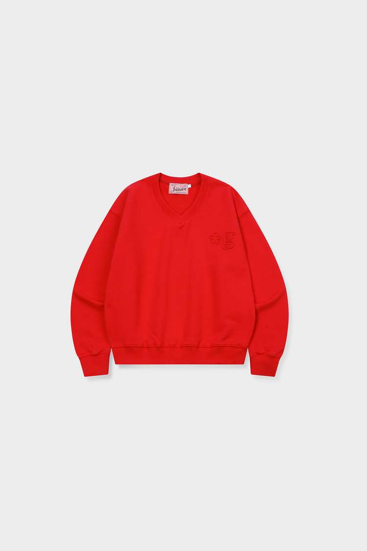 SIGNATURE LOGO V NECK SWEATSHIRT (RED)