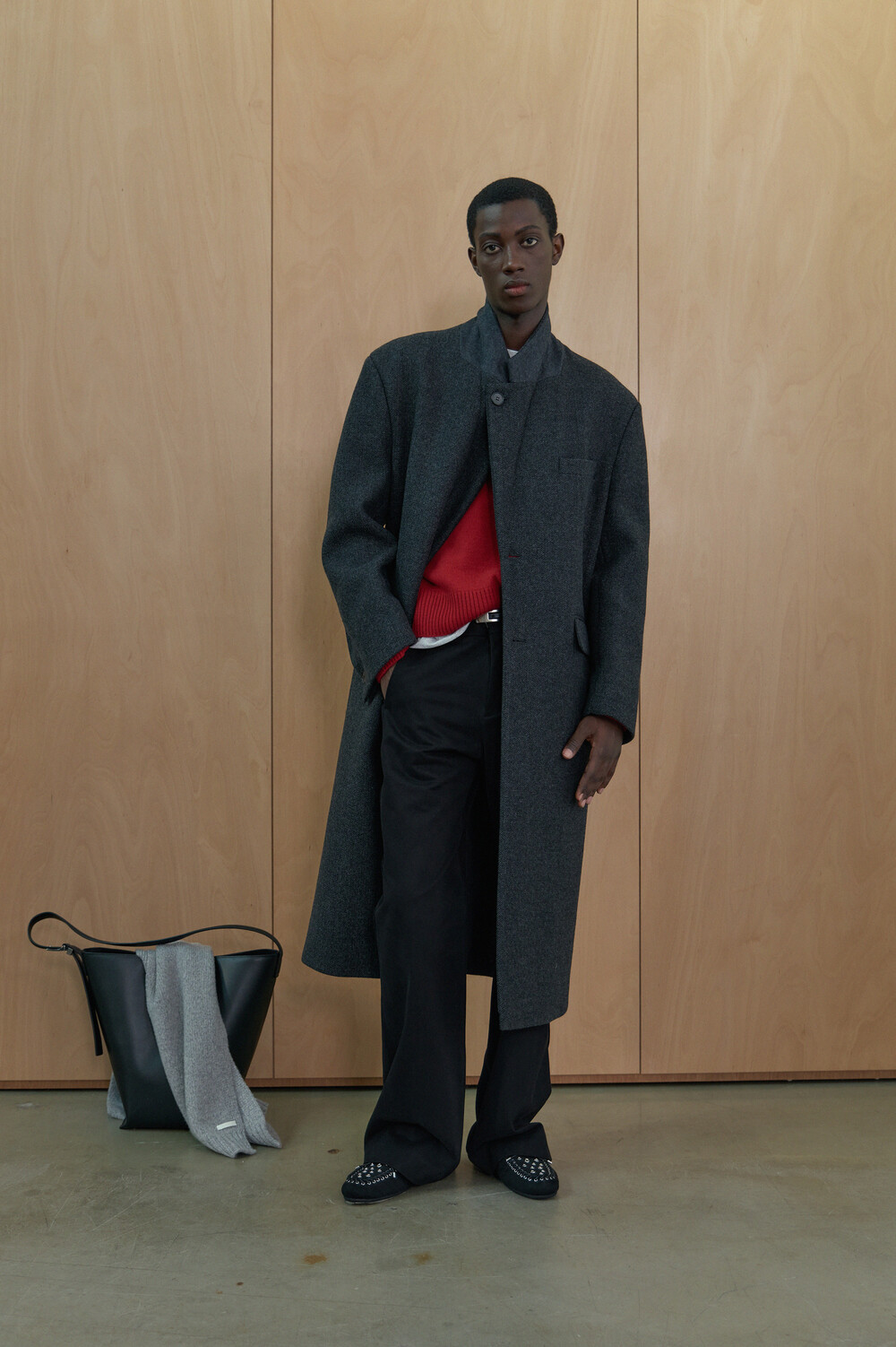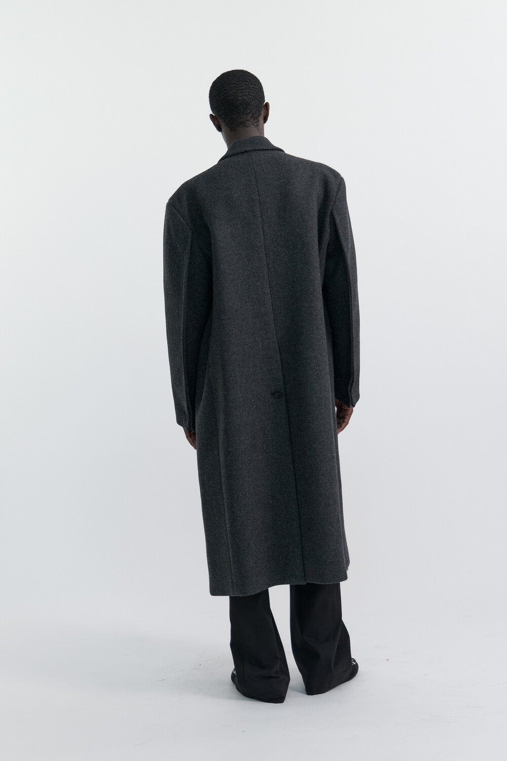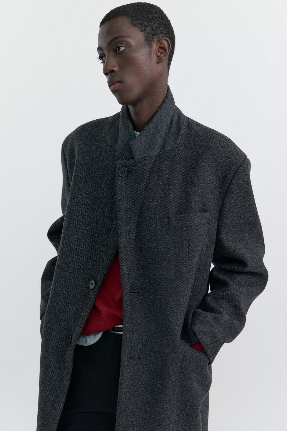 -중량감있는 방모울 소재와 세미오버사이즈 실루엣이 돋보이는 클래식 싱글 브레스티드 코트