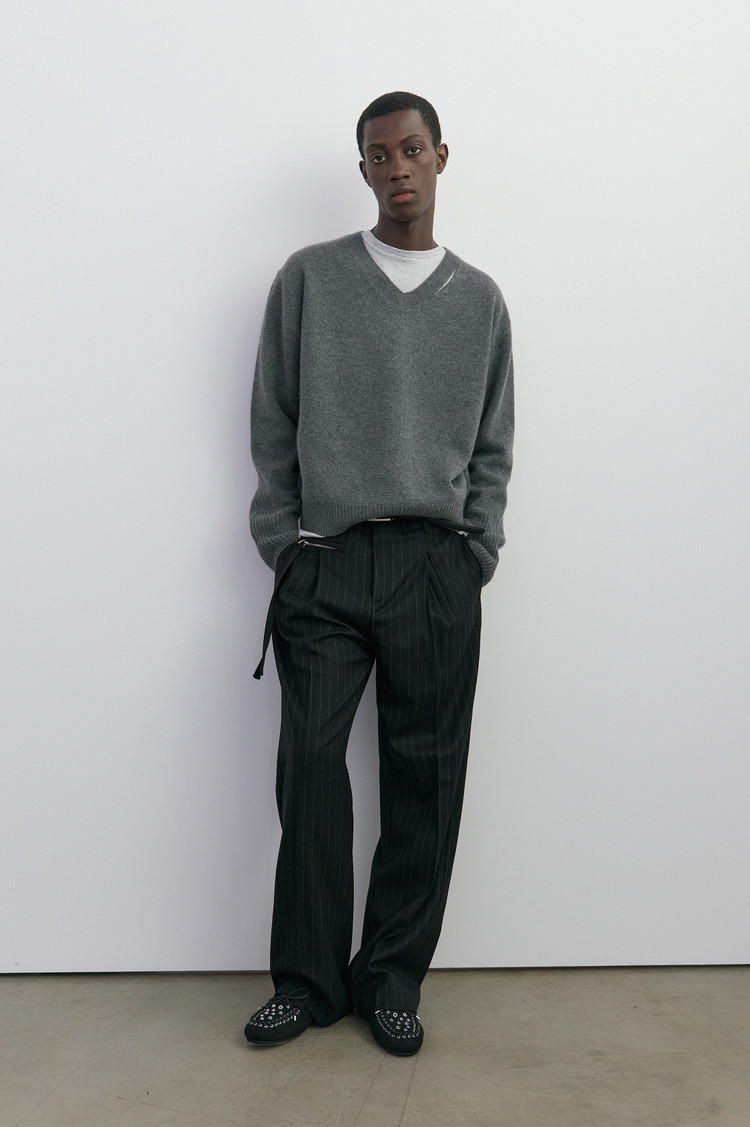 -세미오버사이즈 실루엣의 울 브이넥 스웨터