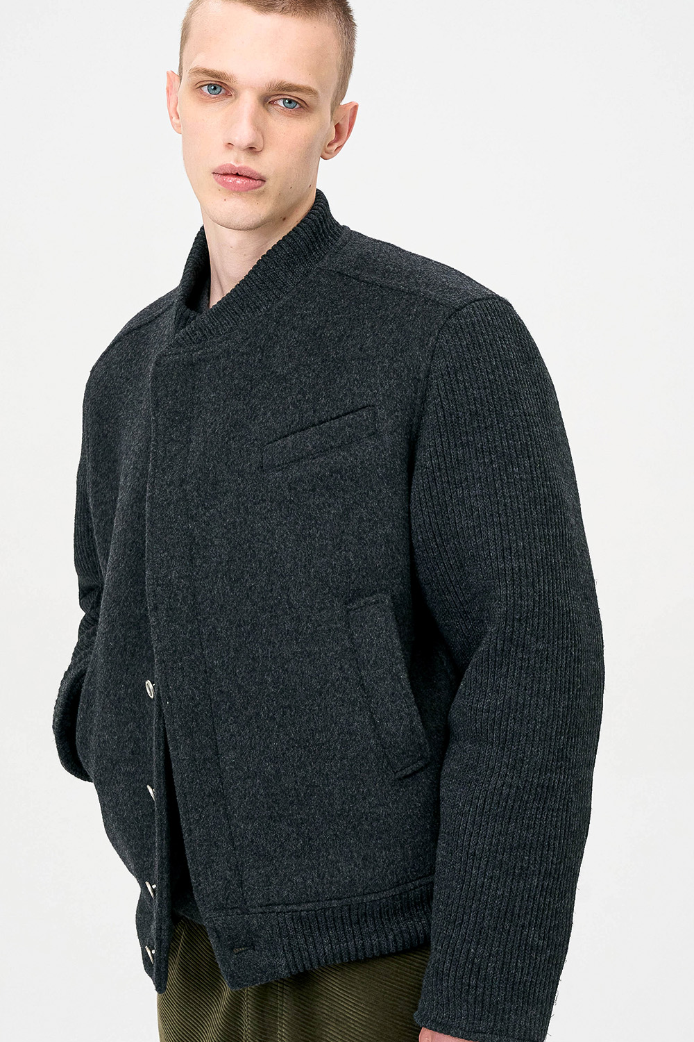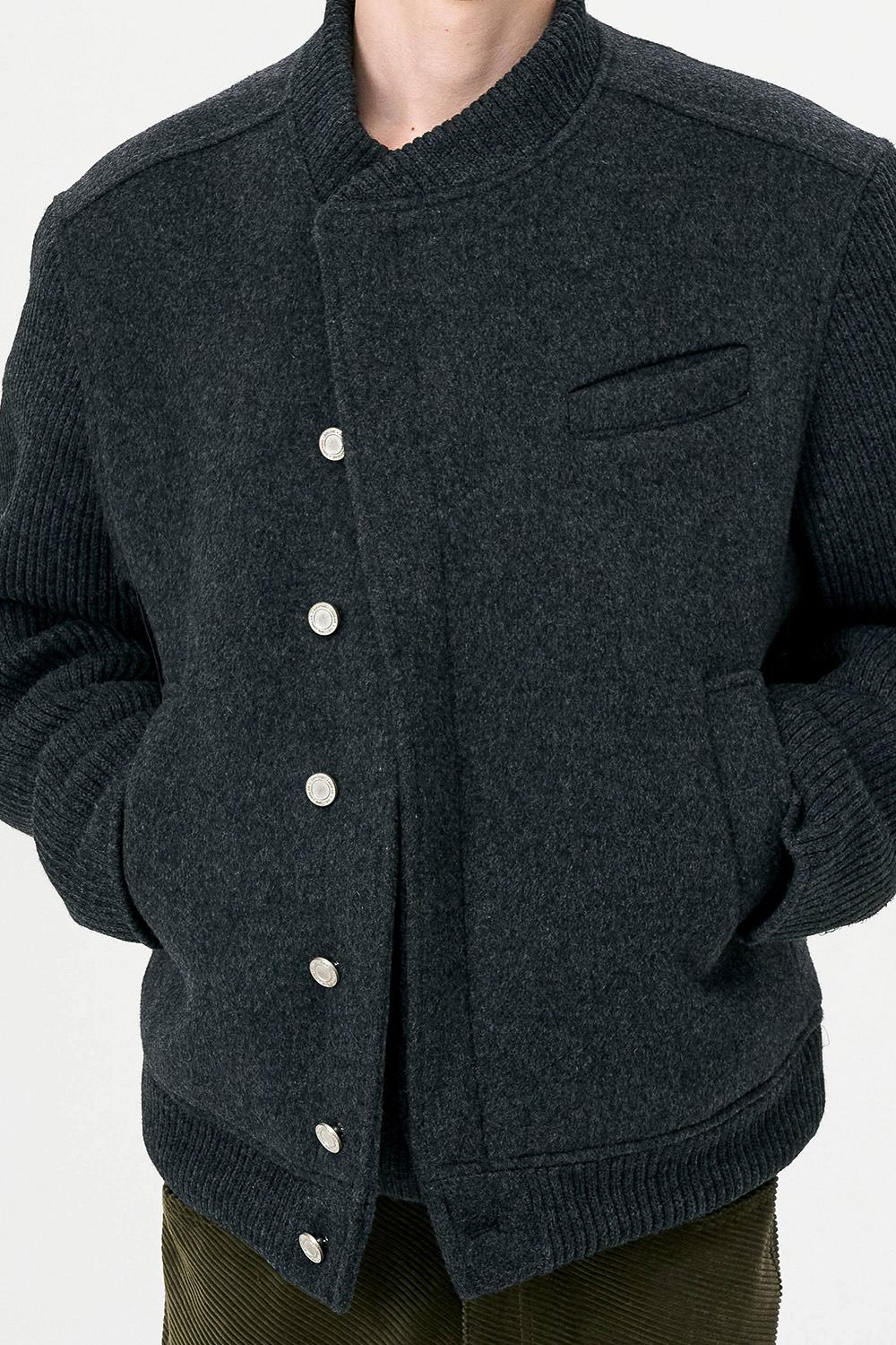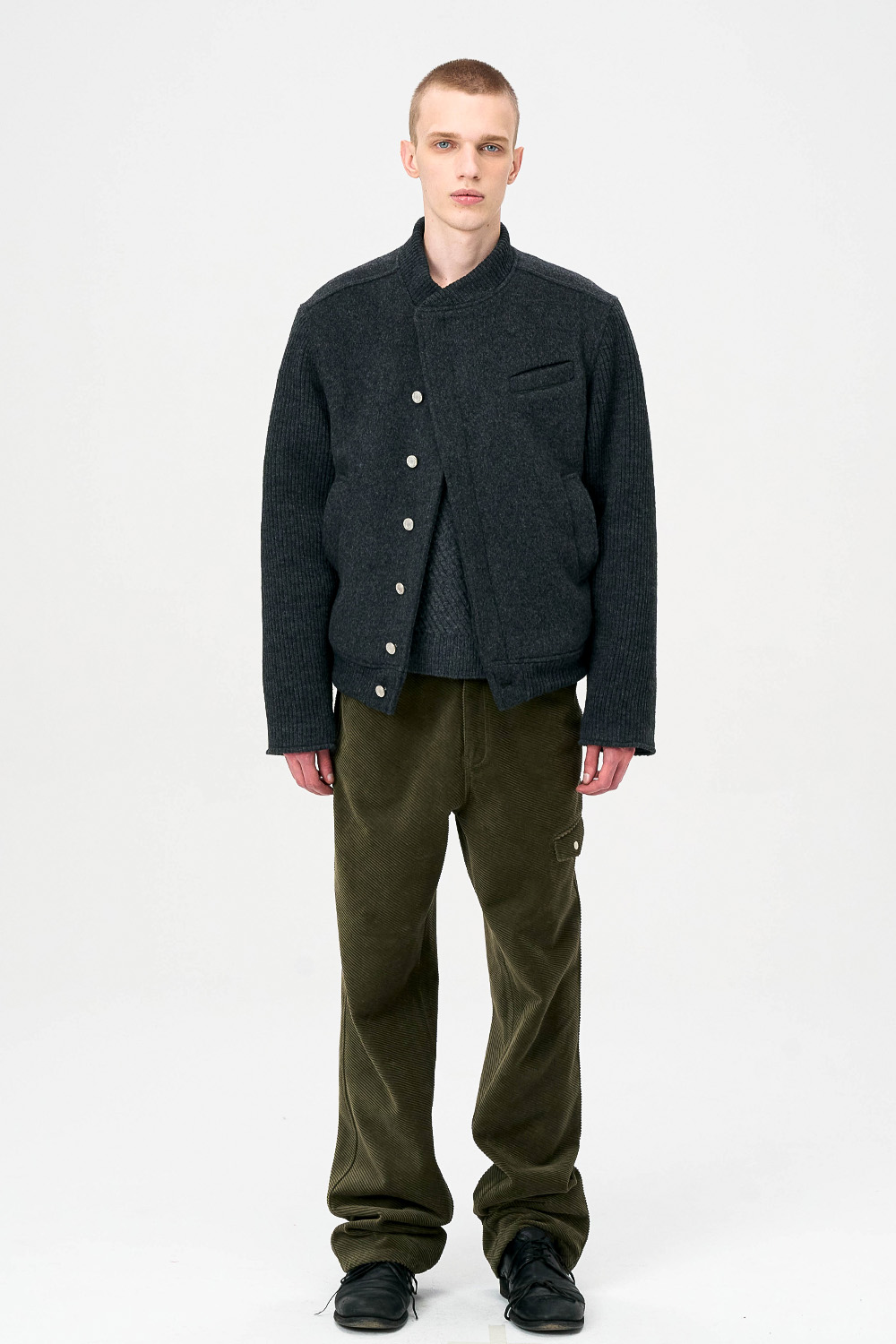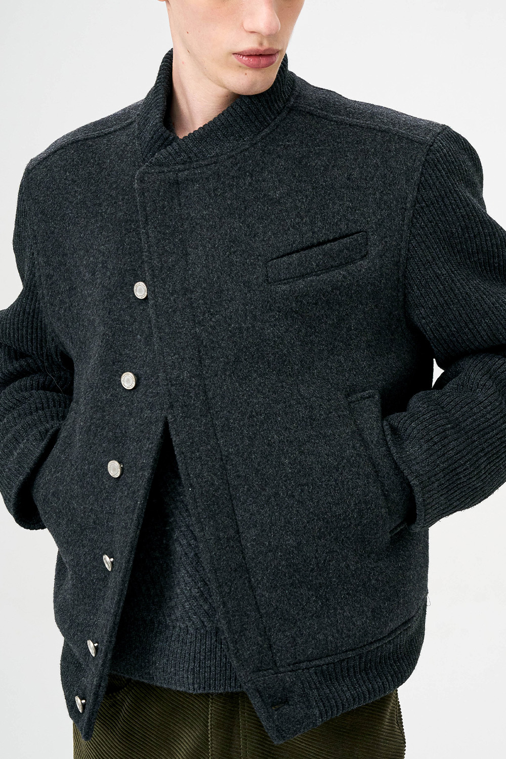 * 모직과 니트 소재를 믹스한 하이브리드 디자인