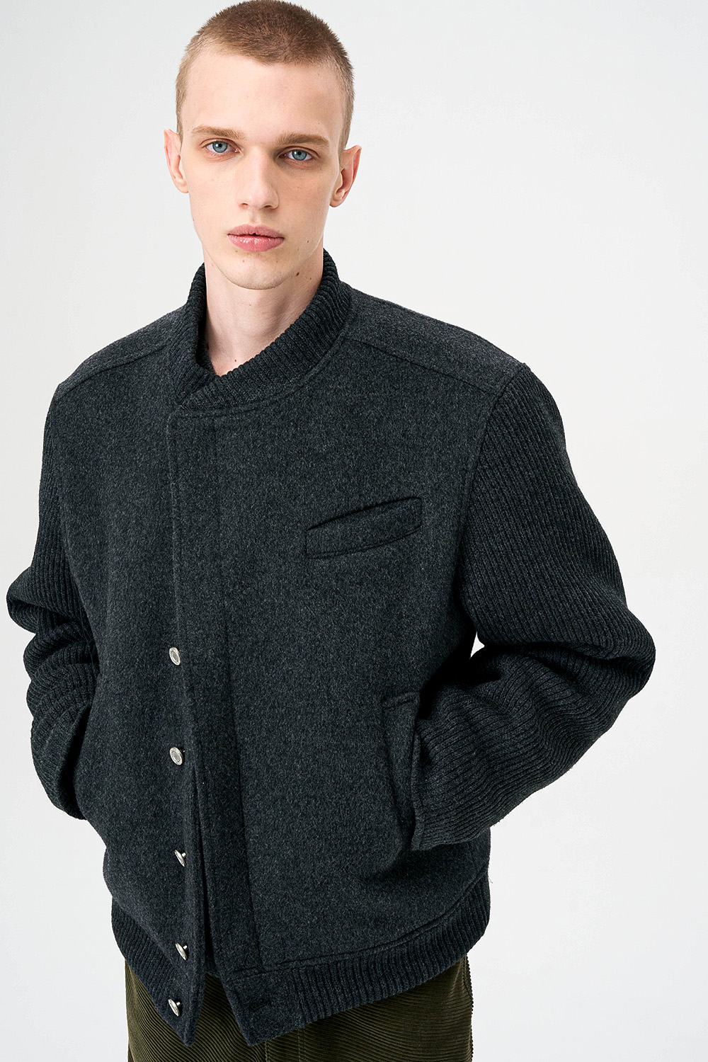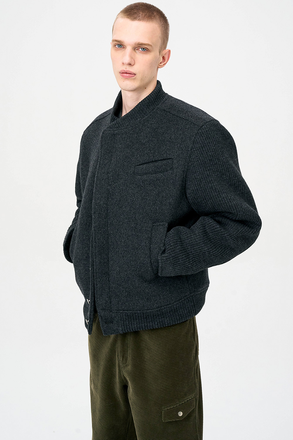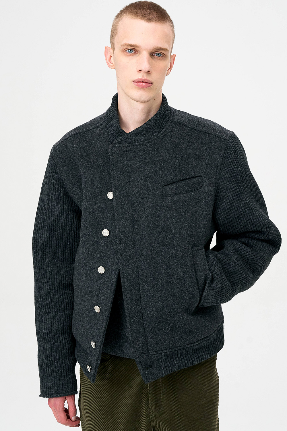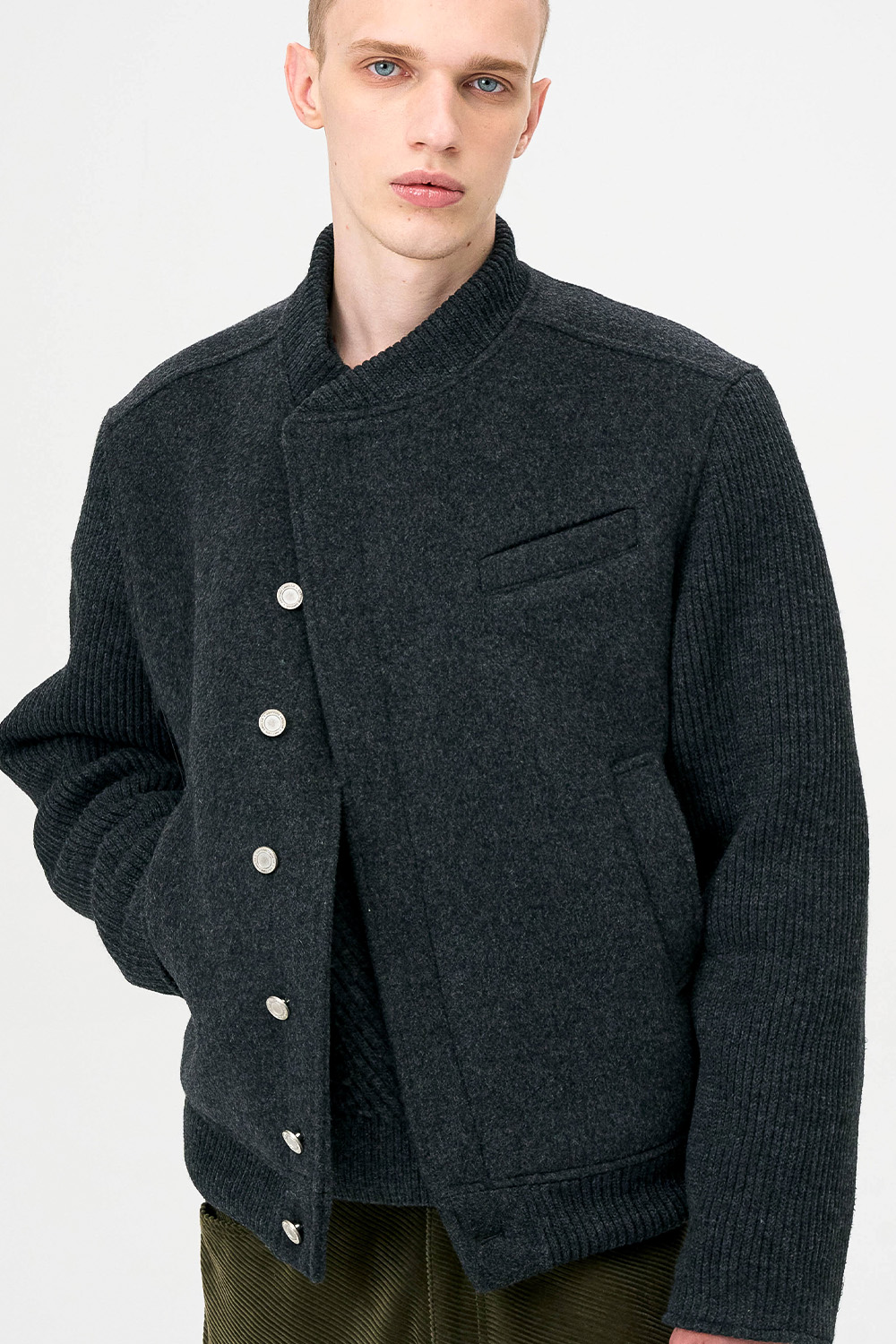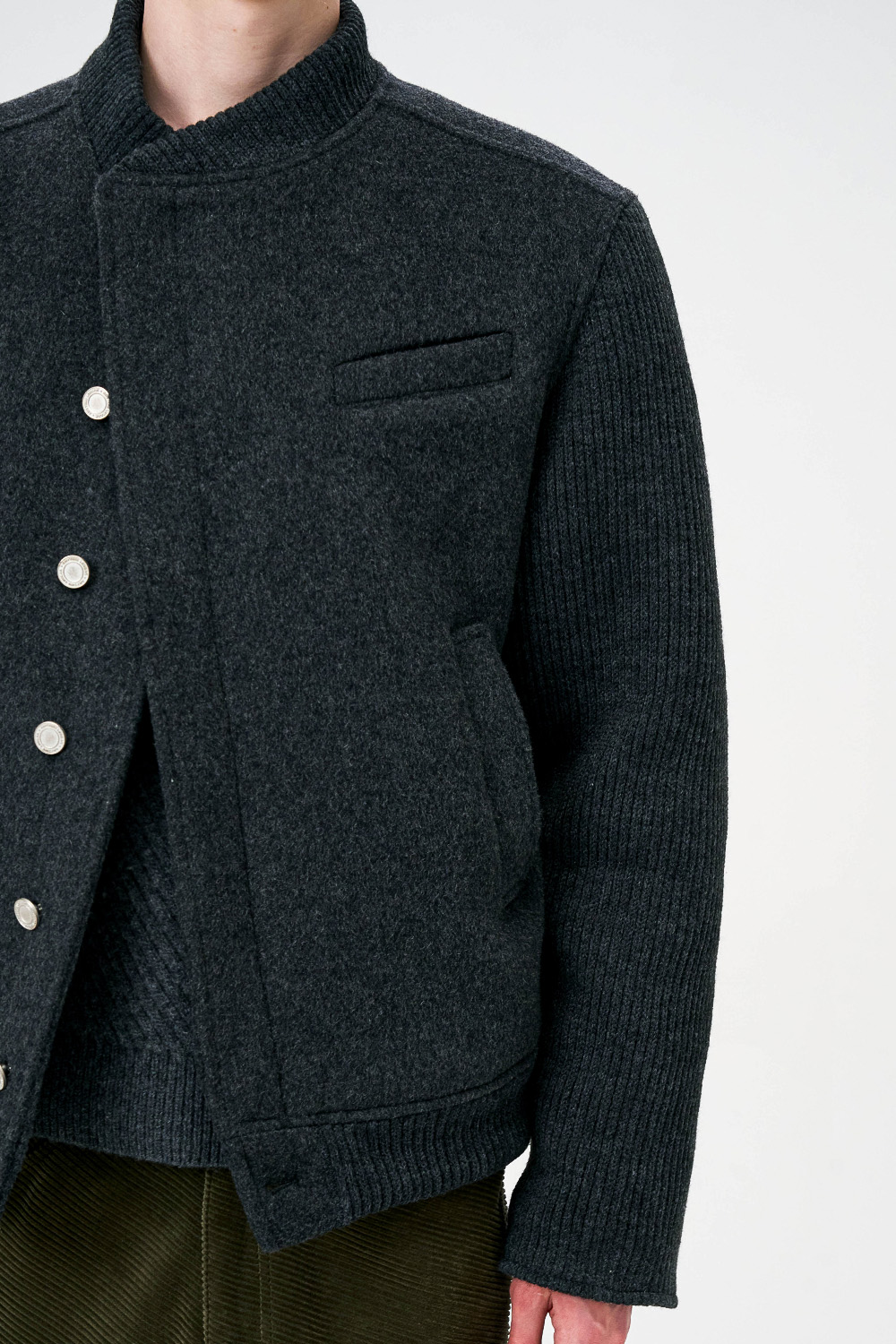 * 모직과 니트 소재를 믹스한 하이브리드 디자인