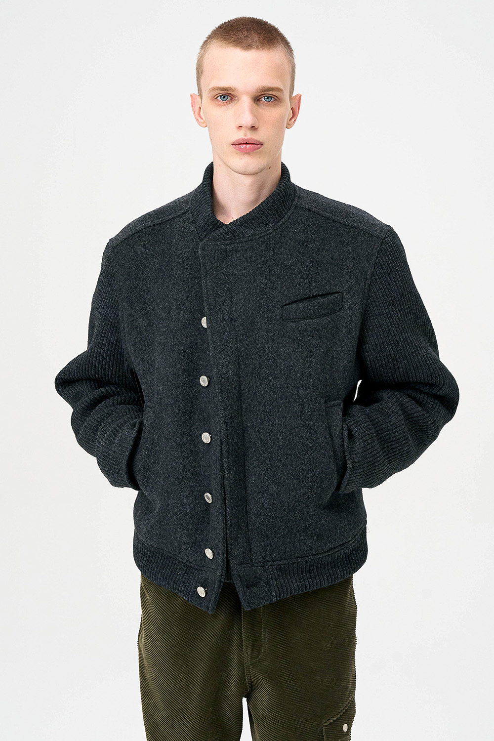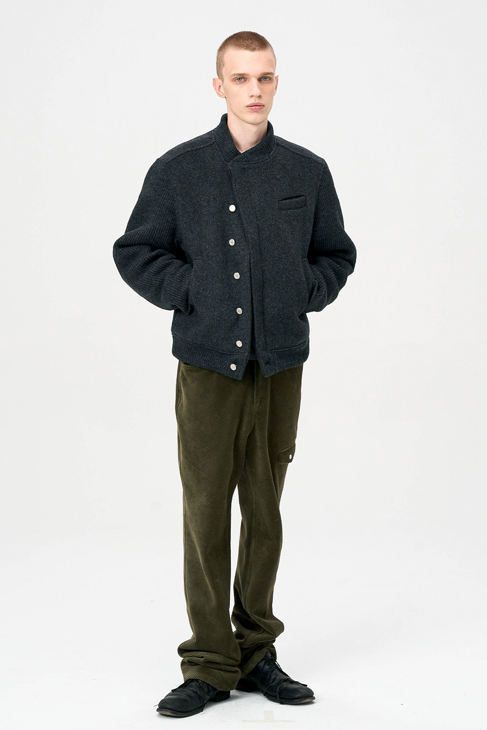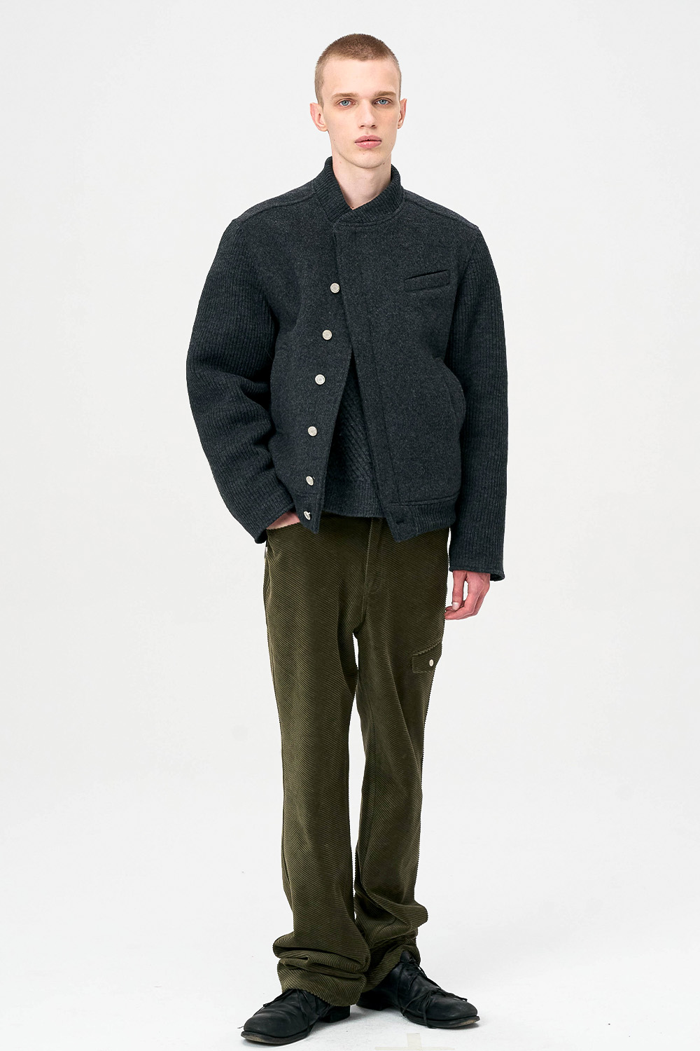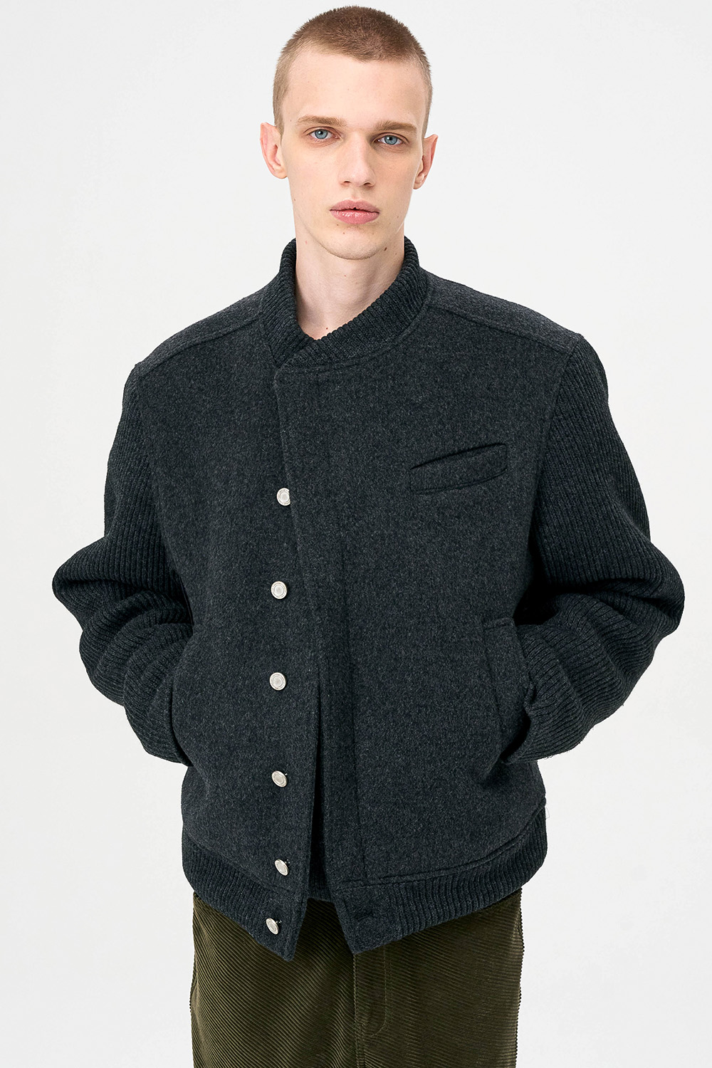 * 모직과 니트 소재를 믹스한 하이브리드 디자인