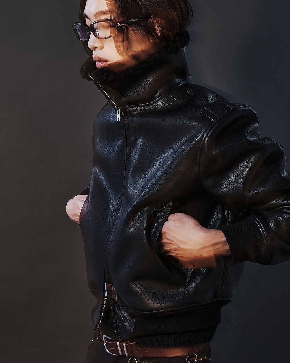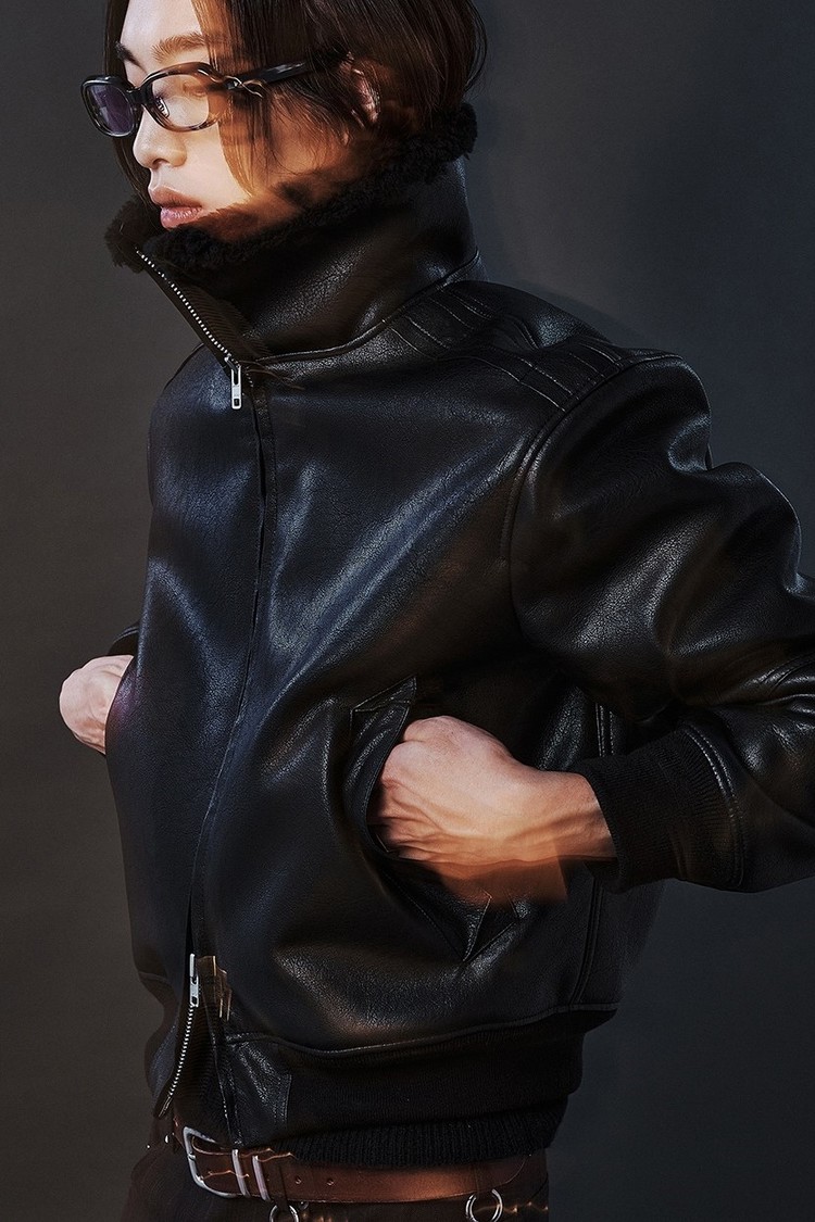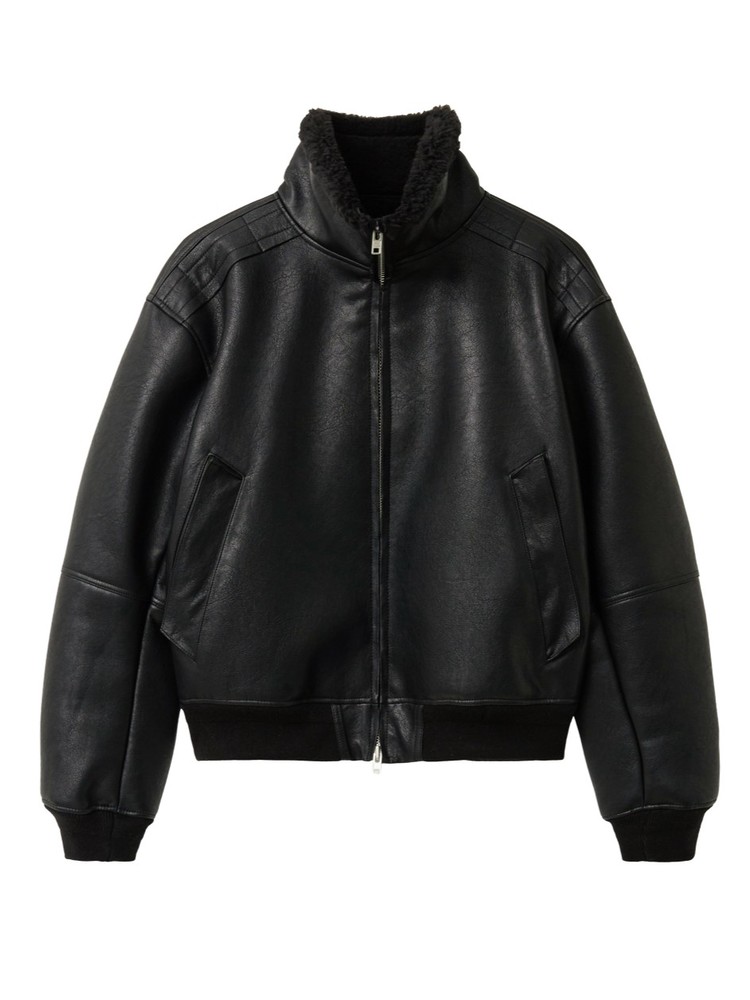 FAUX SHEARLING HIGH-NECK BLOUSON BLACK (WJ401)