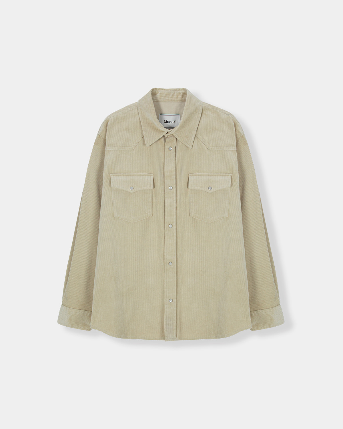 부드러운 터치감과 단단한 소재감으로 스탠다드한 실루엣의 파인 웨일 코듀로이 소재가 사용된 웨스턴 스타일의 코듀로이 셔츠 입니다. 가슴부 부위에 플랩 형식의 아웃포켓이 부착되어 있으며, 어깨라인의 웨스턴 요크 컷팅과 후면웨스턴 요크 컷 팅을 유려하게 표현하였습니다. 네크 후면부에 KINETO 금속 로고 택이 장식되어 있으며, 여밈부에는 소재의 컬러와 조화롭게 사용된 펄 스냅버튼이 사용되어 아우 터 또는 이너로 포멀하면서도 위트있게 활용이 가능한 매력적인 제품입니다.