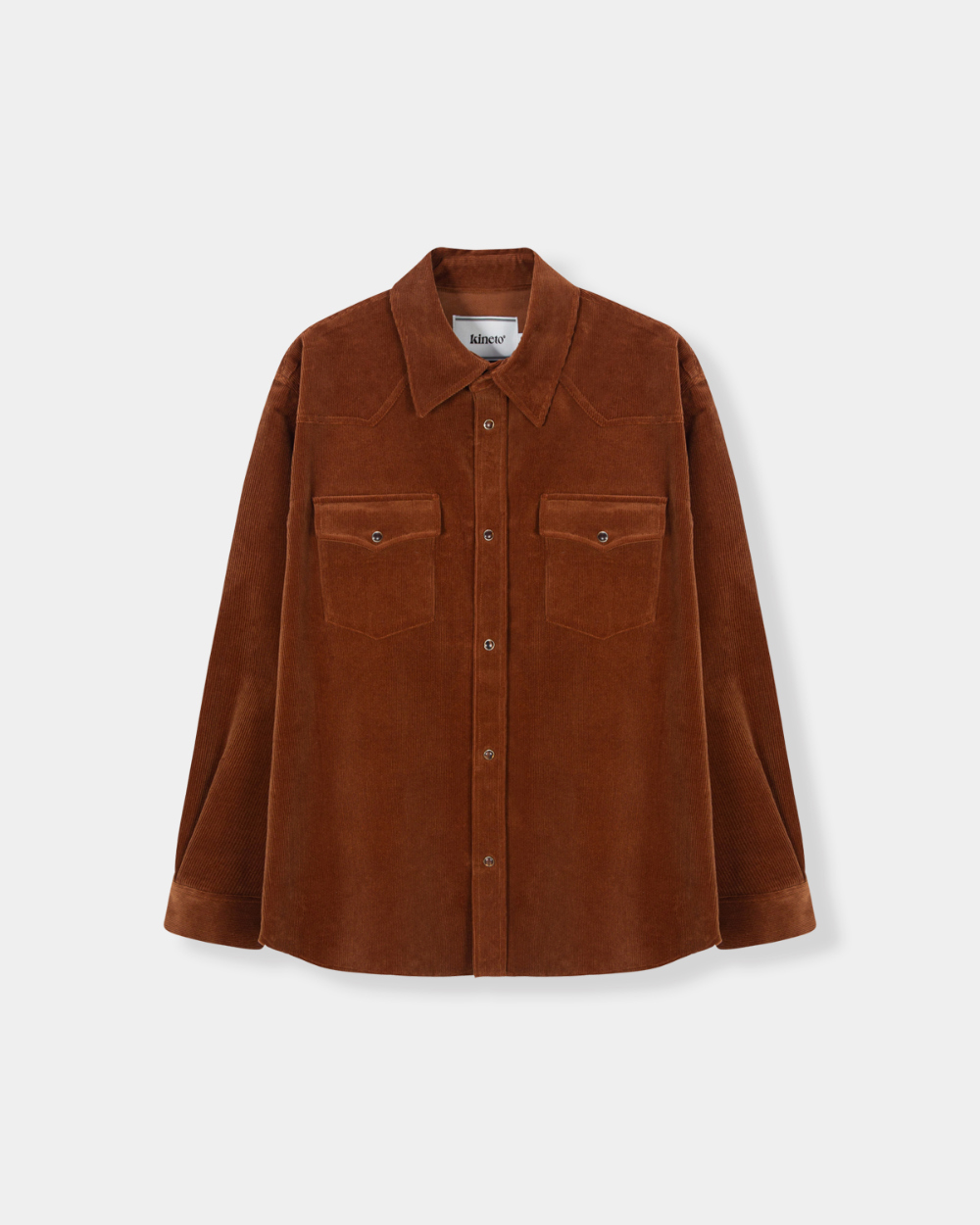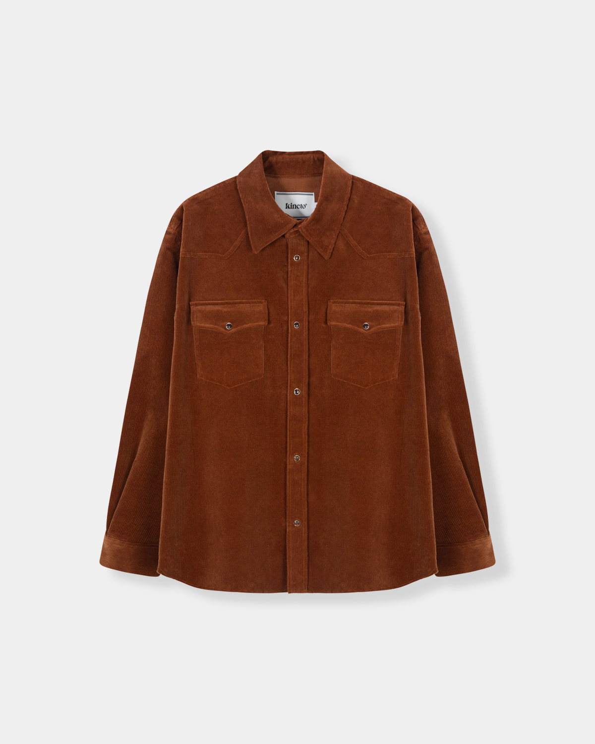 부드러운 터치감과 단단한 소재감으로 스탠다드한 실루엣의 파인 웨일 코듀로이 소재가 사용된 웨스턴 스타일의 코듀로이 셔츠 입니다. 가슴부 부위에 플랩 형식의 아웃포켓이 부착되어 있으며, 어깨라인의 웨스턴 요크 컷팅과 후면웨스턴 요크 컷 팅을 유려하게 표현하였습니다. 네크 후면부에 KINETO 금속 로고 택이 장식되어 있으며, 여밈부에는 소재의 컬러와 조화롭게 사용된 펄 스냅버튼이 사용되어 아우 터 또는 이너로 포멀하면서도 위트있게 활용이 가능한 매력적인 제품입니다.