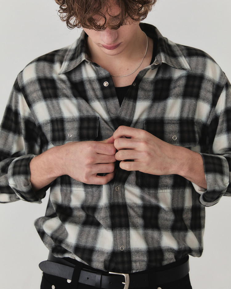 고밀도의 부드러운 터치감으로 직조된 옴브레 체크 패턴의 웨스턴 셔츠 입니다.