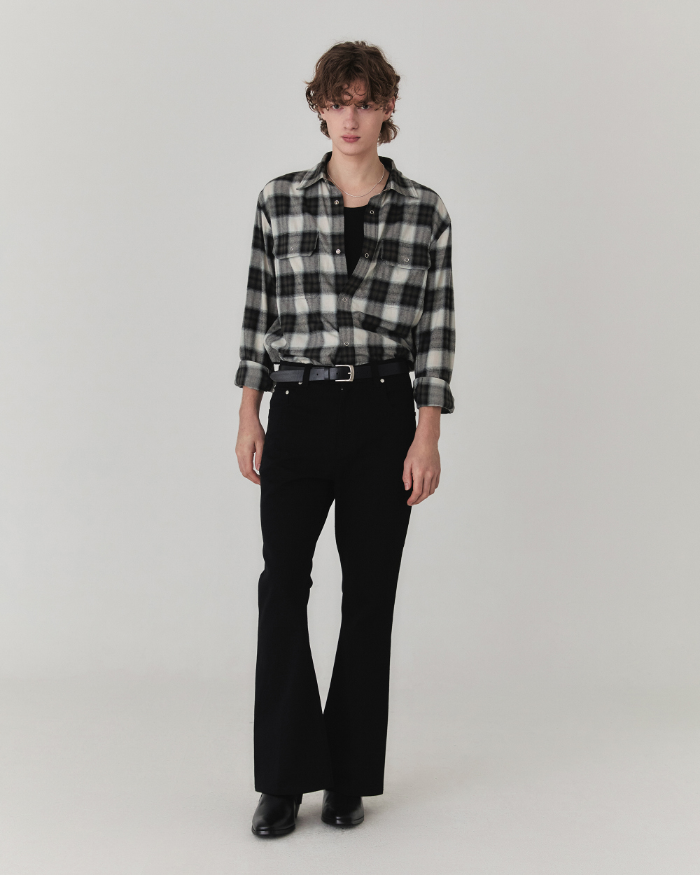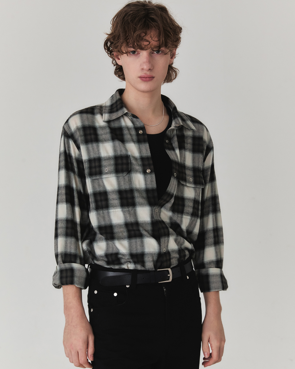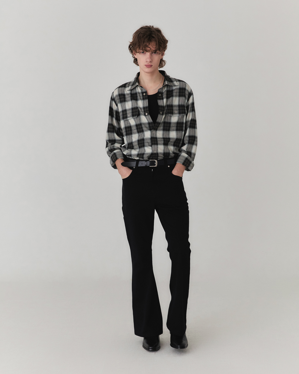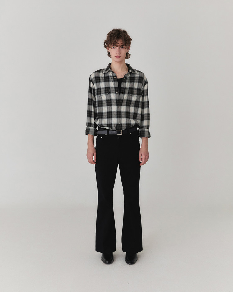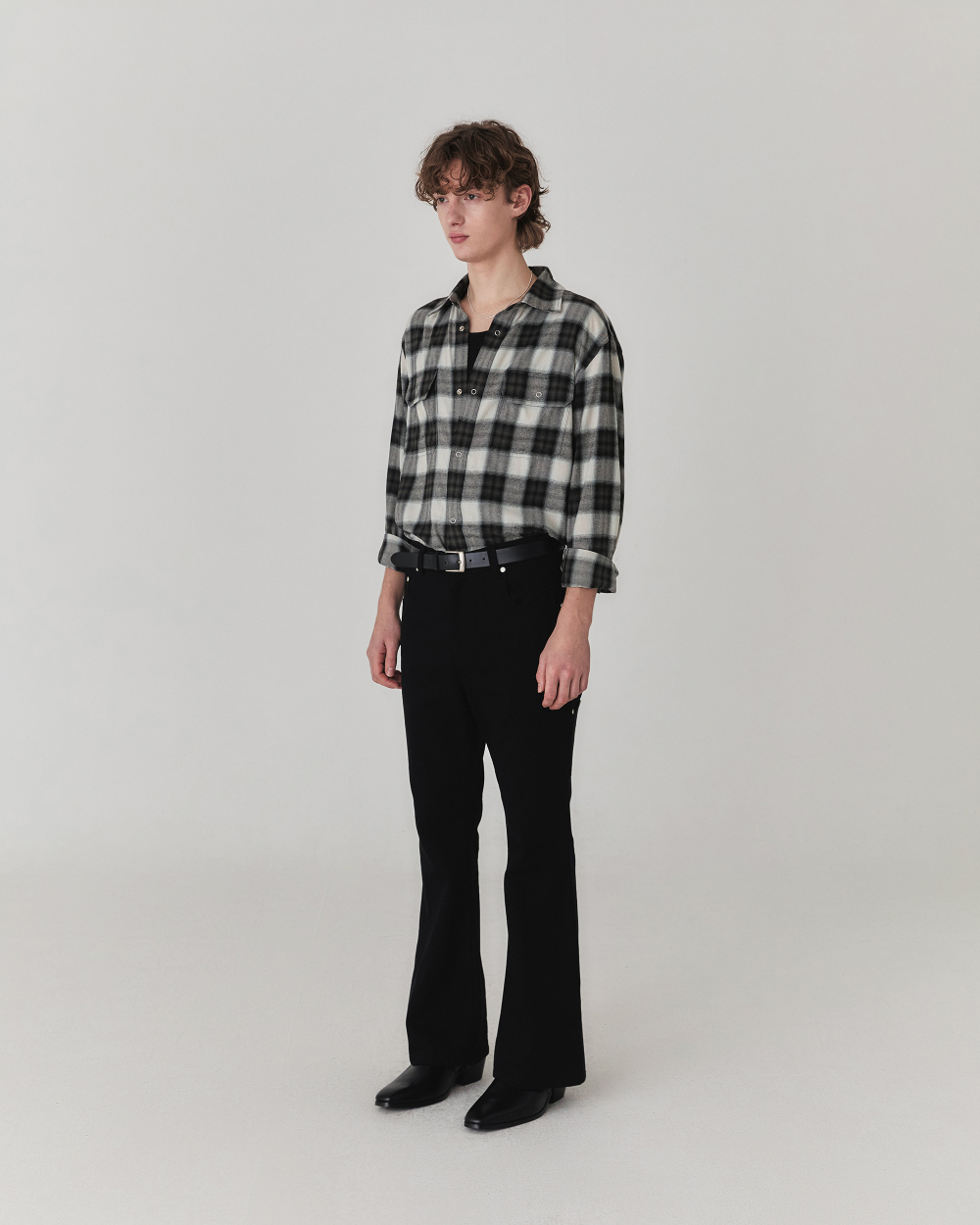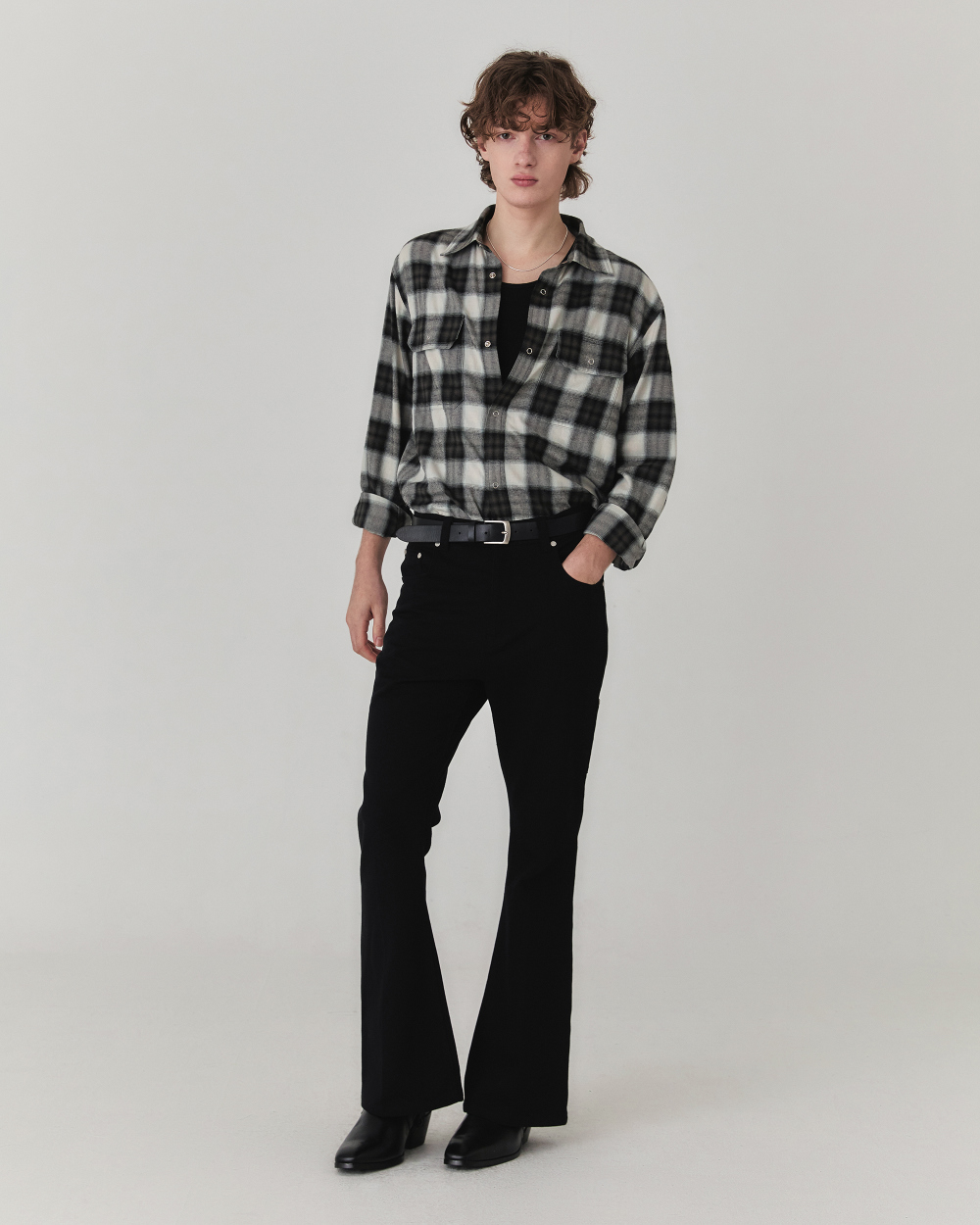 스탠다드한 실루엣으로 가슴부위에 플랩 형식의 아웃포켓과 어깨라인의 웨스턴 요크 컷팅, 후면 웨스턴 요크 컷팅부위의 체크 패턴을 사선으로 표현하여 전체적으로 조화를 이루며 유니크한 무드를 보여줍니다.