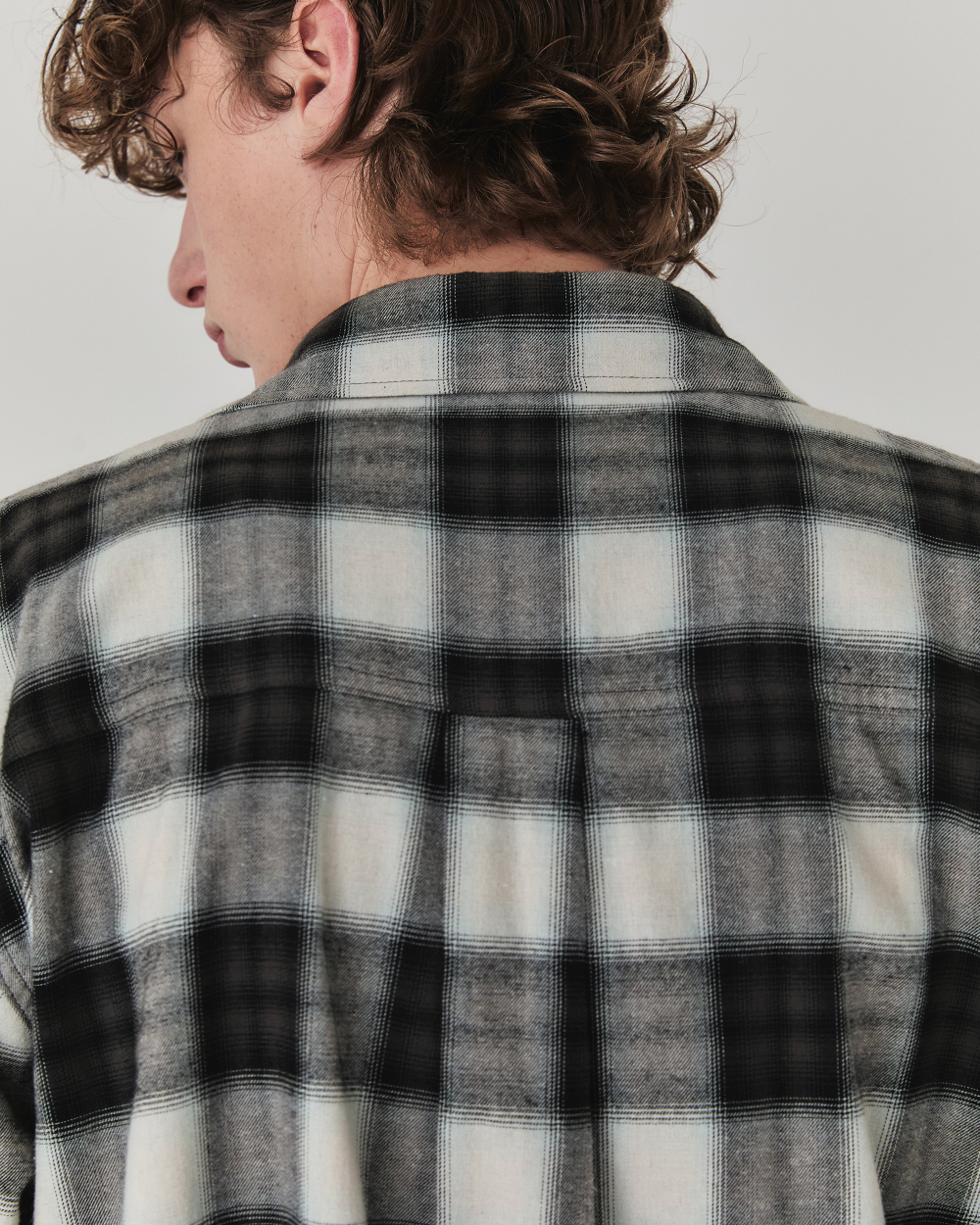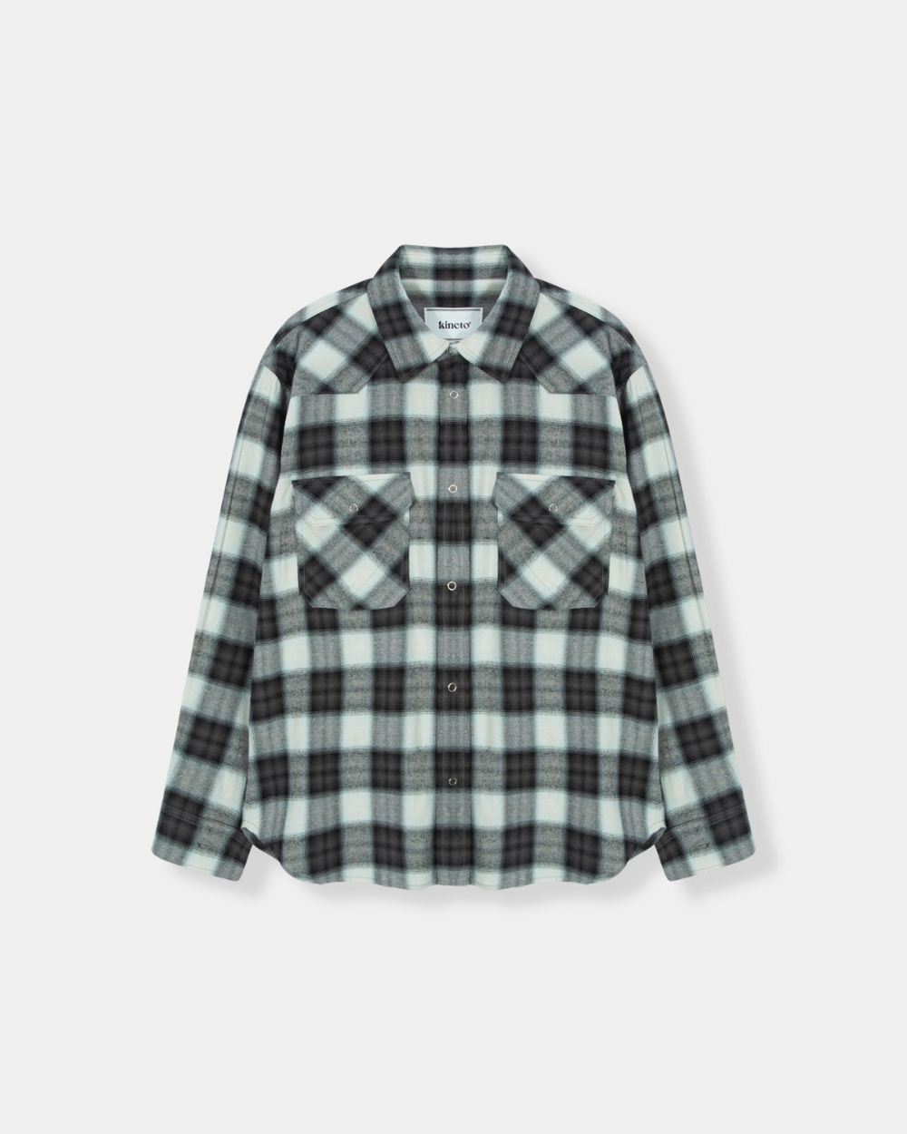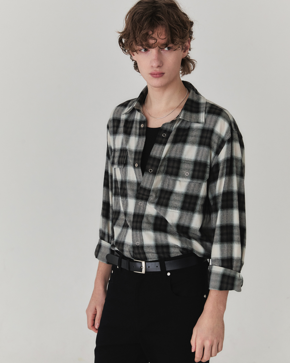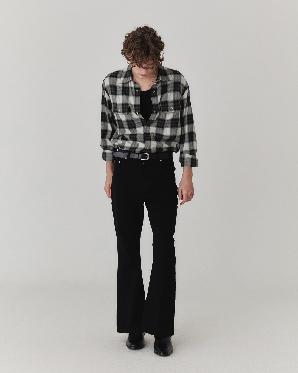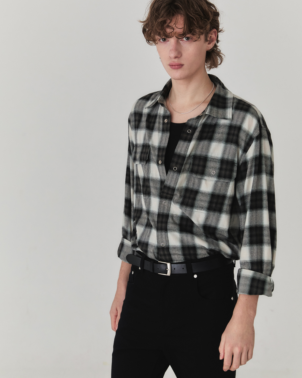 스탠다드한 실루엣으로 가슴부위에 플랩 형식의 아웃포켓과 어깨라인의 웨스턴 요크 컷팅, 후면 웨스턴 요크 컷팅부위의 체크 패턴을 사선으로 표현하여 전체적으로 조화를 이루며 유니크한 무드를 보여줍니다.