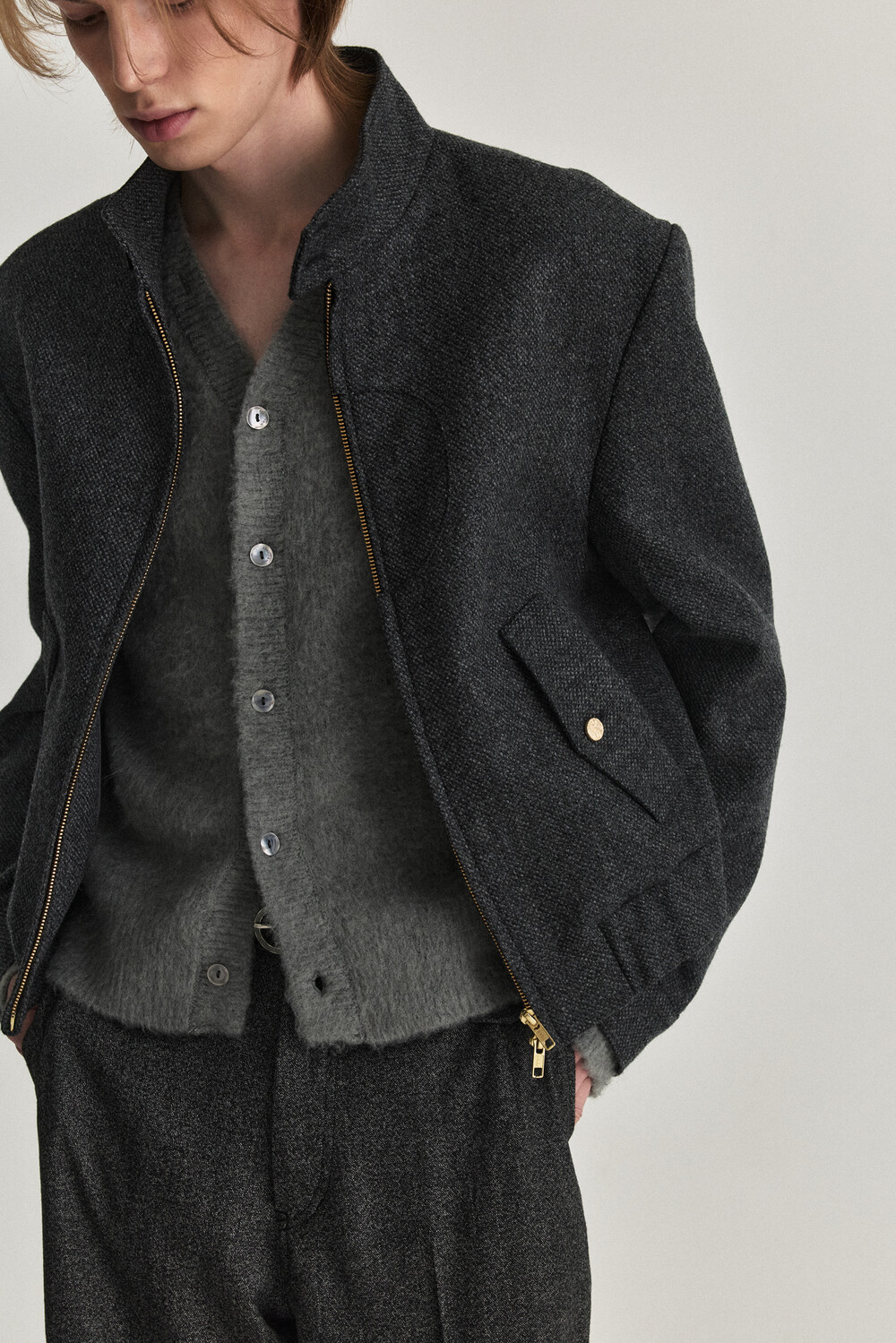 - 24Winter 시즌에 발매된 해링턴 자켓의 실루엣을 기반으로 디벨롭 된 핏감