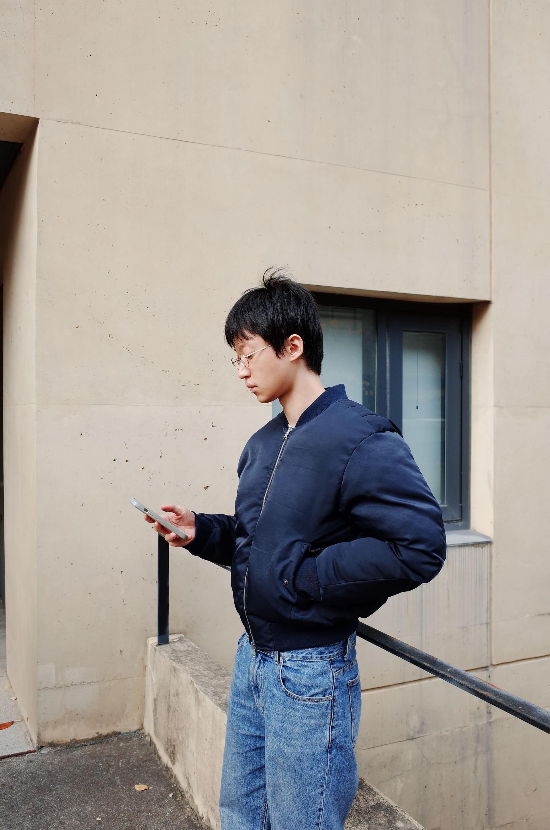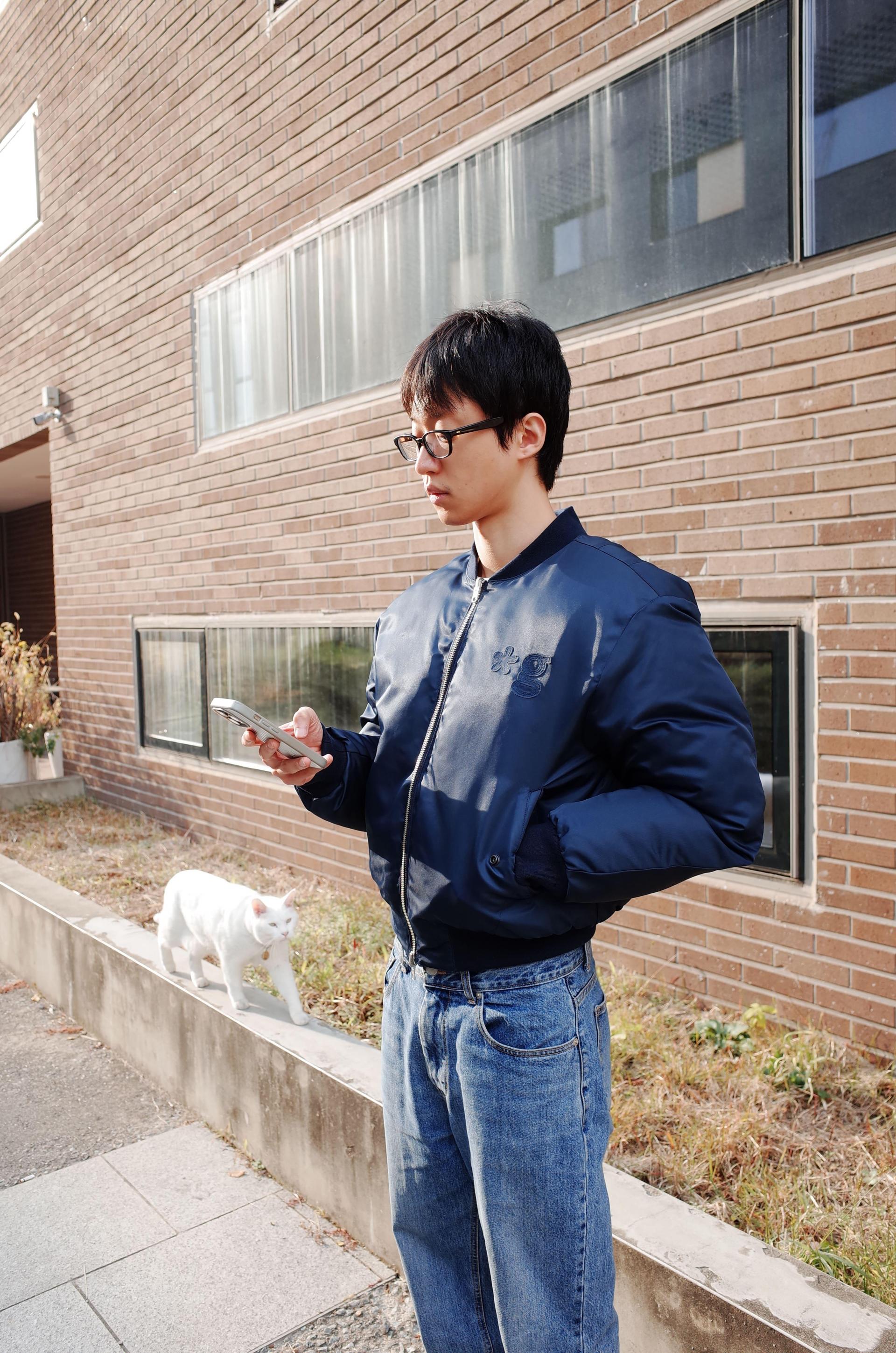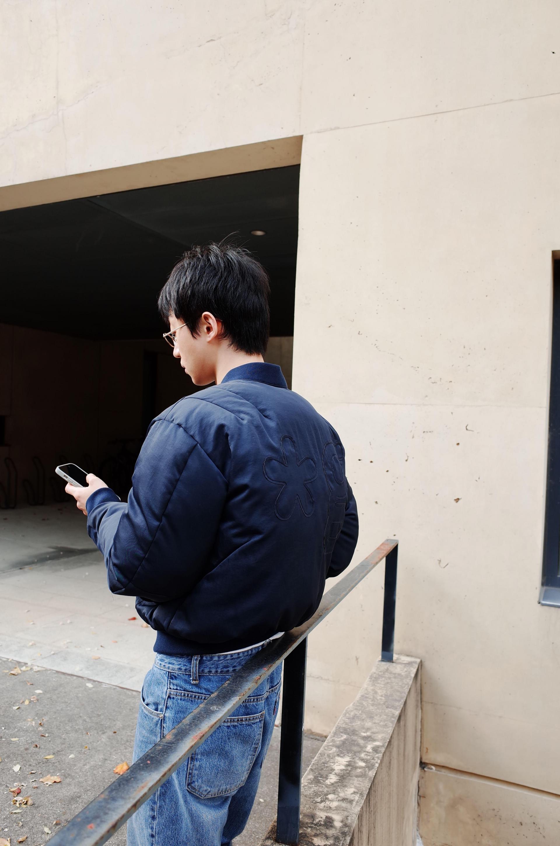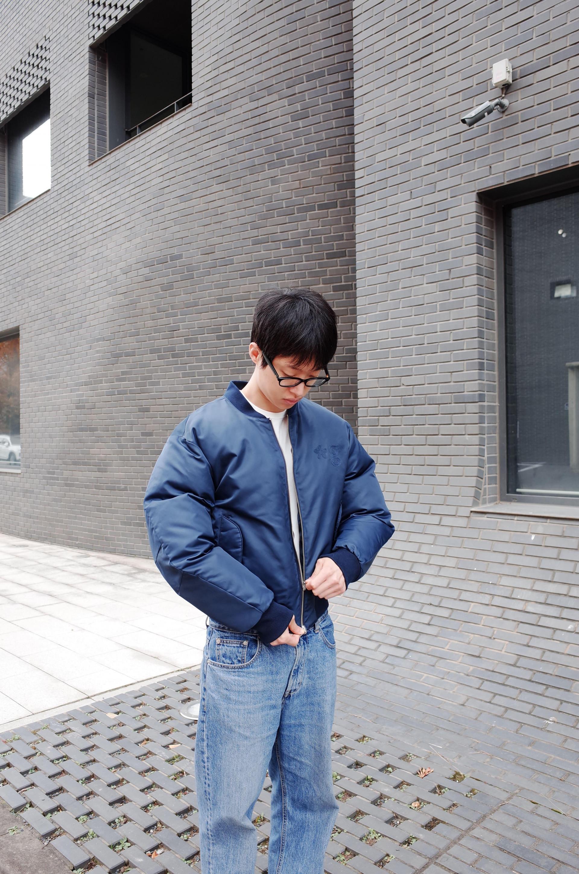REVERSIBLE PUFFER BOMBER JACKET (NAVY)