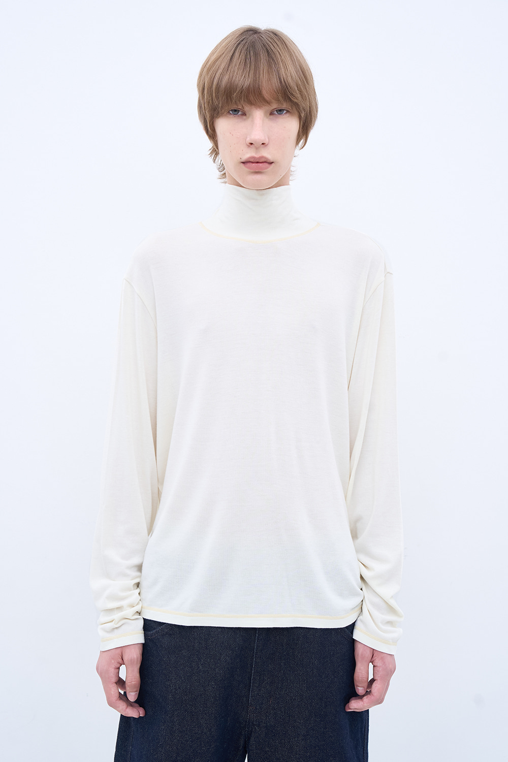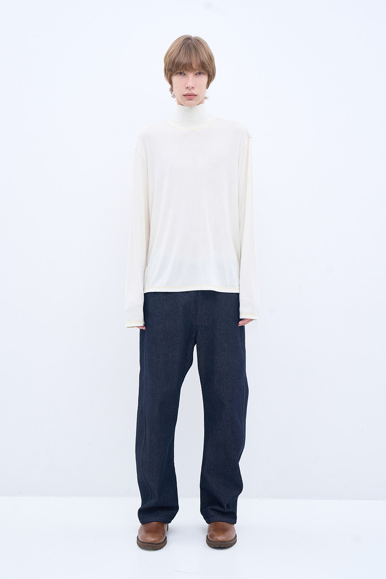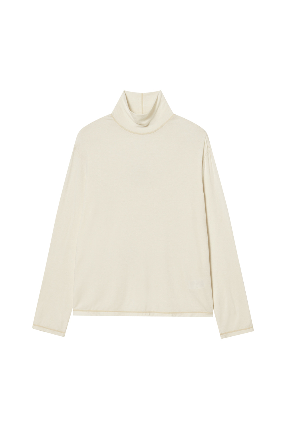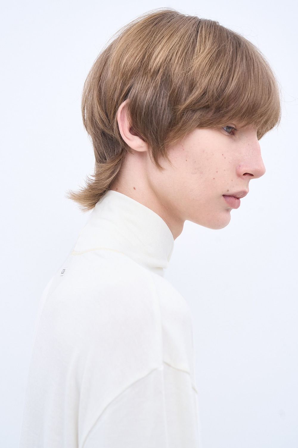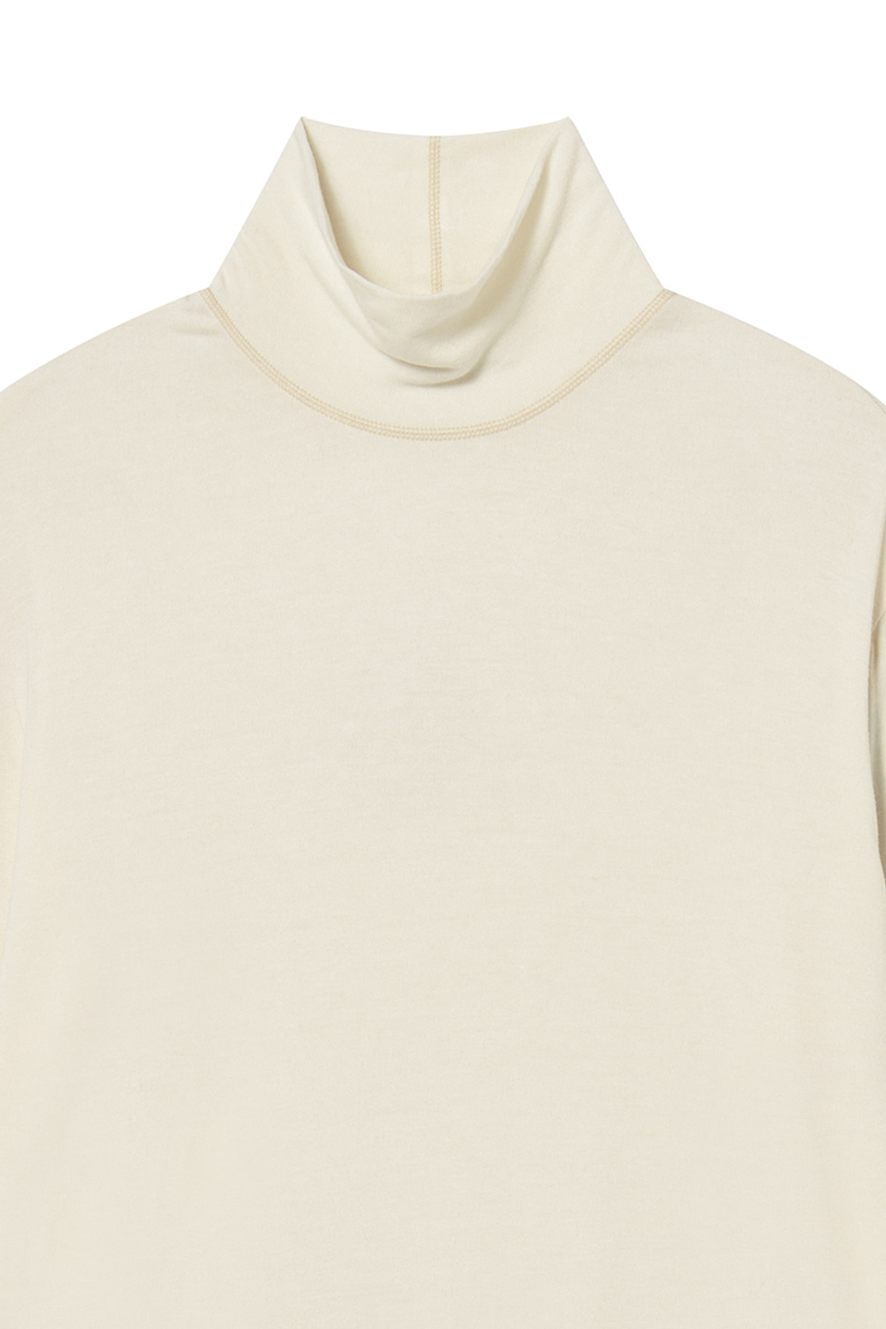 겨울철 레이어링을 위한 실용적이면서 세련된 터틀넥 티셔츠. 포근하고 부드러운 울 혼방 저지 소재로 전하는 유연한 착용감. 절제된 대비 효과로 표현된 스티치 디테일이 은은한 포인트를 형성. 기능과 감성을 모두 갖춘 균형 잡힌 겨울 시즌 베이스웨어.