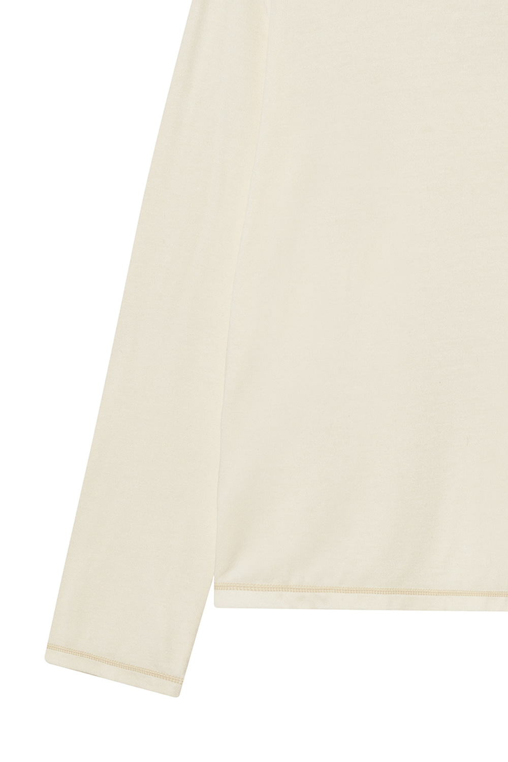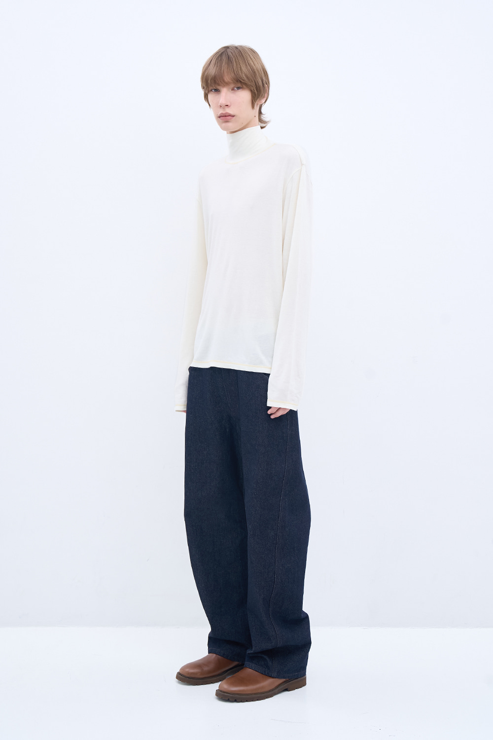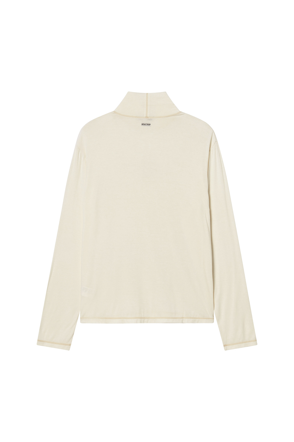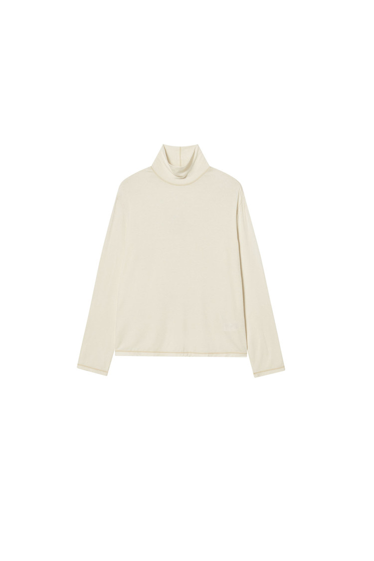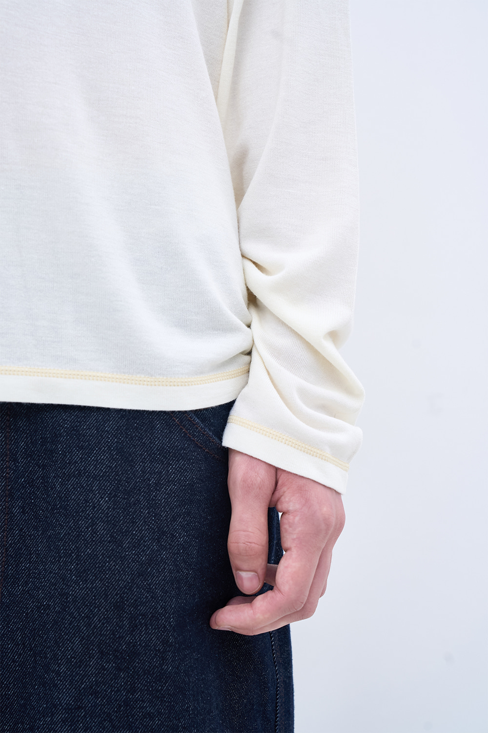 겨울철 레이어링을 위한 실용적이면서 세련된 터틀넥 티셔츠. 포근하고 부드러운 울 혼방 저지 소재로 전하는 유연한 착용감. 절제된 대비 효과로 표현된 스티치 디테일이 은은한 포인트를 형성. 기능과 감성을 모두 갖춘 균형 잡힌 겨울 시즌 베이스웨어.
